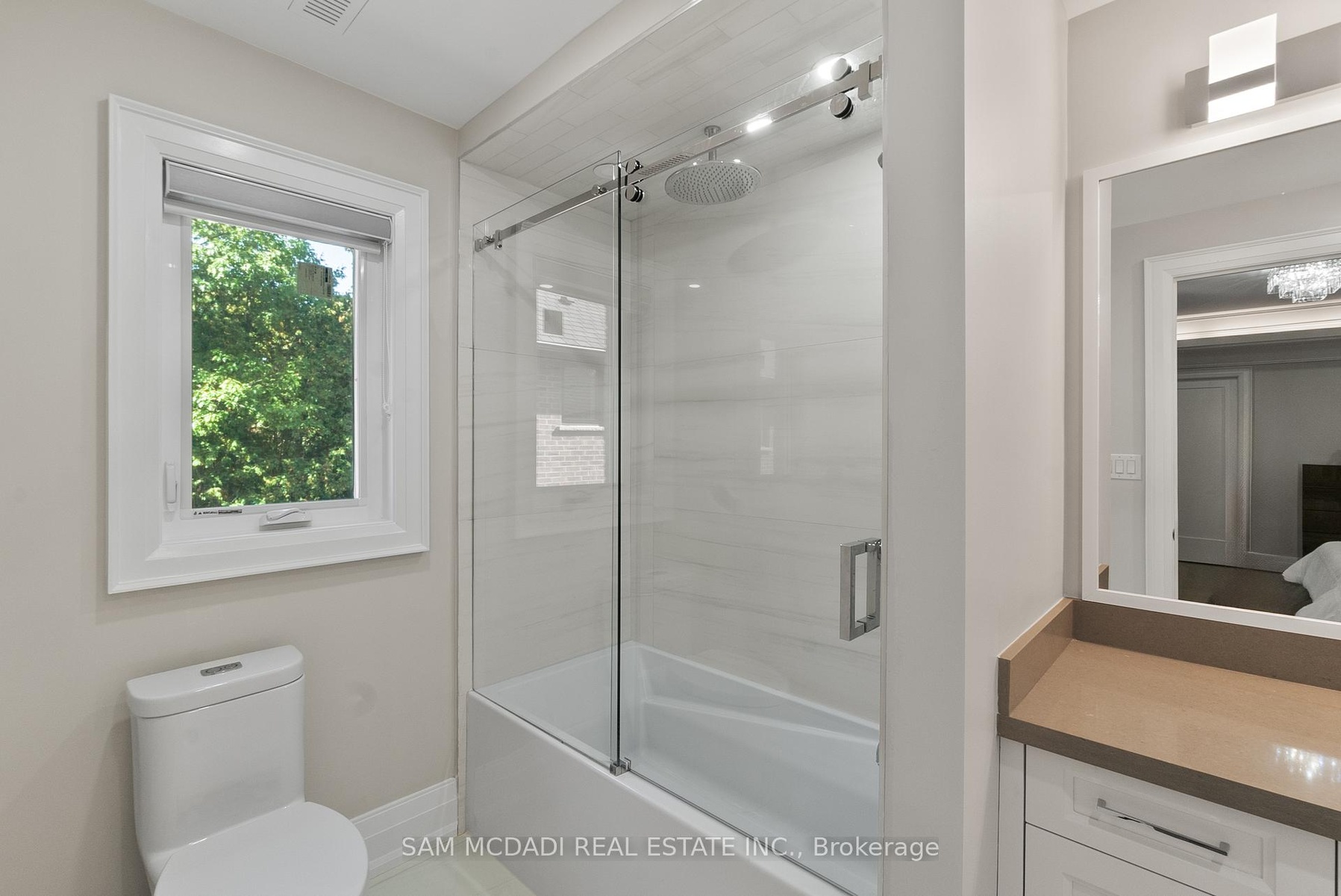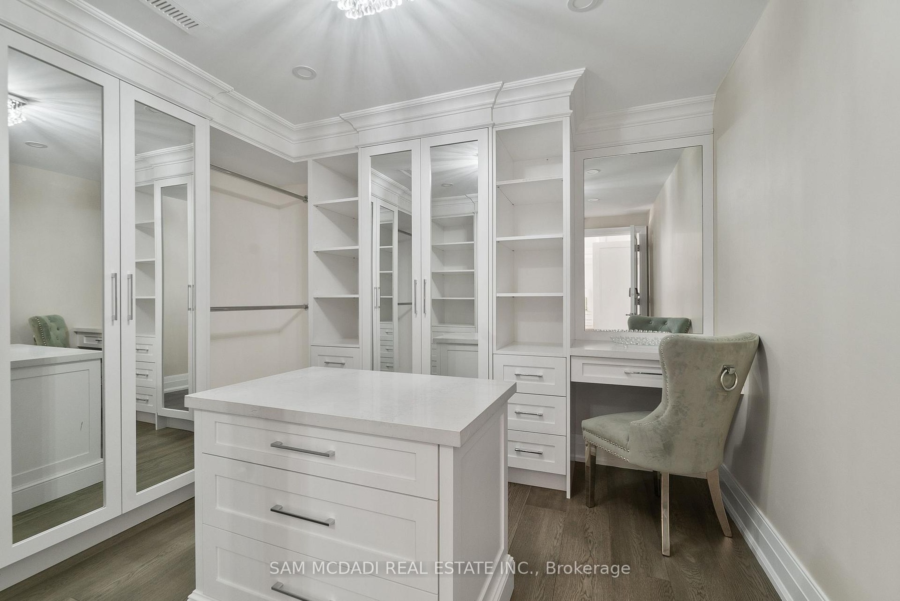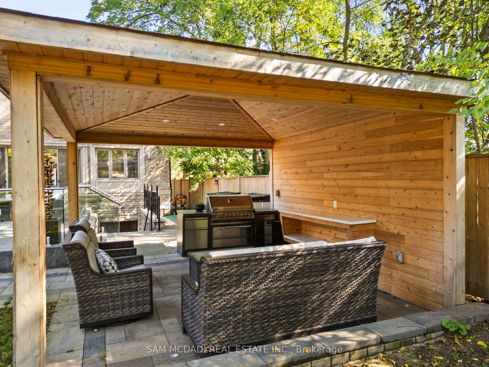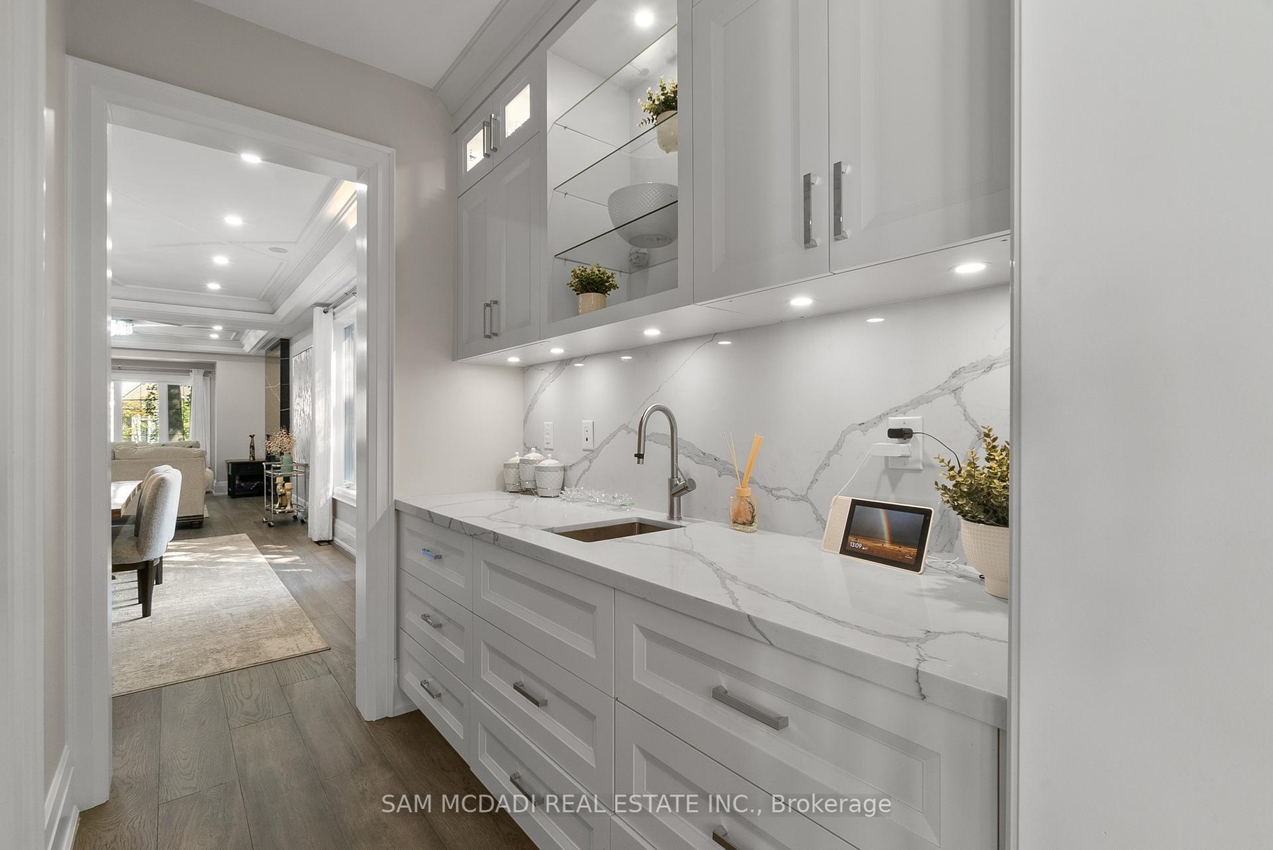 This distinguished residence sits quietly on one of Lorne Park's most desirable streets, surrounded by mature trees and a true sense of privacy. With over 6,500 SF of finished living space, the home was designed for both family comfort and large-scale entertaining, boasting classic detailing with modern aesthetics. Inside, the grand foyer opens to light-filled living and dining rooms, framed by wainscotting, coffered ceilings, and rich hardwood floors. A chef's kitchen anchors the main level with quartz counters, an oversized island, walk-through servery, and a separate pantry, while the adjoining breakfast area and family room overlook the landscaped backyard. Multiple fireplaces add warmth and atmosphere, and custom millwork emphasizes sophistication throughout. A main-floor guest suite provides comfort and flexibility for extended family or visiting friends, while brand new impact-resistant windows filter in natural light and efficiency across the home. Upstairs, each of the four bedrooms offers a private ensuite and walk-in closet, creating retreats tailored for both family and guests. The primary suite is a sanctuary of its own, with a boutique-style dressing room and a spa-like ensuite featuring a freestanding tub, glass shower, and heated floors.The lower level extends the lifestyle with radiant heated floors, a recreation room with full bar, a home office, guest suite, and walk-up access to the outdoors. The backyard is extraordinary in scale, complete with stone patios and a covered cabana with built-in BBQ that create endless entertaining possibilities, with space for a future pool, sport court, or tennis court. Equipped with Control4 home automation, built-in speakers, and two laundry rooms, every detail has been considered. The nearby amenities are equally impressive: top-ranked schools, boutique dining in Port Credit, lakefront trails, and hidden gems like Rattray Marsh are just minutes away. A perfect home for the discerning buyer!
