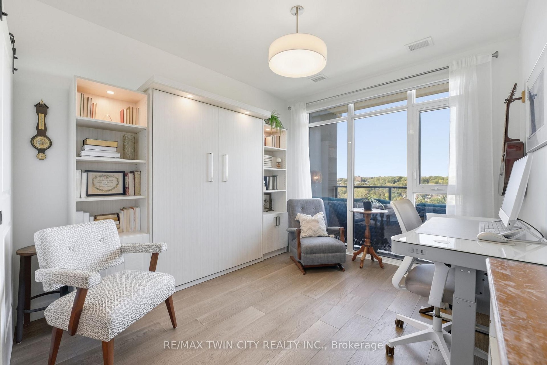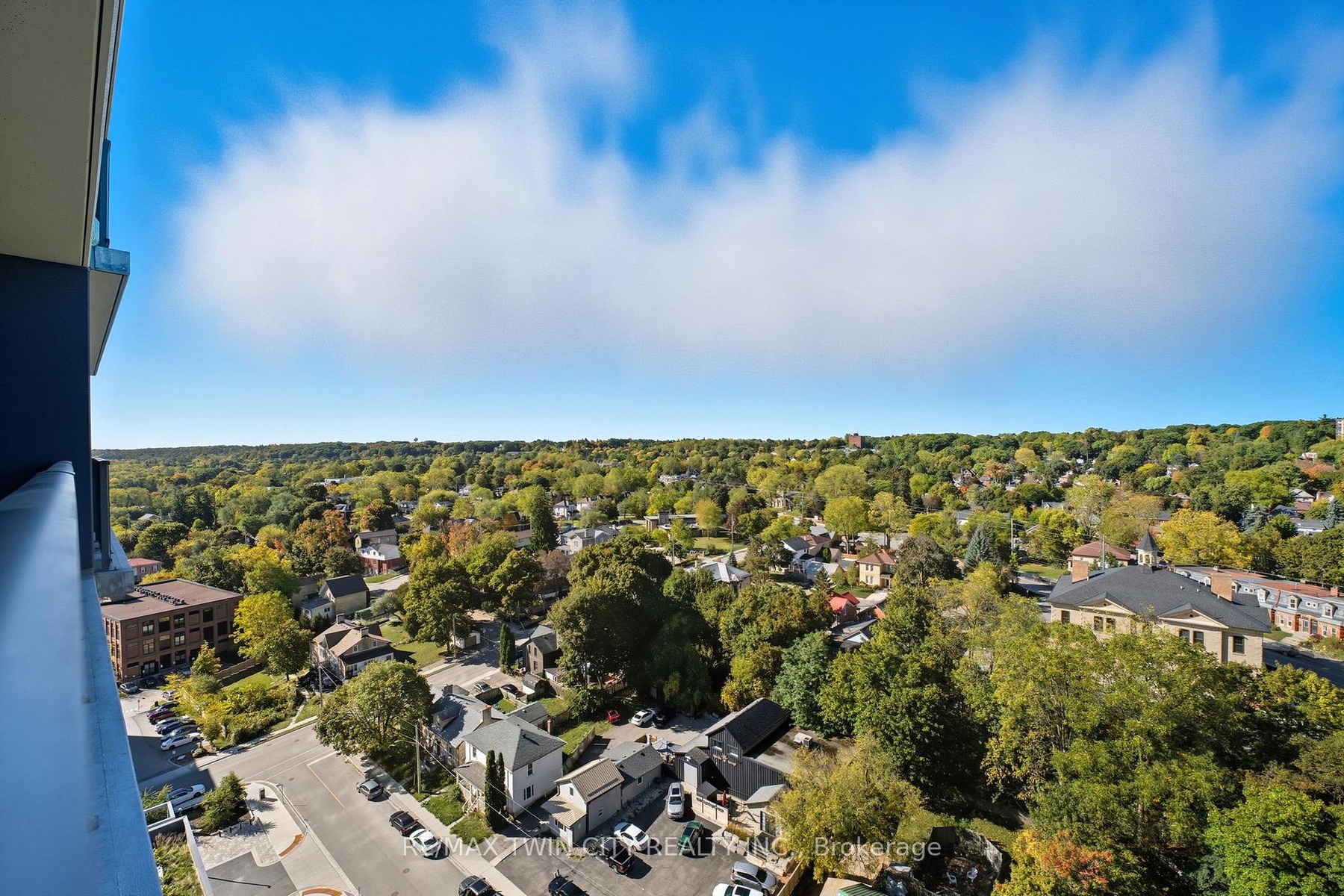 Welcome to 1410-15 Glebe Street, Cambridge, located in the heart of the vibrant Gaslight District one of the city's most desirable communities. This stunning 2-bedroom, 2-bathroom condo combines modern luxury with urban convenience, offering breathtaking 14th-floor views of West Galt Parks through expansive floor-to-ceiling windows that fill the space with natural light. The upgraded suite features an open-concept layout with engineered hardwood flooring throughout, a full-size kitchen island, and stainless steel appliances perfect for both everyday living and entertaining. Enjoy seamless comfort with automated blinds and step out onto your oversized balcony to take in serene, unobstructed views. This unit includes one parking space and one locker for added convenience. Residents enjoy access to premium amenities, including a state-of-the-art fitness center, rooftop terrace, and concierge service. With the Gaslight Districts shopping, dining, and entertainment options just steps from your door, this condo offers the ideal blend of lifestyle and location. Don't miss your chance to experience upscale condo living at its finest book your showing today!