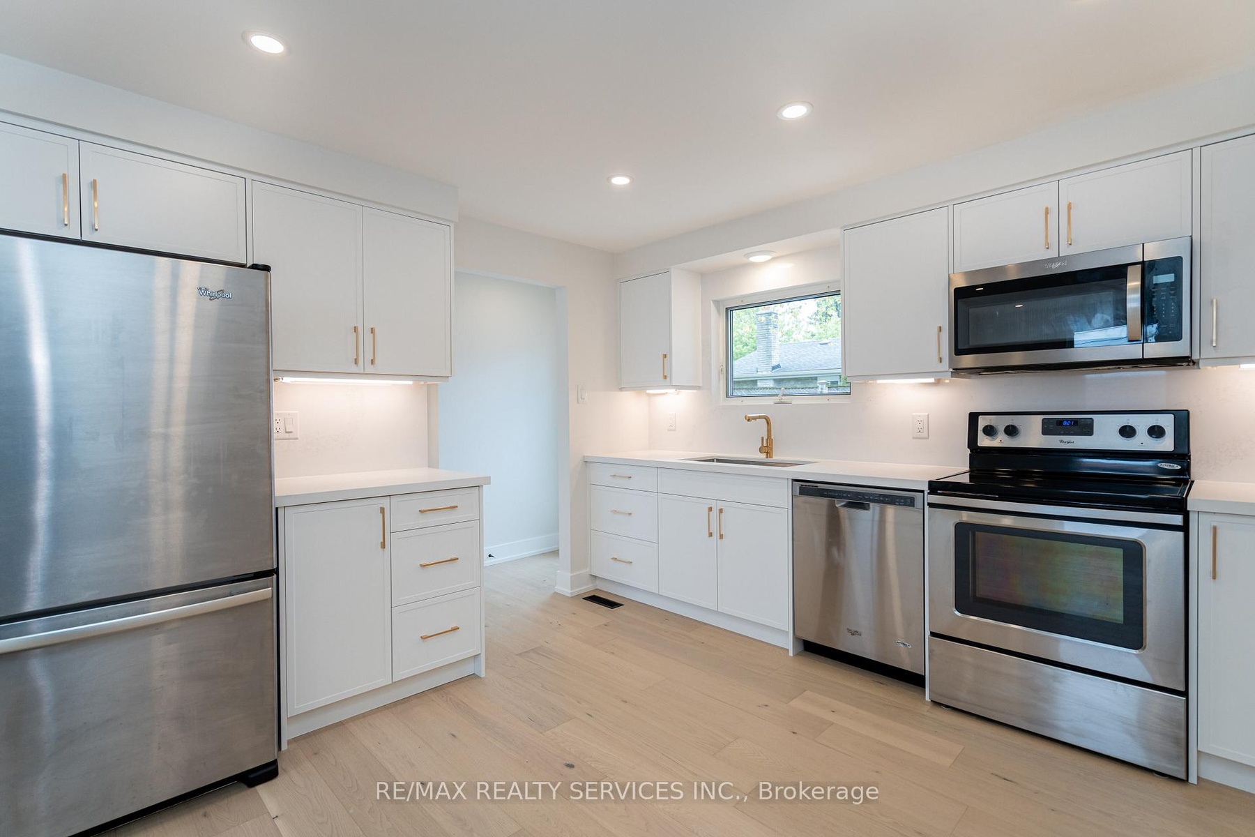 DescriptionWelcome to this stunning, fully renovated 3-bedroom home tucked away in one of Oakvilles most sought-after and family-friendly neighbourhoods. Ideally located just steps from top-rated schools, including Oakville Trafalgar High School and Maplegrove Public School, this property offers the perfect blend of style, comfort, and convenience. Step inside to an inviting open-concept layout where modern design meets everyday functionality. The updated kitchen features new cabinets, elegant quartz countertops, and a stylish backsplash, With bright and spacious living and dining areas. The home includes three beautifully updated bathrooms and a fully finished lower level with a 3-piece bath ideal for a cozy family room, home office, or guest suite. other upgrades includes the plumbing and wiring. The property also features a double garage and driveway parking for two additional cars, providing ample space for family and guests. Outside, enjoy your own private backyard retreat with a large inground pool surrounded by mature landscaping perfect for relaxing or entertaining. Located just minutes from Lake Ontario, scenic parks and trails, and Oakville's vibrant downtown shops and restaurants, this move-in-ready home offers the very best of South East Oakville living. Elegant, functional, and thoughtfully updated from top to bottom this is a home youll fall in love with.Amenities- Electric