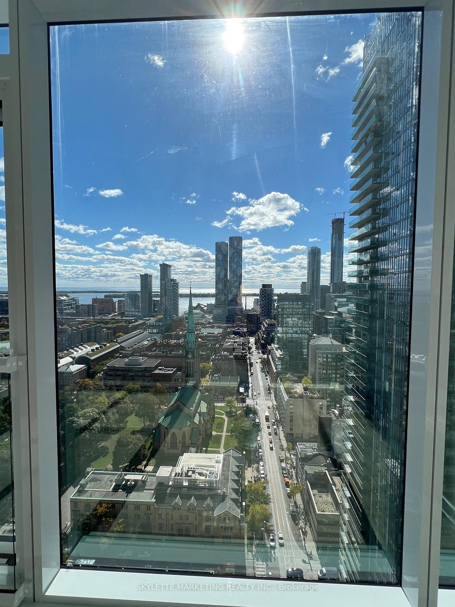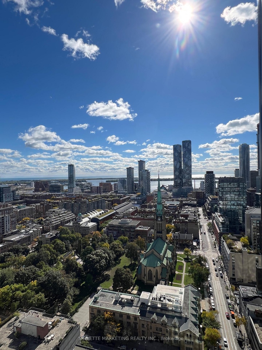 Luxury 2-bedroom, 2-bath corner suite in the prestigious Saint Building. Located on the 32nd floor with spectacular southwest city and lake views. Features a 107 sq.ft balcony, floor-to-ceiling windows, sleek modern kitchen, bathrooms, and walk-in closet. Enjoy premium amenities including a fitness centre, grand lounge, rain room salt room spa room, yoga room, party room and co-working space. 24-hour concierge. Steps to TMU, U of T, George Brown, the Financial District and top dining and shopping. unbeatable downtown location!