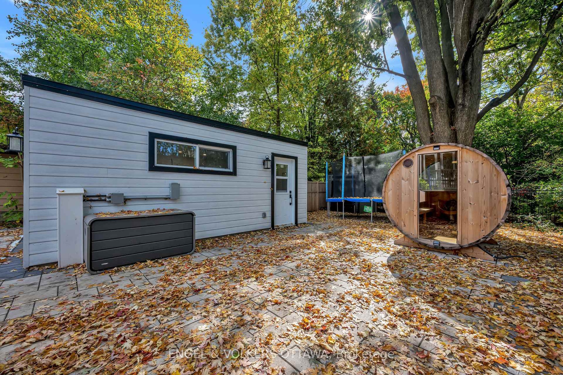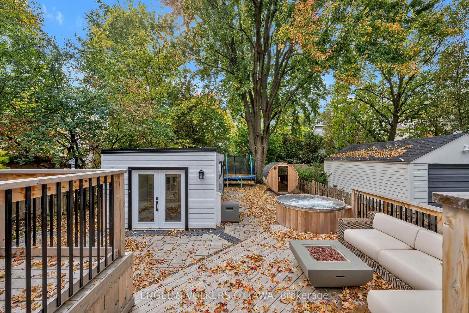 Experience elevated living in this fully remodelled 3+1 bedroom, 3.5 bathroom home, where every detail has been thoughtfully curated. From top to bottom and front to back, no surface has been left untouched in this beautiful renovation and addition. Step inside to find gorgeous wide-plank hardwood flooring throughout and a bright, open-concept main level that's perfect for both everyday living and entertaining. The designer kitchen boasts a striking 12-foot island, quartz countertops, custom cabinetry, and high-end stainless steel appliances. The spacious living room features a beautiful brick-surround decorative fireplace, while the large dining area includes a built-in buffet offering both elegance and extra storage. A stylish 2-piece bath, rear deck access, and a custom front entry closet complete the main floor. Upstairs, retreat to your spectacular primary suite with a private balcony, large walk-in closet & a spa-inspired 5-piece ensuite with a custom-tiled shower and double-sink vanity. Two additional bedrooms - one with its own walk-in closet along with a beautifully appointed 4-piece family bath, provide comfort and space for the whole family. The fully finished lower level offers extra-high ceilings, a large family room, den or guest bedroom, 3-piece bath, laundry, and ample storage perfect for versatile living. Step outside to your private backyard oasis situated on a deep lot, featuring over $200,000 in professional front-to-back landscaping, brand new 2 tiered-deck, hot tub, and dry sauna. Thoughtful stonework, mature plantings, ambient lighting, and functional outdoor living zones create a resort-like experience at home. A heated, finished outbuilding provides a quiet retreat for a home office, gym, or creative studio! Ideally located just steps from Bank Street shops, restaurants, cafés and moments from the Rideau River, where you can launch your kayak, paddle board, or canoe at Linda Thom Park. This is Old Ottawa South living at its finest!