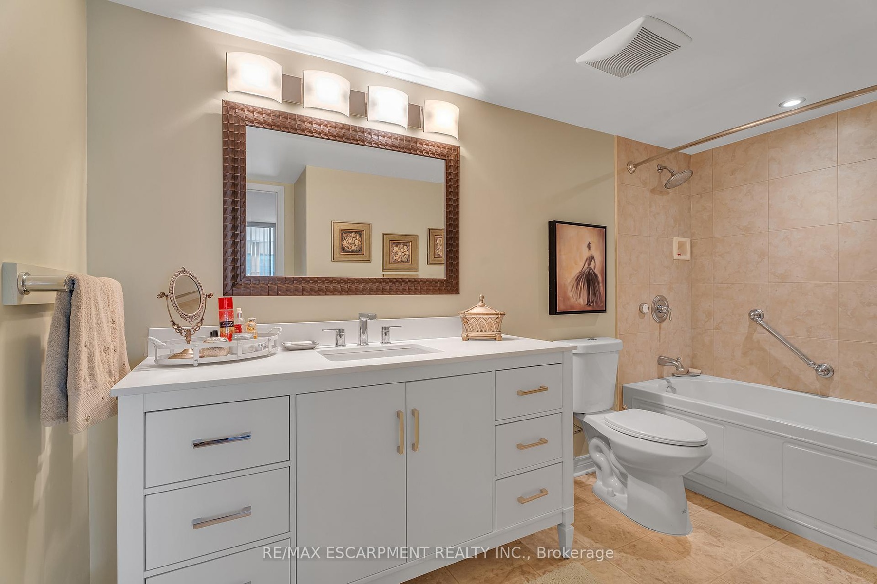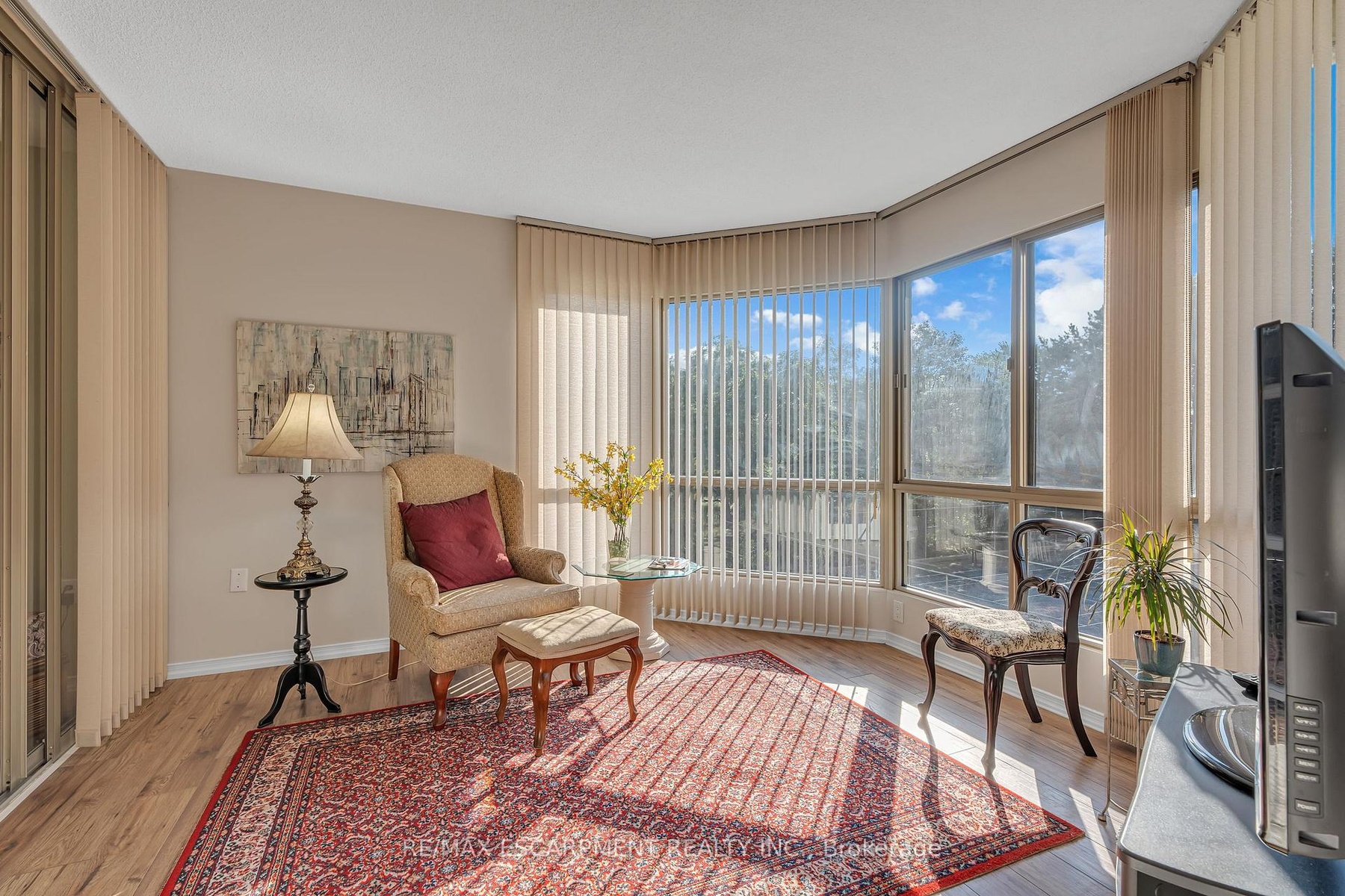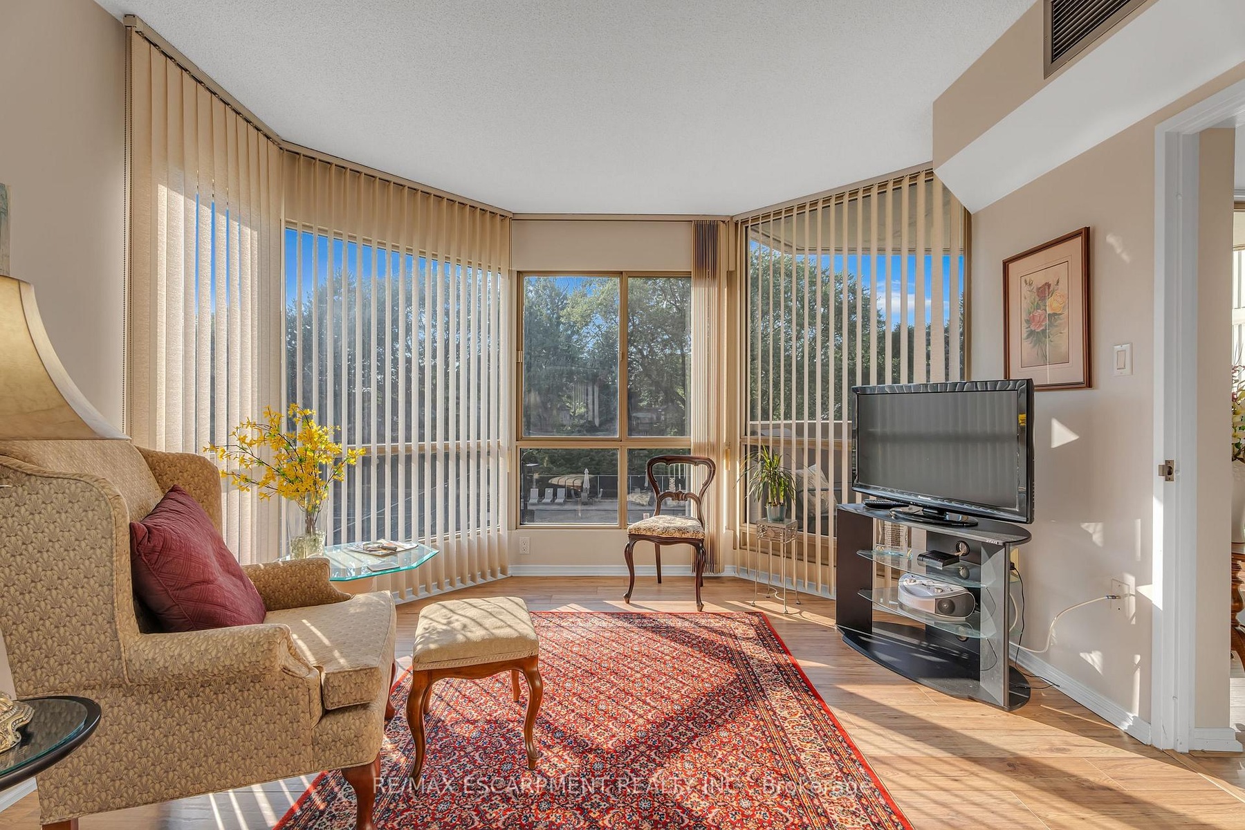 Nestled in one of Burlington's most desirable locations, this spacious 2-bedroom plus den, 2-bathroom condo at the renowned Lake Winds Condominium offers a serene retreat with treetop views. Set within a well-maintained complex featuring a sparkling outdoor pool and tennis courts, residents enjoy a lifestyle that blends relaxation and recreation. The unit has been lovingly cared for over the years, offering a warm and inviting atmosphere that's move-in ready or primed for your personal touch. With all utilities included in the condo fees, budgeting is simple and stress-free. Ideally situated just moments from Spencer Smith Park, the waterfront, vibrant shops and restaurants of downtown, and major highways, this home offers the perfect balance of tranquility and convenience in a sought-after building. Building amenities include: outdoor pool, tennis court, party room, newly upgraded fitness room, sauna and 3 outdoor BBQ areas. Recent updates: in-suite HVAC unit (2023), ensuite vanity and toilet (2025), most lighting fixtures (2025).