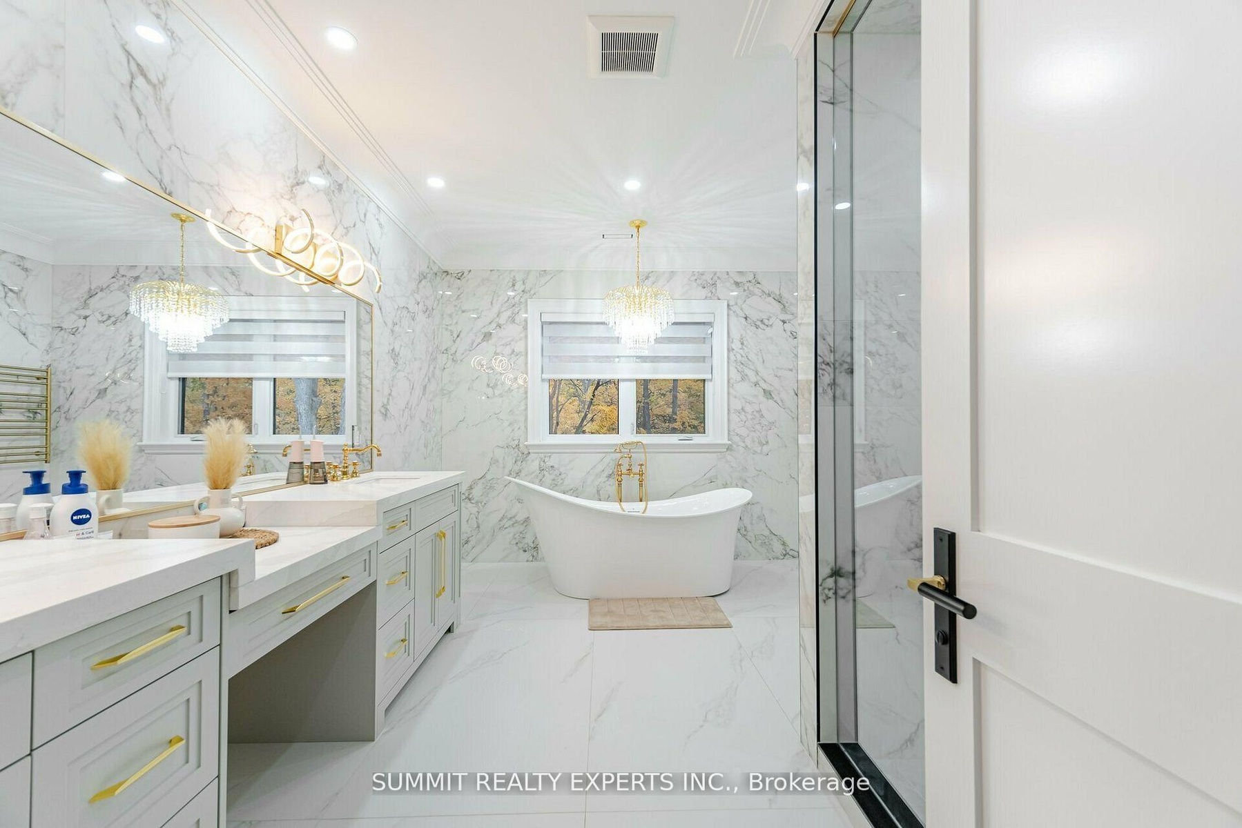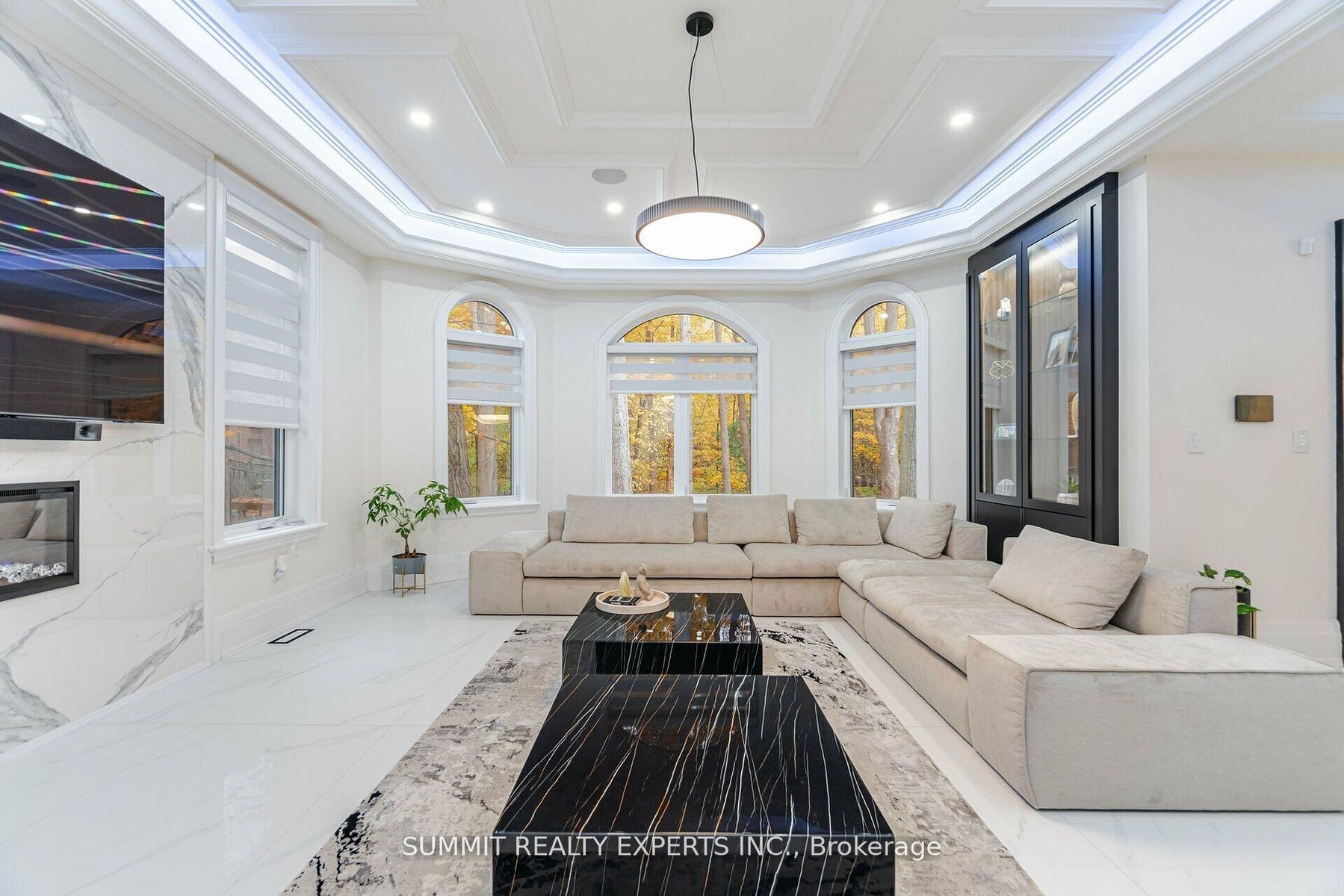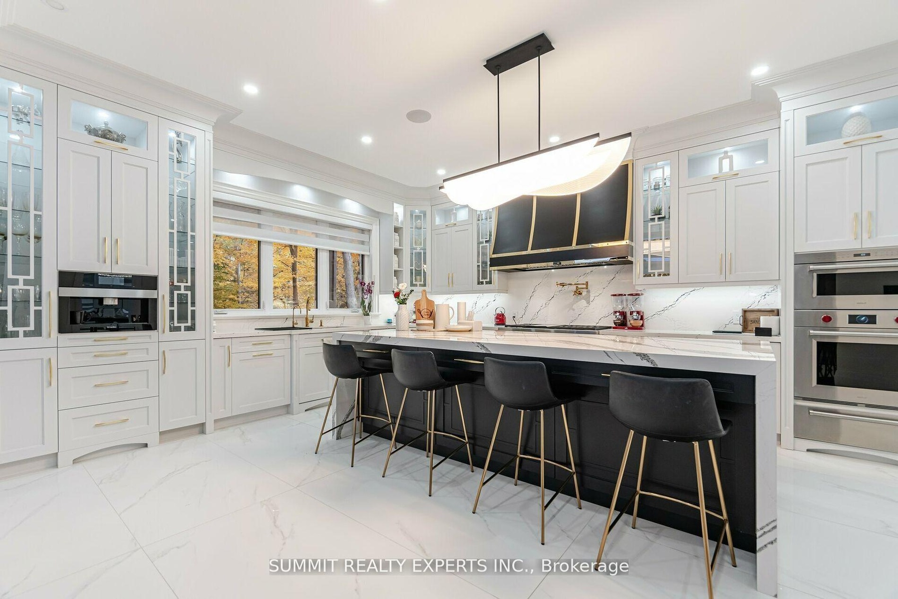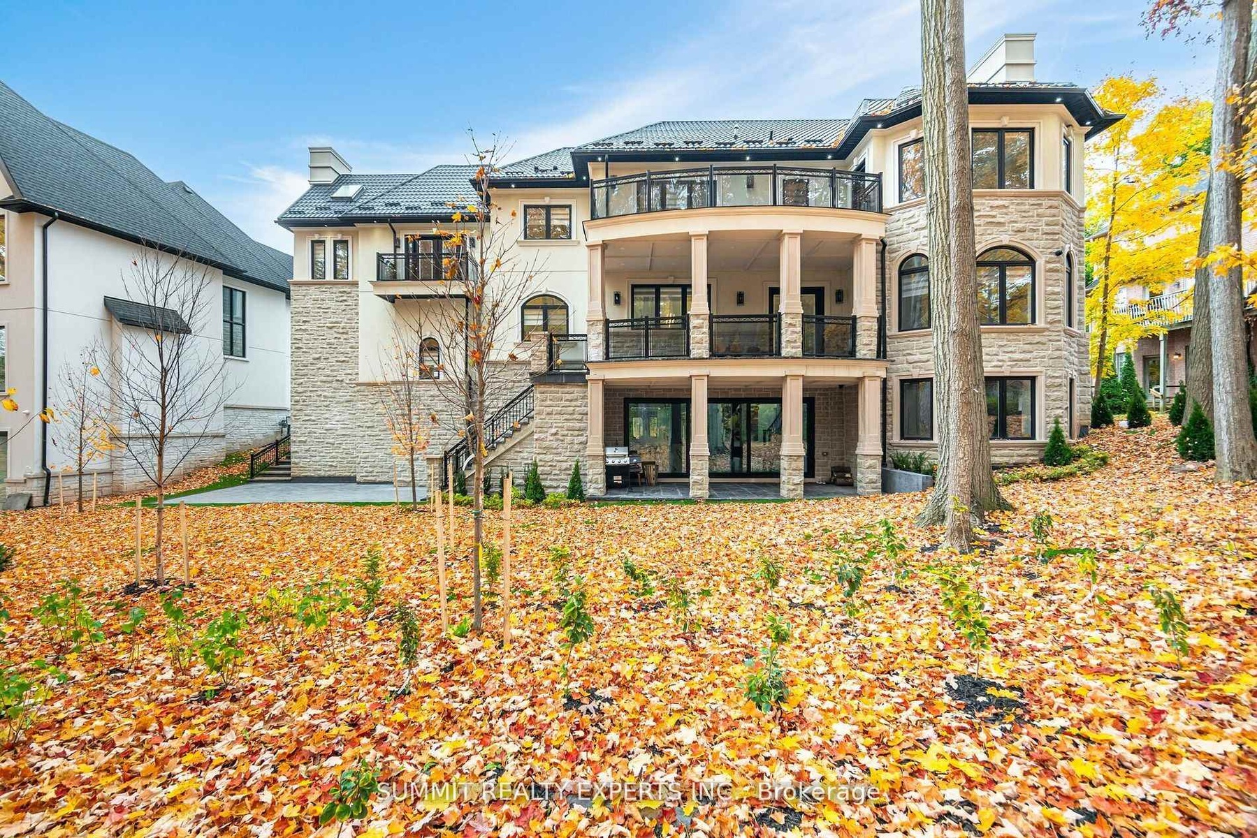 This magnificent residence boasts 8,000 square feet of opulent living space on an impressive 97.5 ft. wide lot with a ravine backdrop, mature trees, and a walkout basement. Designed with an Indiana limestone and stucco exterior complemented by a durable metal roof, the home features a three-car garage with roughed-in wiring for an electric car charger. Inside, a wealth of luxurious amenities awaits, including a Control-4 fully automated smart home system, heated floors adorned with exquisite 32"x64" porcelain tiles on the main level and basement, and premium Toto toilets in most washrooms, complete with gold-plated Rubinet and Palazzani fixtures. The chef's kitchen shines with Cambria countertops, built-in Sub-Zero and Wolf appliances, and a Meile coffee machine. Entertainment and relaxation are elevated with three fireplaces, a professionally built home theatre with recliners, and two washrooms featuring built-in steamers and a large sauna With 10 ft. ceilings on the main floor and basement, tray and cathedral ceilings on the upper floor, a 400-amp electric panel, and high-end light fixtures throughout, this fully climate-controlled home equipped with two furnaces, two AC units, and a central vacuum embodies unparalleled sophistication and comfort. Don't forget to check professionally designed & built Elevator in the house.