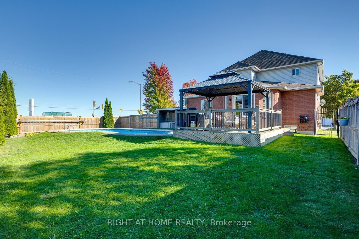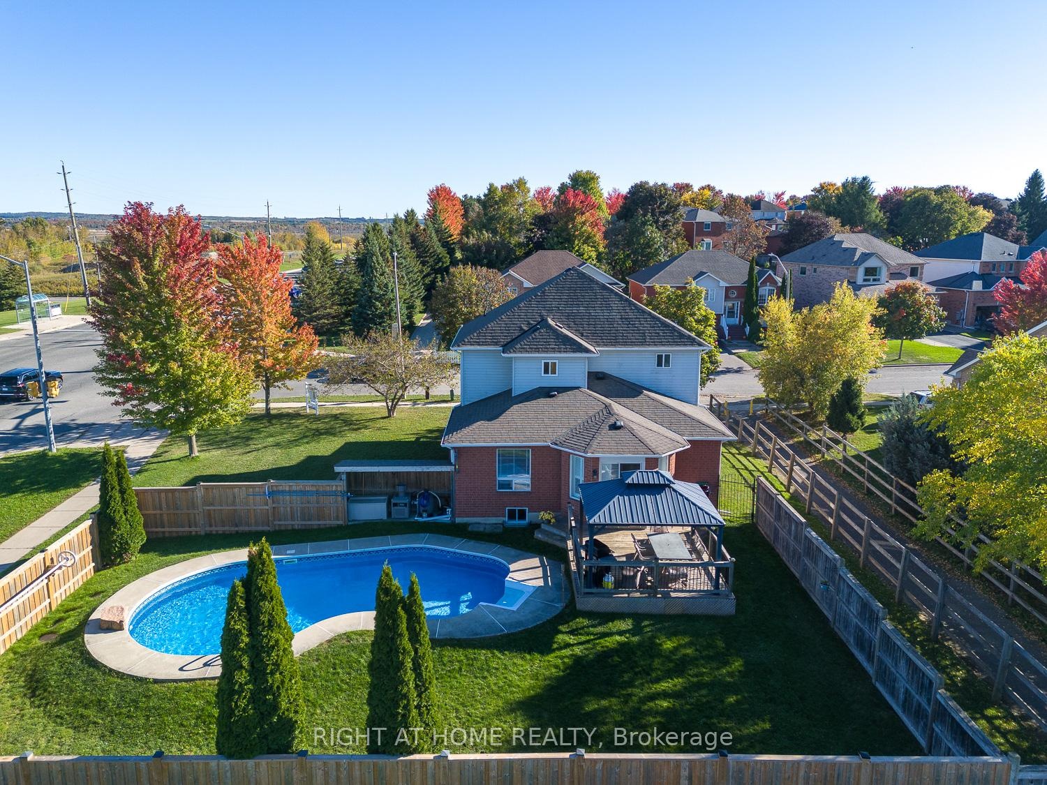 DescriptionWelcome to this beautifully maintained two-storey brick home, perfectly situated on a premium lot with no houses behind and just minutes from town. From the moment you step inside, the craftsmanship stands out; wainscoting in the front hall and dining room, crown moulding throughout, and a striking coffered ceiling in the kitchen. The main floor is bright and spacious, featuring a large dining room that flows seamlessly into the updated kitchen with an island, stainless steel appliances (fridge and stove 2018, dishwasher 2023, microwave and beverage centre 2025), pot lighting, and a walkout to the back deck. The kitchen opens to the living room, where a gas fireplace framed by a custom-built feature wall creates a warm and elegant focal point. A convenient powder room and main floor laundry with direct garage access complete this level. Upstairs, the primary bedroom includes a four-piece ensuite, while two additional bedrooms and a well-appointed main bath provide comfortable family living. The finished basement offers a welcoming and versatile space, highlighted by wainscoting, an electric fireplace set against a floor-to-ceiling stone feature wall, and a multi-purpose room ideal for an office or guest area. Step outside and enjoy the private backyard, featuring a heated inground pool with a newer liner (2019), pool pump and chlorinator (2022), and plenty of room for entertaining. With no rear neighbours, youll appreciate the peace and privacy of this setting. Additional updates include a new furnace (2022) and roof (2014). A charming front porch enhances the curb appeal and completes this move-in ready home. This is a solid, beautifully cared-for property with standout details, thoughtful updates, and a backyard designed for both relaxation and fun, one you'll want to experience for yourself!Virtual Tour: https://vimeo.com/1126191388Amenities- Auto Garage Door Remote