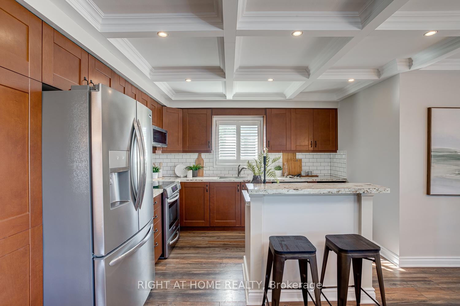 Welcome to this beautifully maintained two-storey brick home, perfectly situated on a premium lot with no houses behind and just minutes from town. From the moment you step inside, the craftsmanship stands out; wainscoting in the front hall and dining room, crown moulding throughout, and a striking coffered ceiling in the kitchen. The main floor is bright and spacious, featuring a large dining room that flows seamlessly into the updated kitchen with an island, stainless steel appliances (fridge and stove 2018, dishwasher 2023, microwave and beverage centre 2025), pot lighting, and a walkout to the back deck. The kitchen opens to the living room, where a gas fireplace framed by a custom-built feature wall creates a warm and elegant focal point. A convenient powder room and main floor laundry with direct garage access complete this level. Upstairs, the primary bedroom includes a four-piece ensuite, while two additional bedrooms and a well-appointed main bath provide comfortable family living. The finished basement offers a welcoming and versatile space, highlighted by wainscoting, an electric fireplace set against a floor-to-ceiling stone feature wall, and a multi-purpose room ideal for an office or guest area. Step outside and enjoy the private backyard, featuring a heated inground pool with a newer liner (2019), pool pump and chlorinator (2022), and plenty of room for entertaining. With no rear neighbours, youll appreciate the peace and privacy of this setting. Additional updates include a new furnace (2022) and roof (2014). A charming front porch enhances the curb appeal and completes this move-in ready home. This is a solid, beautifully cared-for property with standout details, thoughtful updates, and a backyard designed for both relaxation and fun, one you'll want to experience for yourself!