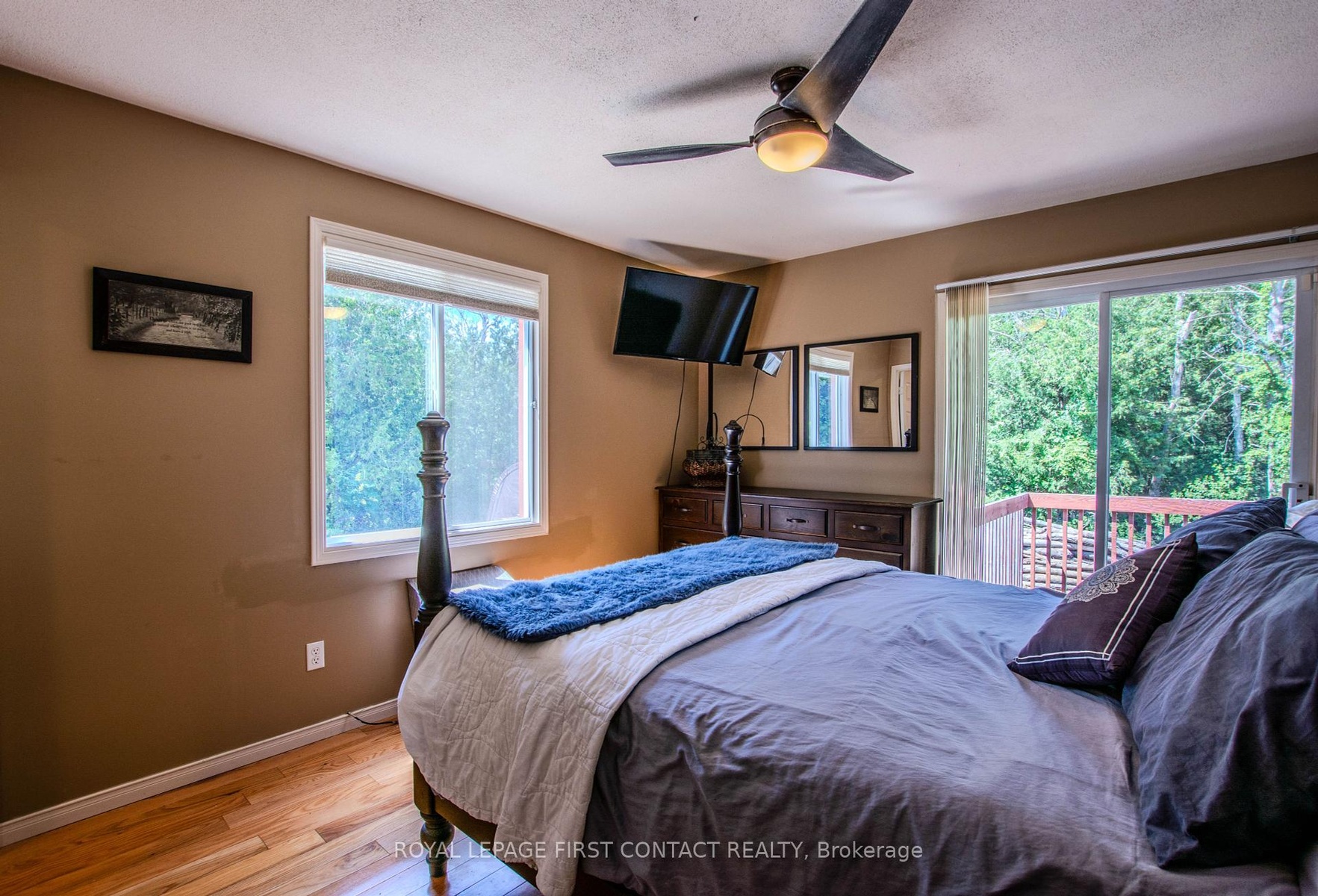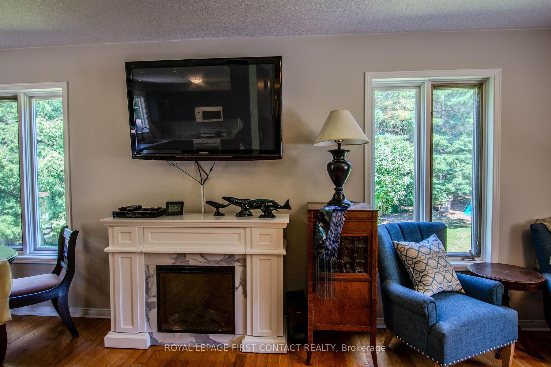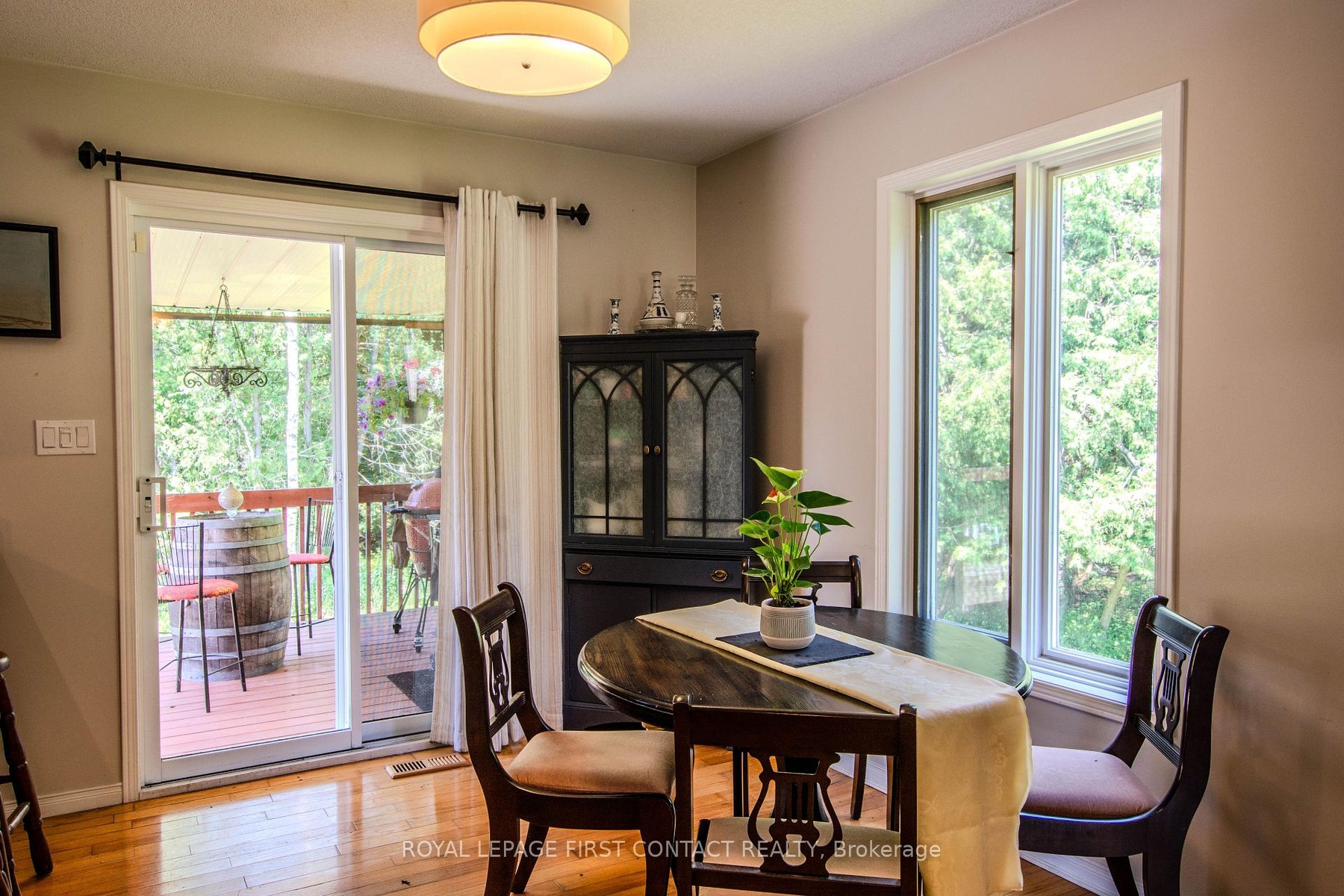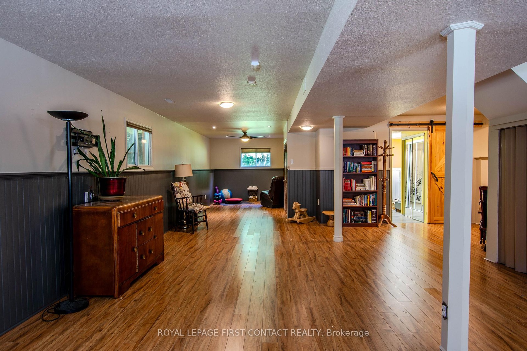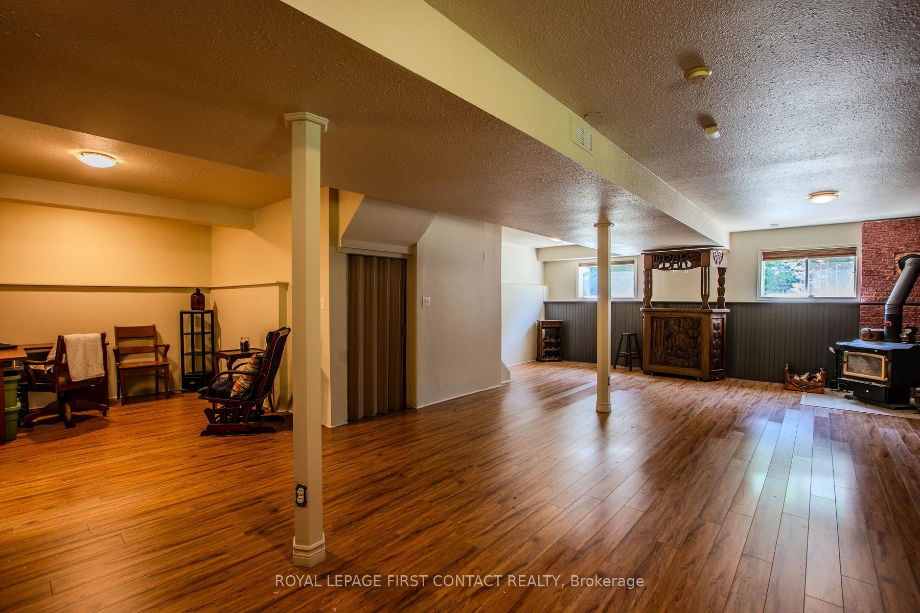 Private Setting -1.07A acre. Beautifully maintained 3-bedroom, 3-bathroom home ideally situated just minutes from Barrie and Angus. Enjoy peaceful surroundings with easy access to amenities, golf, and the Tiffin Conservation Area. Main Features: Open-concept main floor with abundant natural light (please see floor plans)Hardwood flooring. Walkout to large deck overlooking serene conservation views. Covered hot tub perfect for year-round relaxation. Primary Suite: Hardwood flooring, 4-piece ensuite bath, Walk-in closet, Direct deck access overlooking rear yard and trees. Lower Level: Garage access to bright, finished family room. Large windows and cozy wood stove. Full lower 3-piece bath-Ideal for guest suite or in-law setup, home office, or games room. Laundry area with stainless steel sink. Additional Highlights: Central air conditioning, Central vacuum system, Water treatment system. Insulated & drywalled double garage/workshop. Ample parking for multiple vehicles. Garden shed for tools and landscaping storage. Coverall building with recently replaced cover perfect for large-item or seasonal storage. This property offers the perfect combination of privacy and functionality .
