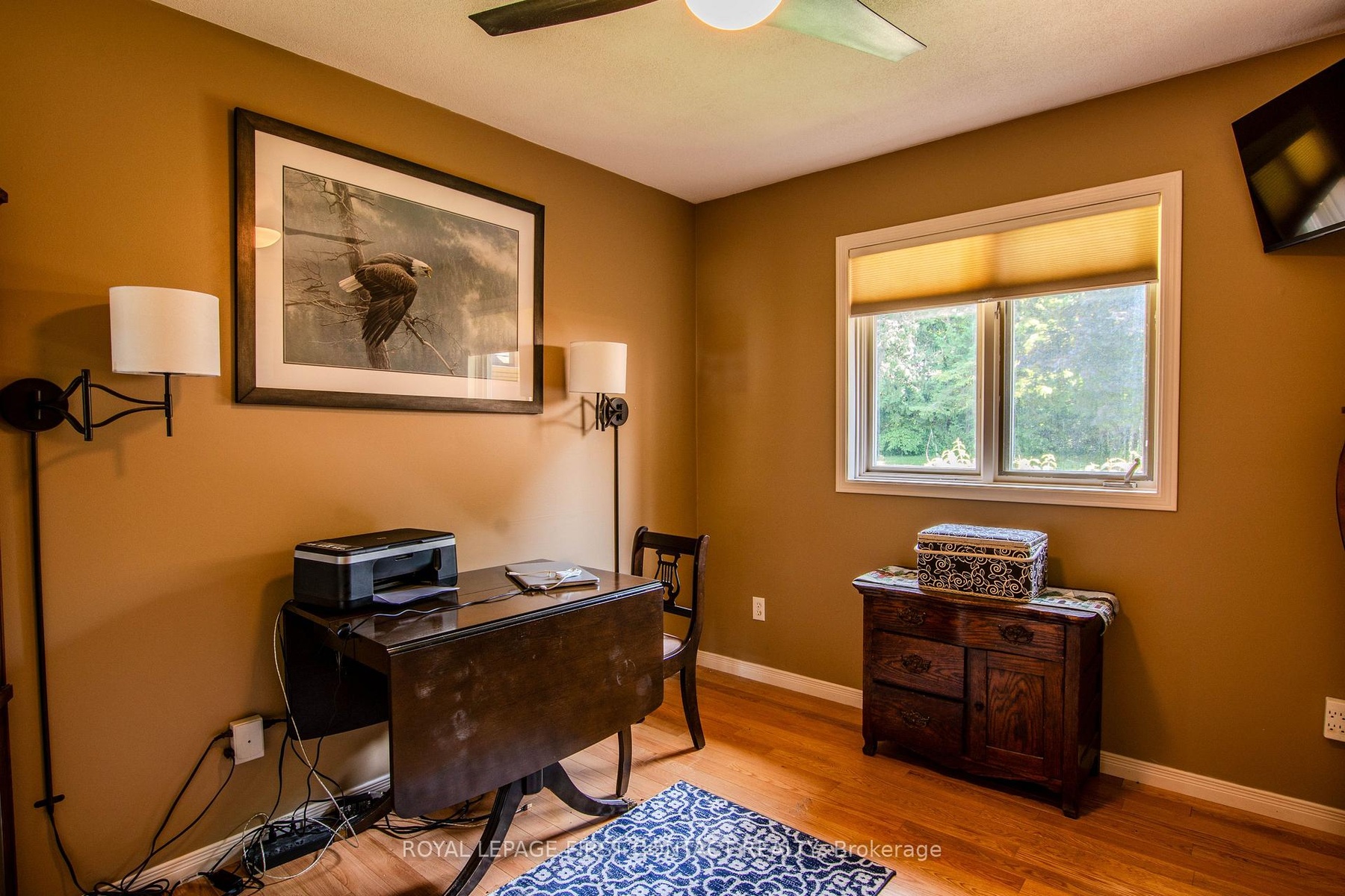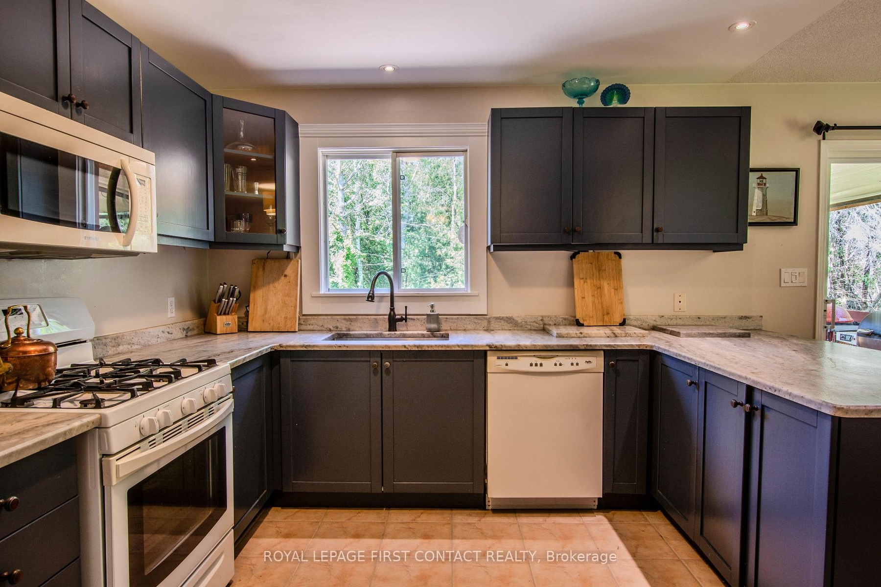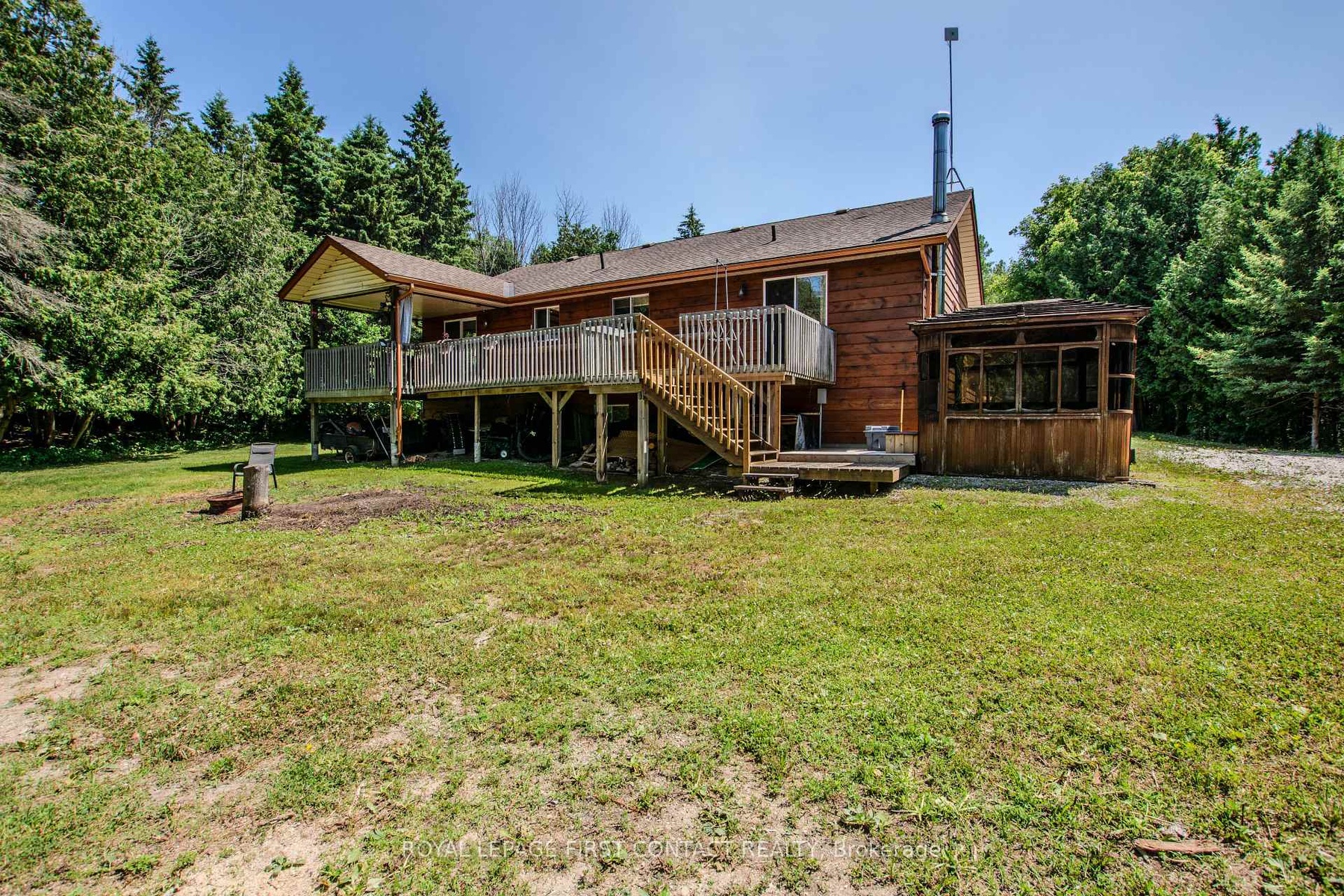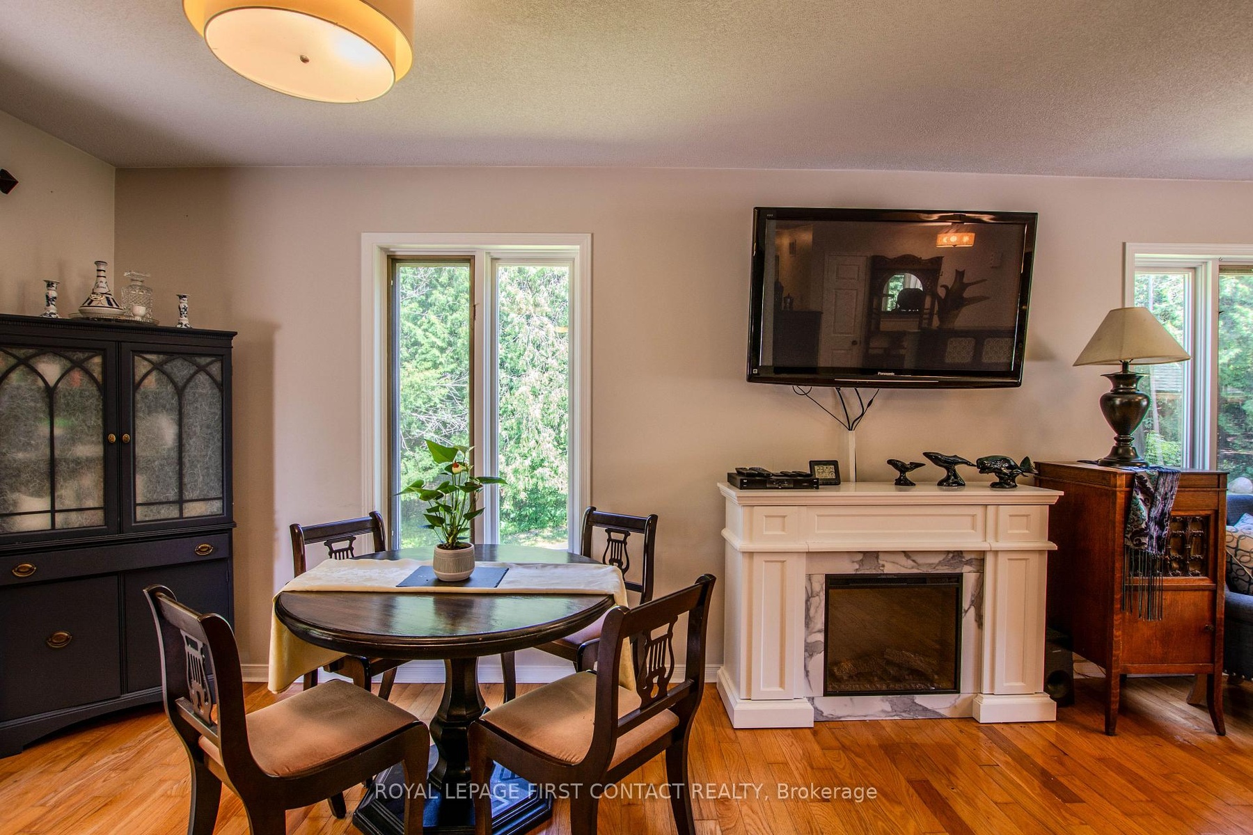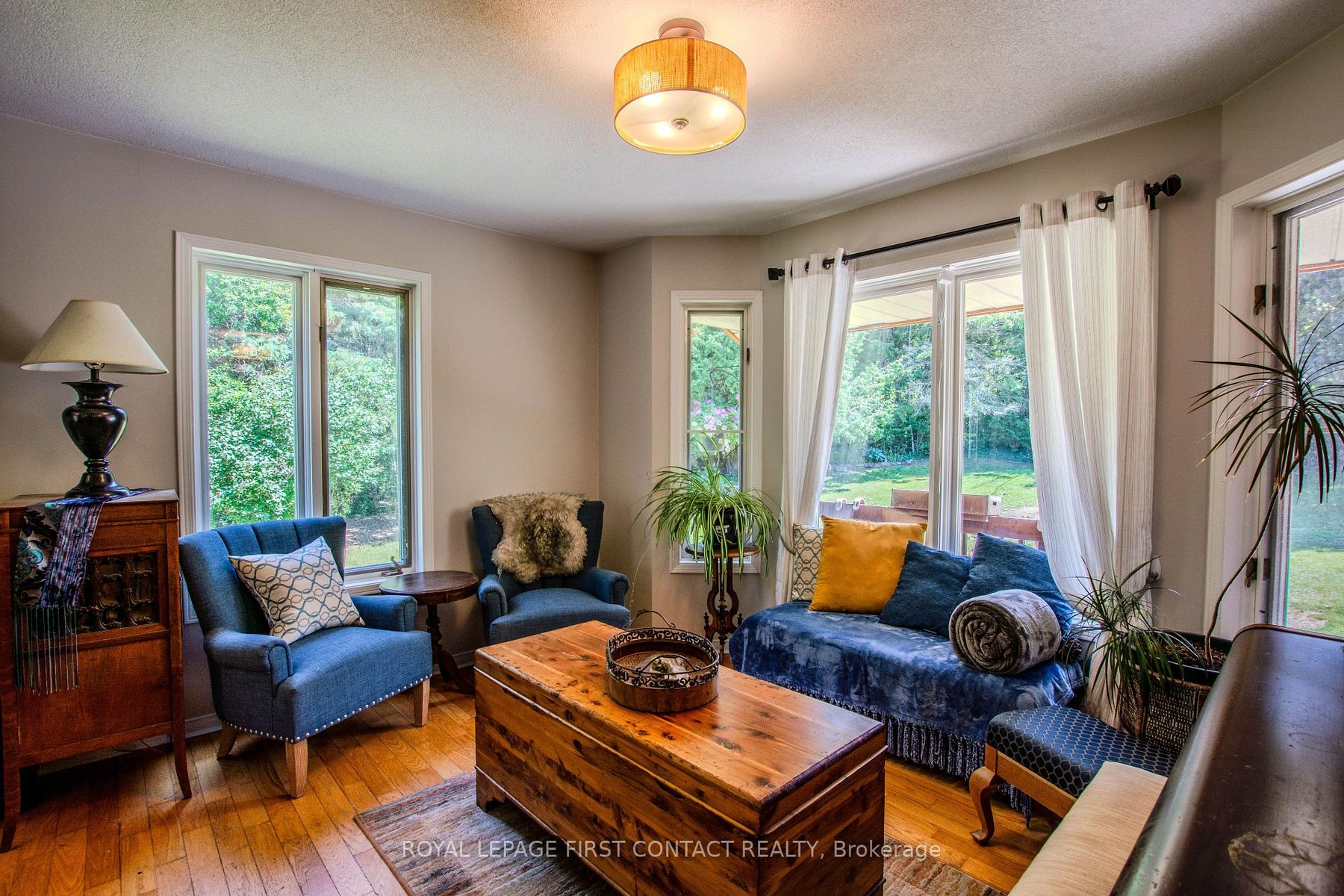 Private Setting -1.07A acre. Beautifully maintained 3-bedroom, 3-bathroom home ideally situated just minutes from Barrie and Angus. Enjoy peaceful surroundings with easy access to amenities, golf, and the Tiffin Conservation Area. Main Features: Open-concept main floor with abundant natural light (please see floor plans)Hardwood flooring. Walkout to large deck overlooking serene conservation views. Covered hot tub perfect for year-round relaxation. Primary Suite: Hardwood flooring, 4-piece ensuite bath, Walk-in closet, Direct deck access overlooking rear yard and trees. Lower Level: Garage access to bright, finished family room. Large windows and cozy wood stove. Full lower 3-piece bath-Ideal for guest suite or in-law setup, home office, or games room. Laundry area with stainless steel sink. Additional Highlights: Central air conditioning, Central vacuum system, Water treatment system. Insulated & drywalled double garage/workshop. Ample parking for multiple vehicles. Garden shed for tools and landscaping storage. Coverall building with recently replaced cover perfect for large-item or seasonal storage. This property offers the perfect combination of privacy and functionality .
