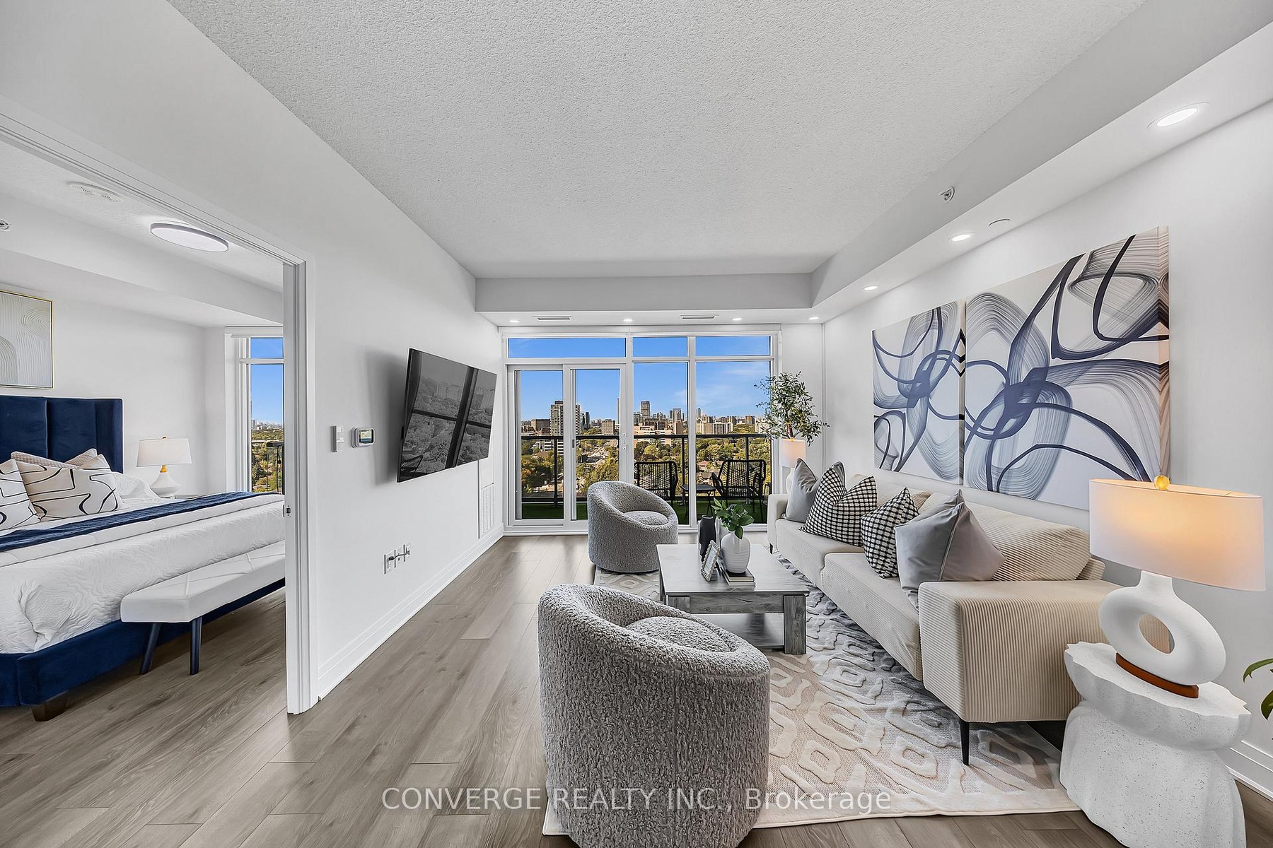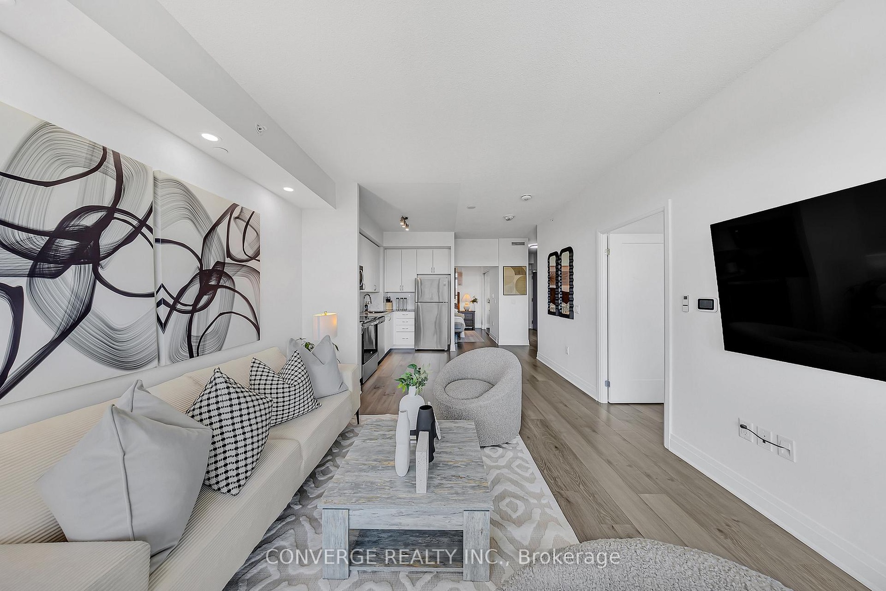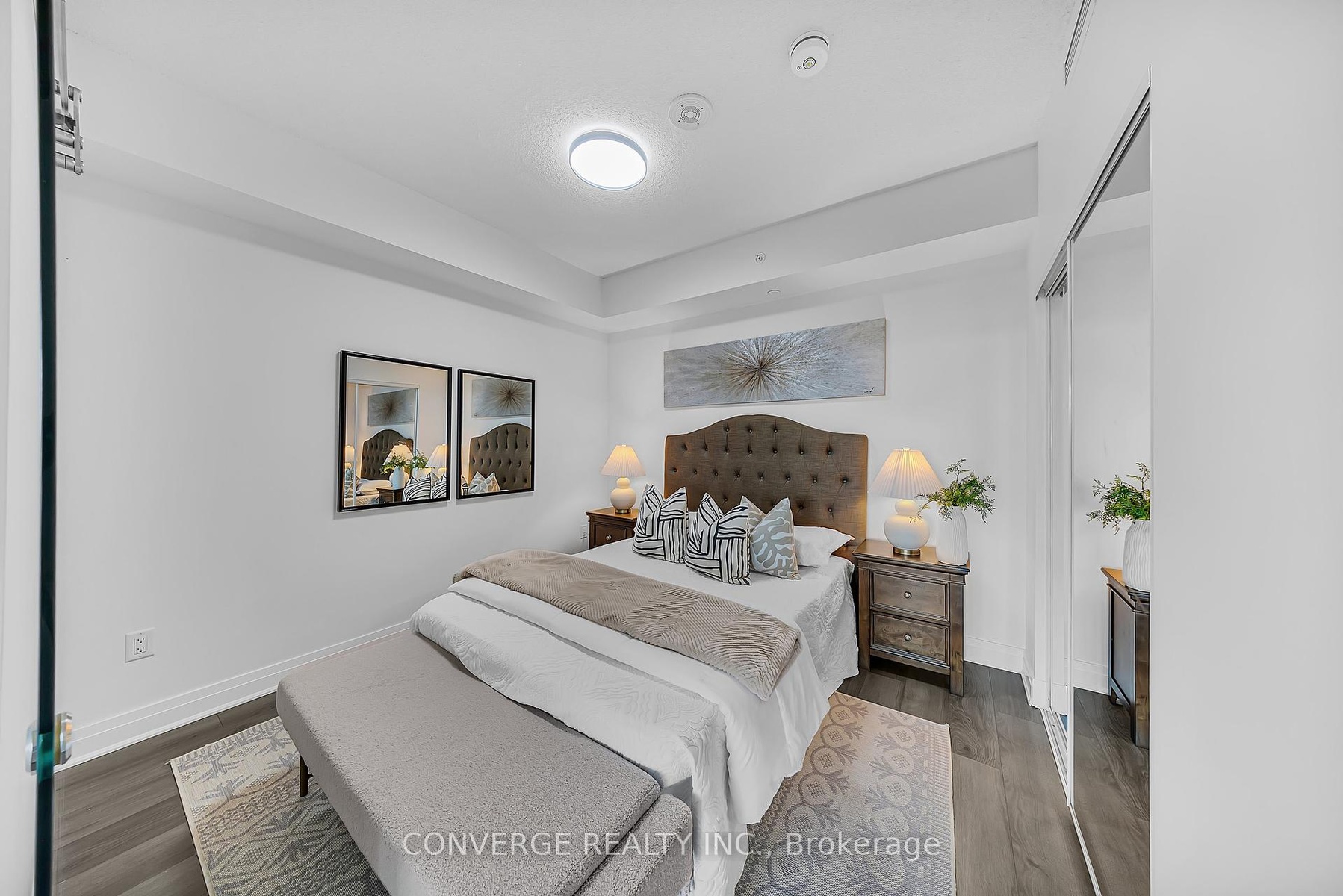 TOTAL 944 SQ. Welcome to this stunning 2-bedroom, 2-bathroom condo, ideally situated in the centre of Toronto. This beautifully upgraded end unit features expansive floor-to-ceiling windows that bathe the space in natural light, while offering unobstructed views of the Toronto skyline. The living room is enhanced by pot lights and remote motorized blinds, allowing you to adjust the ambiance. The open-concept living and dining area is ideal for both entertaining and relaxing. All Ceiling upgraded light fixtures allows you to change the lighting to one of three colours. The full-size kitchen is designed for both function and style, with ample counter space and storage. Step outside onto your private balcony, which spans over 115 square feet and is laid with lush turf grass. The space is complemented by garden lights along the edges, creating a cozy, inviting outdoor oasis where you can enjoy breathtaking views of the city skyline and sunsets. The building offers exceptional convenience with a TTC bus stop right at your doorstep, less than 3 minutes to the 401, 404, and DVP. For added comfort, the building has a 24-hour concierge service. This unit has access to the buildings EV parking, making it ideal for modern living. 1 parking space and 2 lockers.