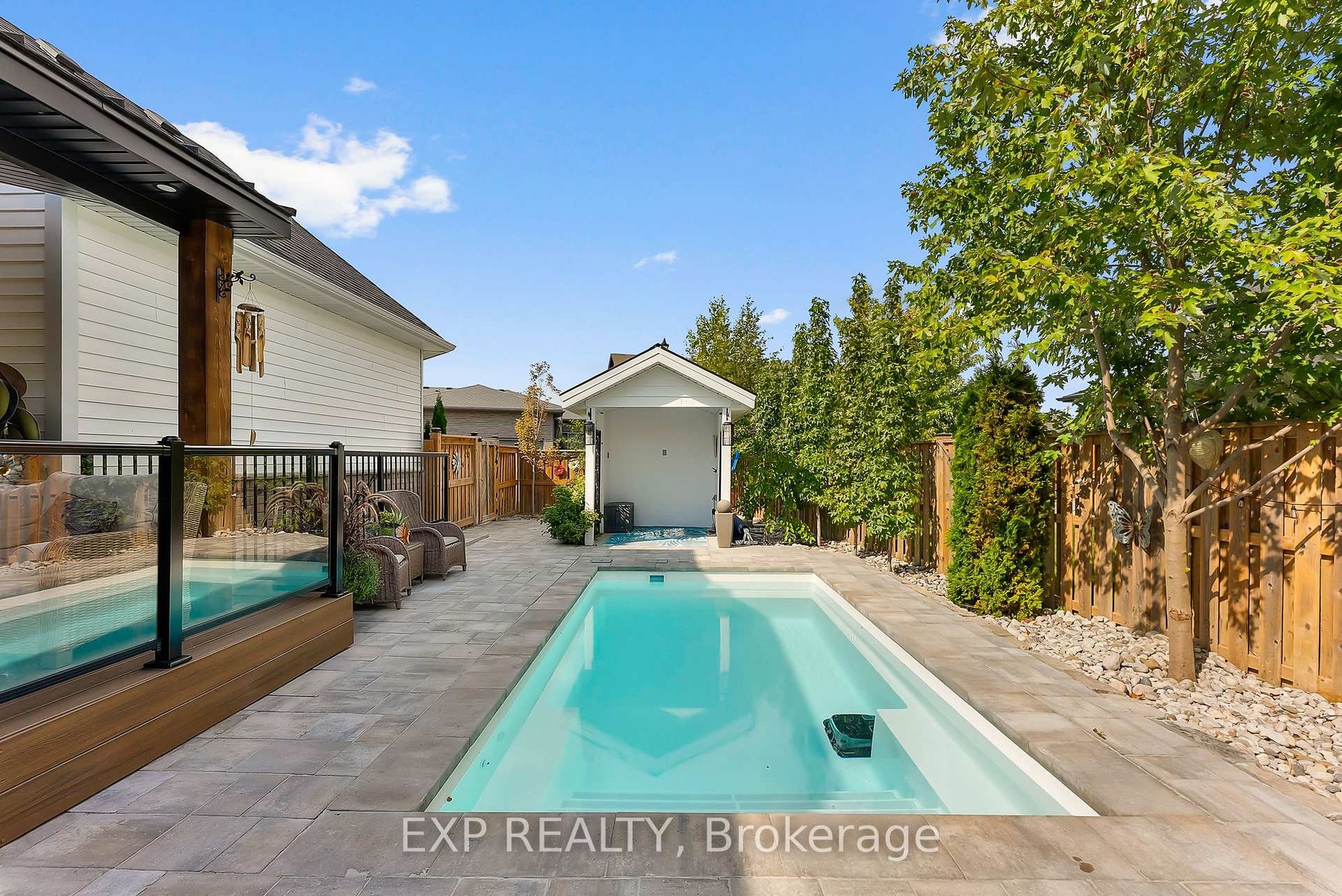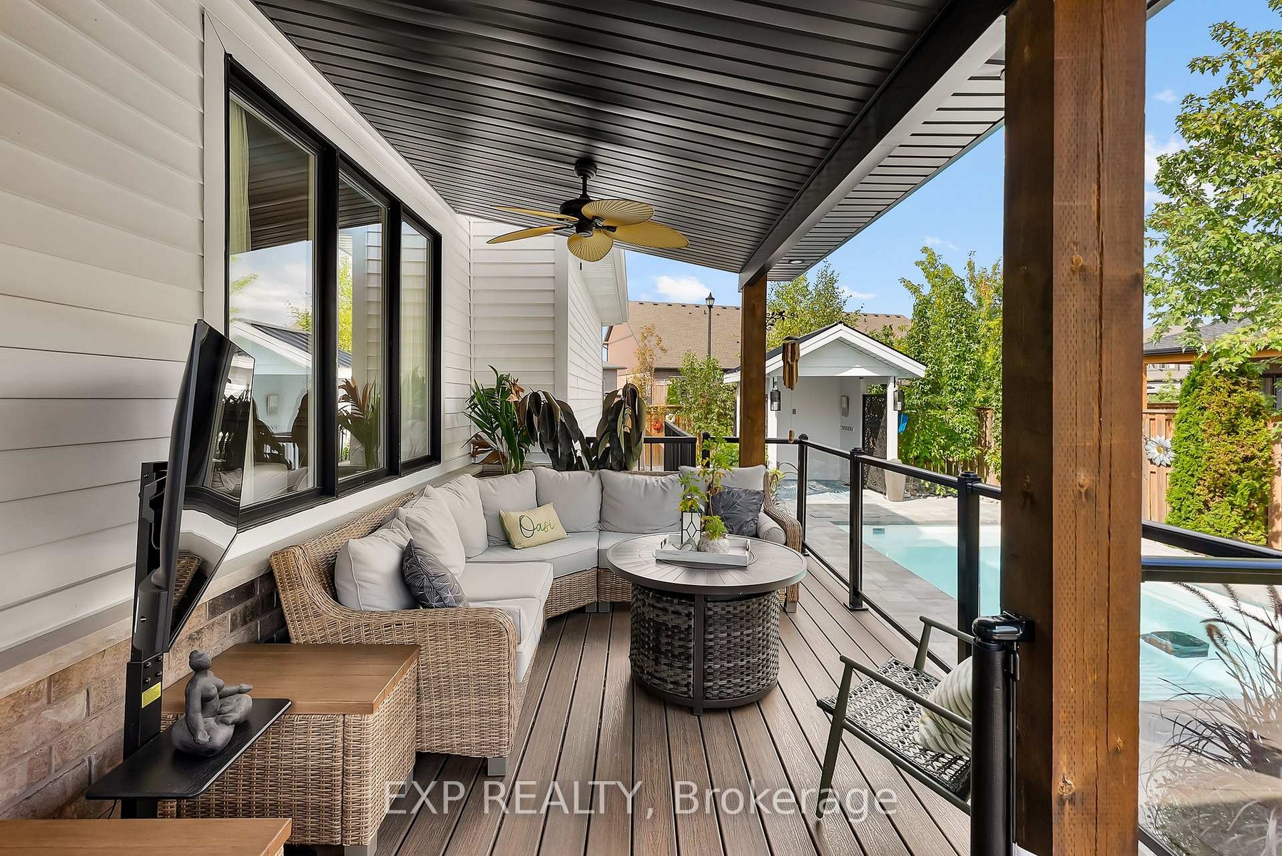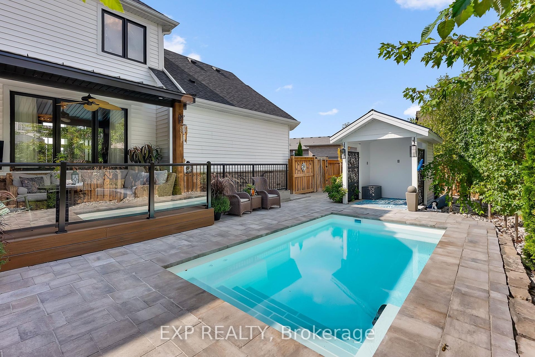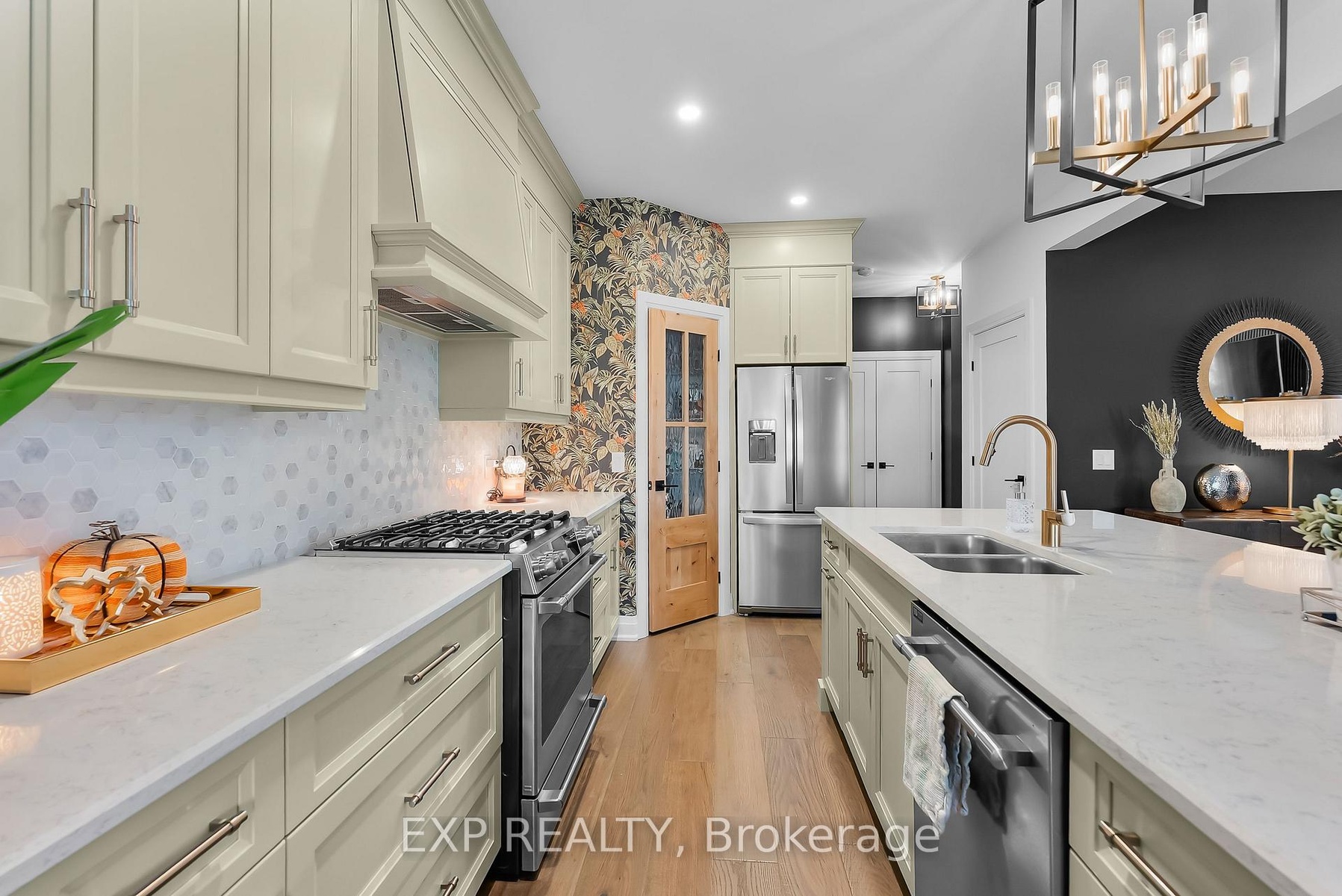 DescriptionWelcome to this custom-built showpiece tucked in one of Fonthill's most coveted neighbourhoods. A home that balances timeless elegance with everyday comfort. At the heart of the design is a fully self-contained main-floor in-law suite with its own entrance, kitchen, and living space. Whether it's for family, guests, or a private rental opportunity, this thoughtful addition creates effortless flexibility and independence without compromise. Step inside and experience the warmth and quality craftsmanship showcased in every detail, including beautiful natural stone fireplaces and refined finishes throughout. Two stunning kitchens by Oakridge Kitchens anchor the home, each finished with quartz countertops, custom cabinetry, and designer lighting from Dons Lighthouse. Nine-foot ceilings, solid-core doors, and oversized trim complete the upscale atmosphere. Upstairs, every bedroom includes a walk-in closet with built-ins, while the primary retreat features elegant coffered ceilings and a calming, refined aesthetic. Downstairs, the professionally finished lower level expands the possibilities with two full bathrooms, a recreation area, den, children's playroom, and a soundproof office or studio with a private bath a dream setup for creatives, remote professionals, or home-based businesses. There's even potential to add a second private apartment with separate access. Outside, the property feels like a boutique resort. Enjoy the brand-new 2024 Mova fiberglass saltwater pool with a heat pump, unwind under the custom cabana, or host gatherings on the covered composite deck and interlocking stone patio. Surrounded by mature cedar, birch, and maple trees, the landscape is designed for privacy, shade, and year-round beauty. Luxury, functionality, and serenity unite in this rare Fonthill offering a home that truly adapts to the way you live.Virtual Tour: https://my.matterport.com/show/?m=HxEoxXomwc1Amenities- Accessory Apartment