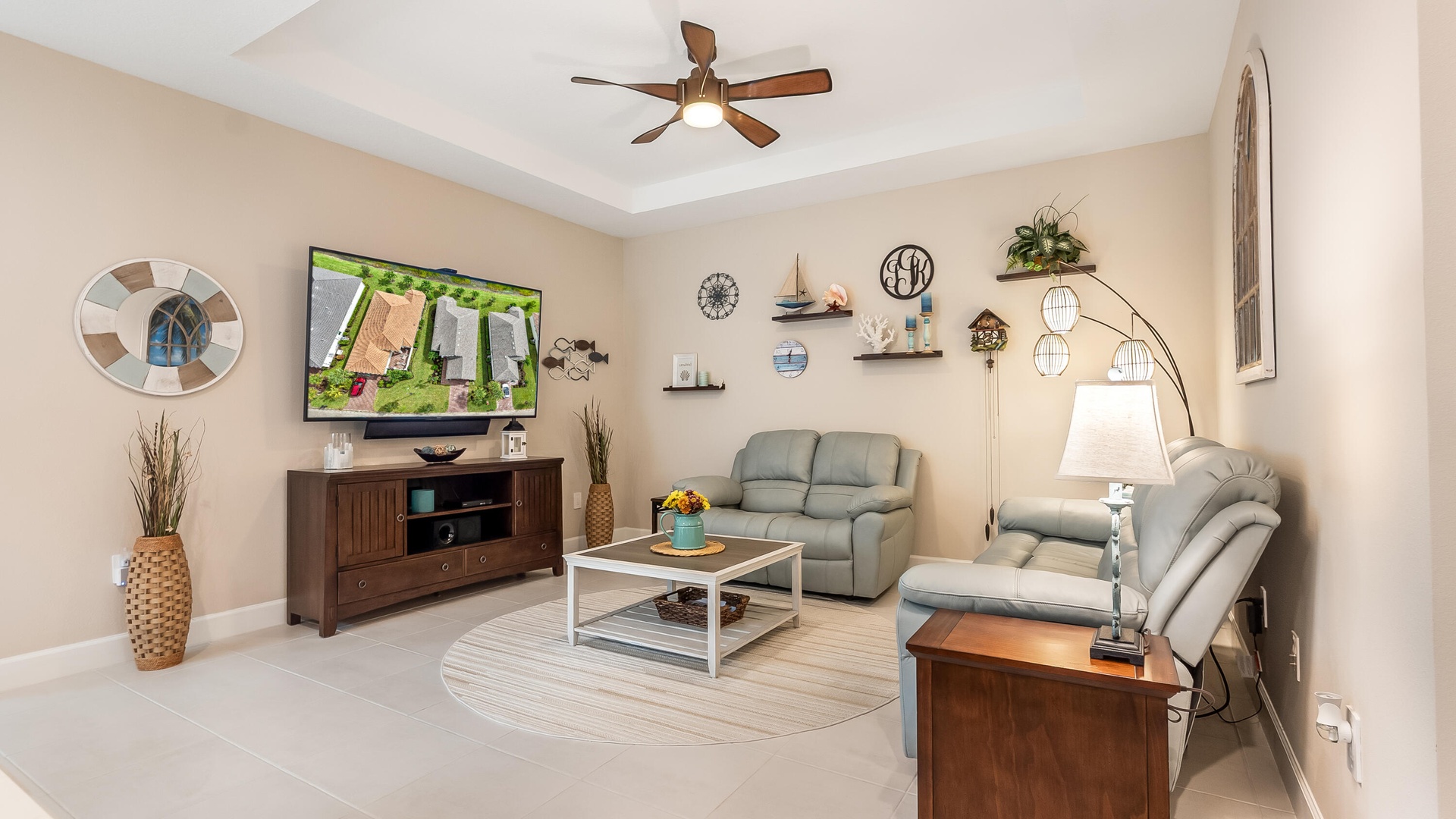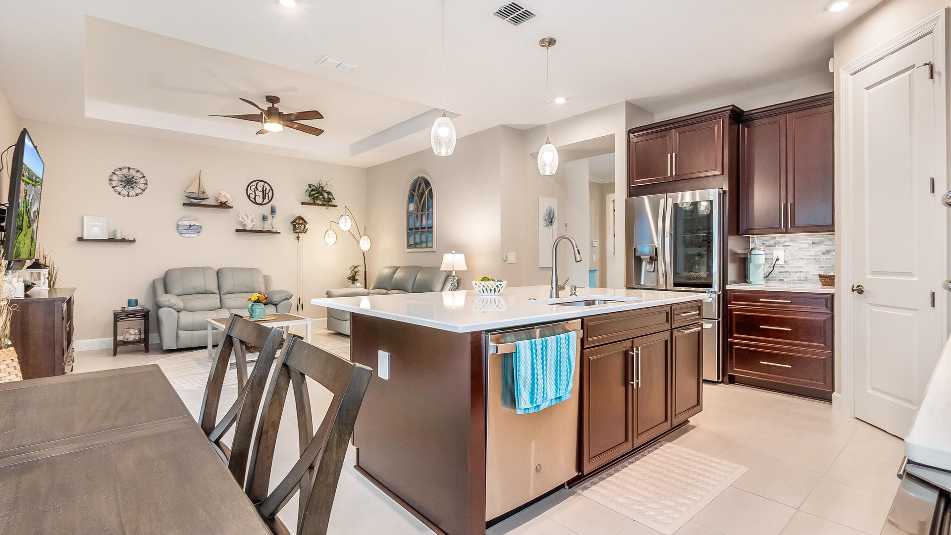 DescriptionBetter than new with upgrades galore in Vitalia at Tradition - a 55+ active community! This 2BR/2BA home with a versatile den/flex room--complete with sliding pocket doors--offers upgrades & tile throughout. Built in 2021, this lakefront home features an extended east-facing lanai, tile floors, tray ceilings, and impact windows & doors. The upgraded kitchen includes quartz countertops, island cabinets, kitchen drawers for cookware, gas cooktop, wall oven/microwave, range hood, & counter-depth fridge. Added features include plantation shutters, pendant lights, ceiling fans, enhanced landscaping, and upgraded 8 ft doors. Located near the Captiva Clubhouse with resort-style amenities - 2 pools, putting green, tennis, pickleball and more. Lawn care, security, cable & internet included in HOA.