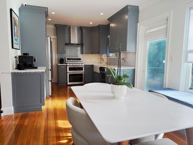 This beautifully crafted 2-bedroom, 2-bath home in historic Griffin Park Estates sits on a 1⁄4-acre lot. Inside, original hardwood floors complement a custom kitchen with quartz countertops and high-end gas appliances. Enjoy spa-like Carrera marble baths, a six-seat bar, and smart home features with a full security system. Outside, relax in a tropical oasis with a saltwater pool, hot tub, Trex decking, and covered lounge. Hurricane impact windows, a whole-home generator, new HVAC, and lush landscaping make this home a rare find.