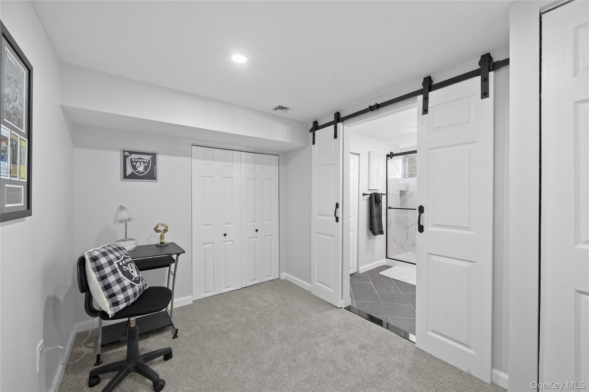 - Carpeted office space with baseboards