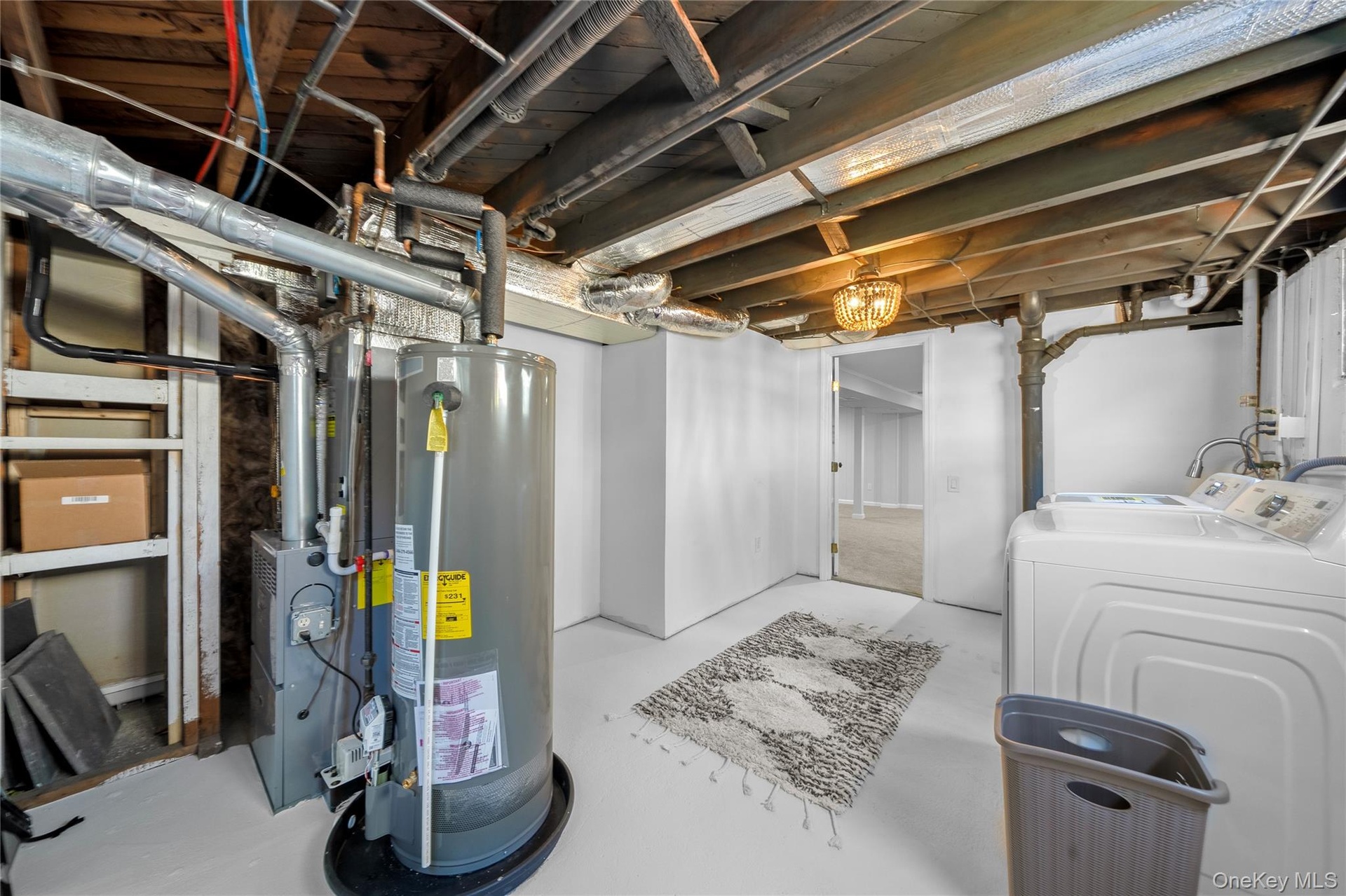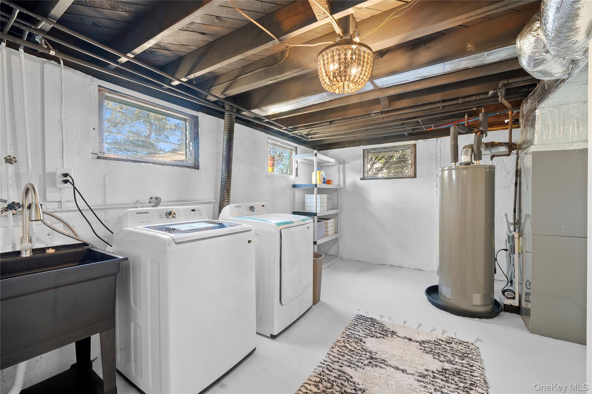 - Unfinished basement with gas water heater and washing machine and clothes dryer
