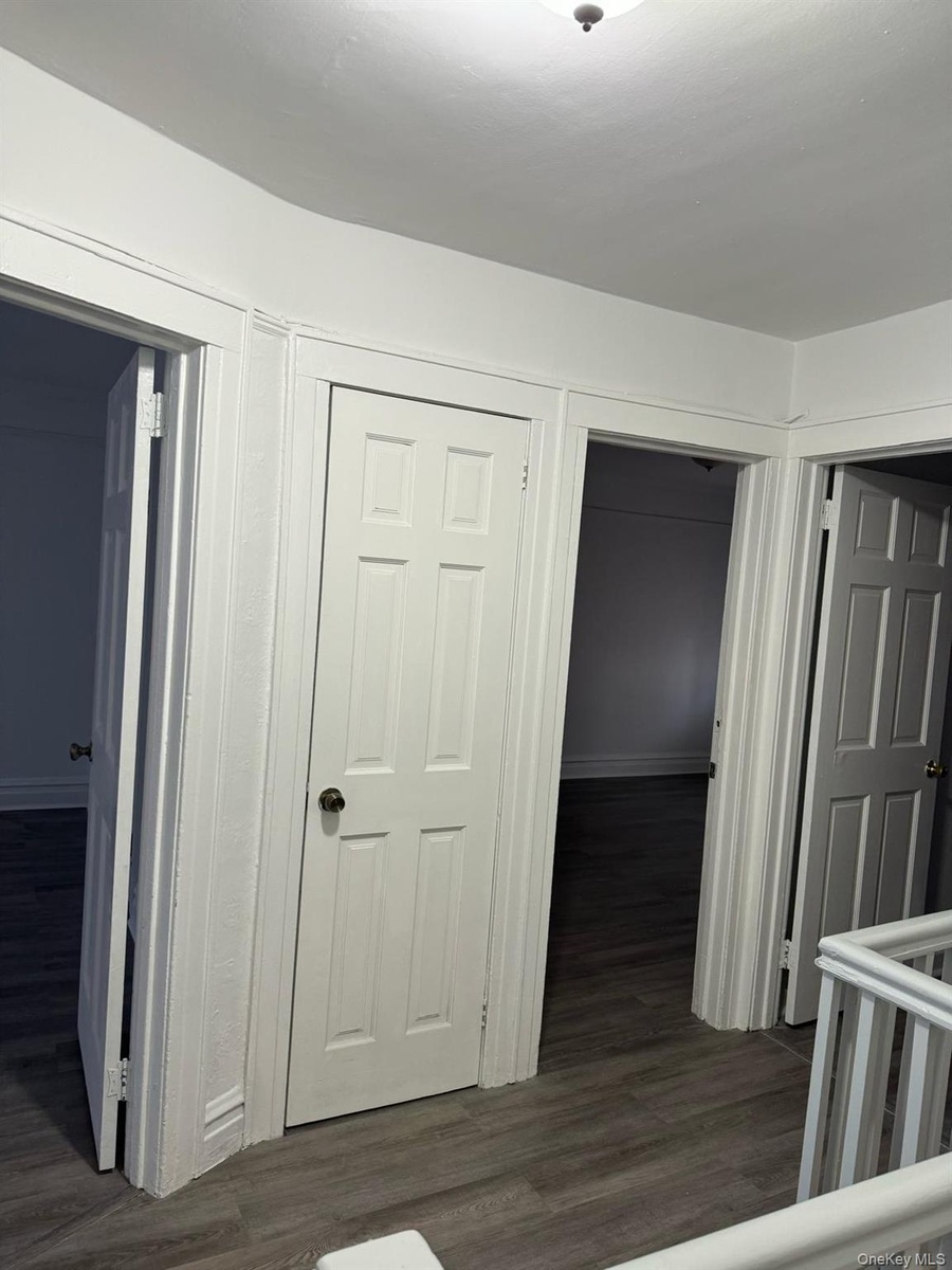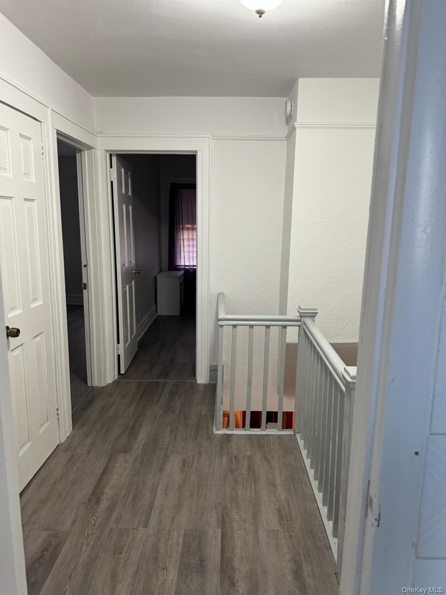 - Hall featuring dark wood-type flooring