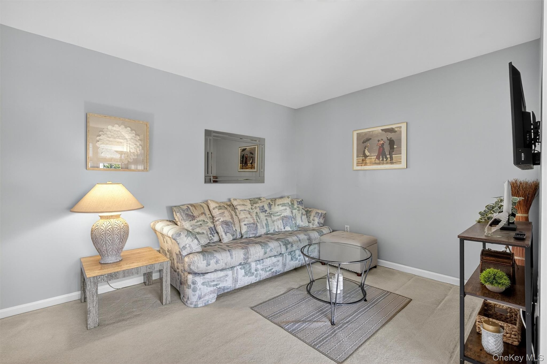- Carpeted living area with baseboards
