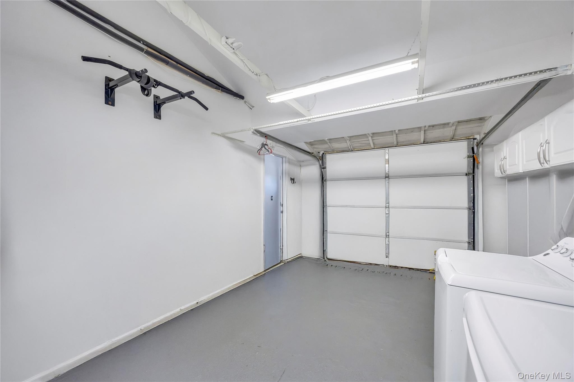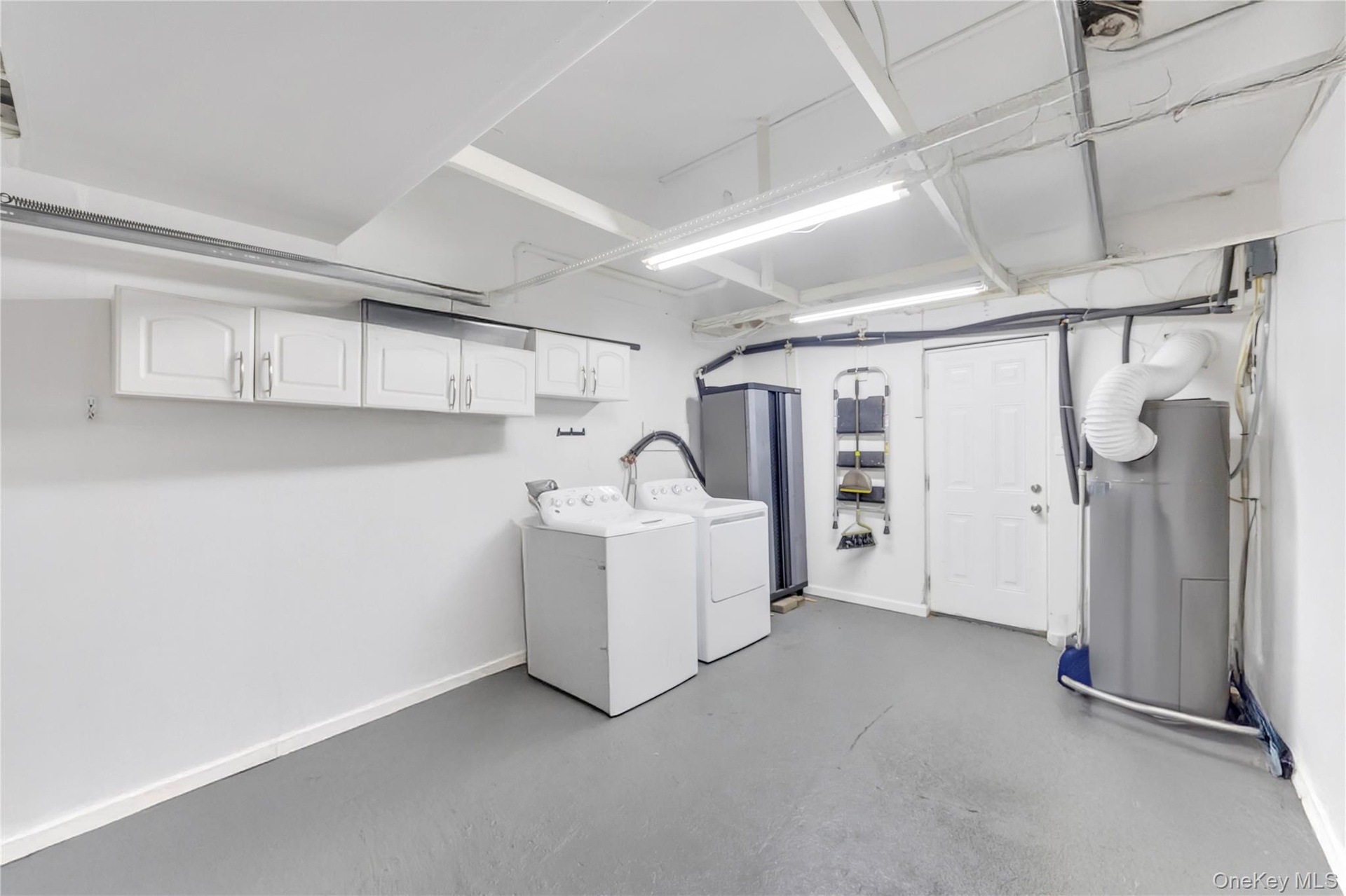 - Below grade area featuring washing machine and clothes dryer and water heater