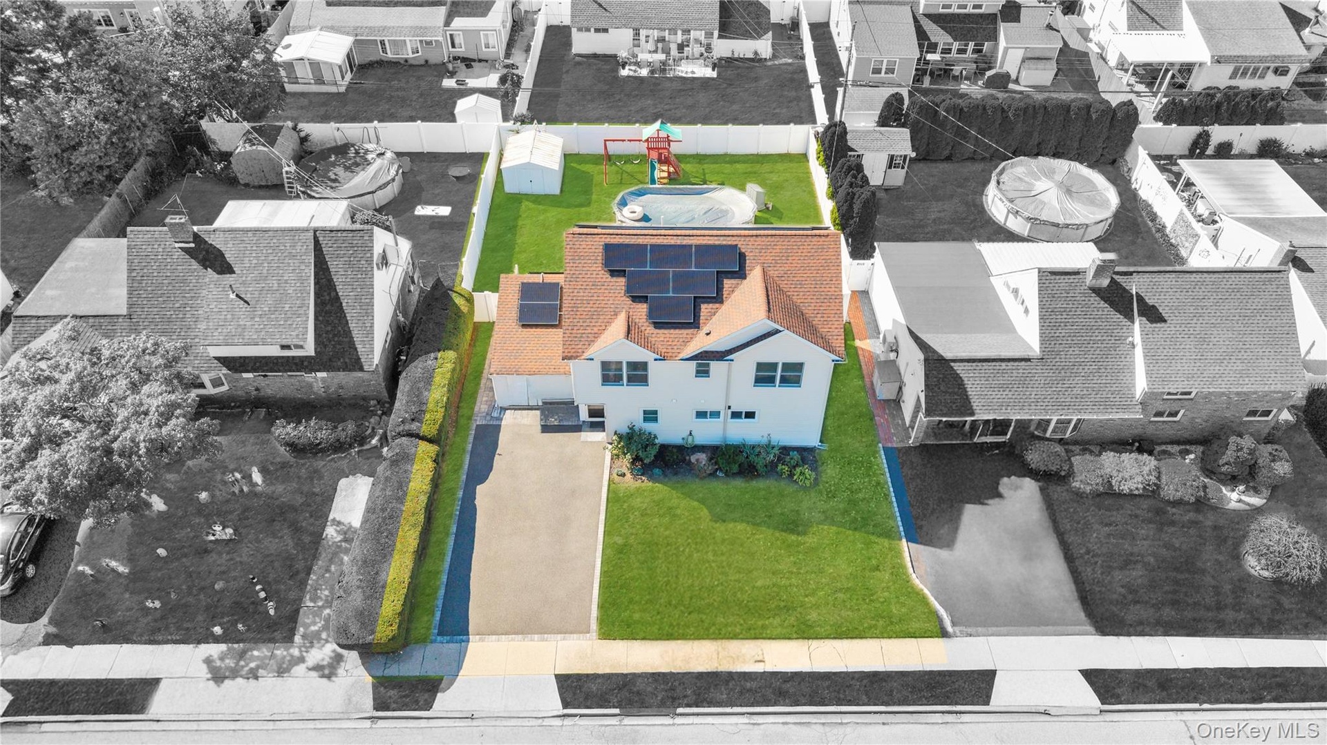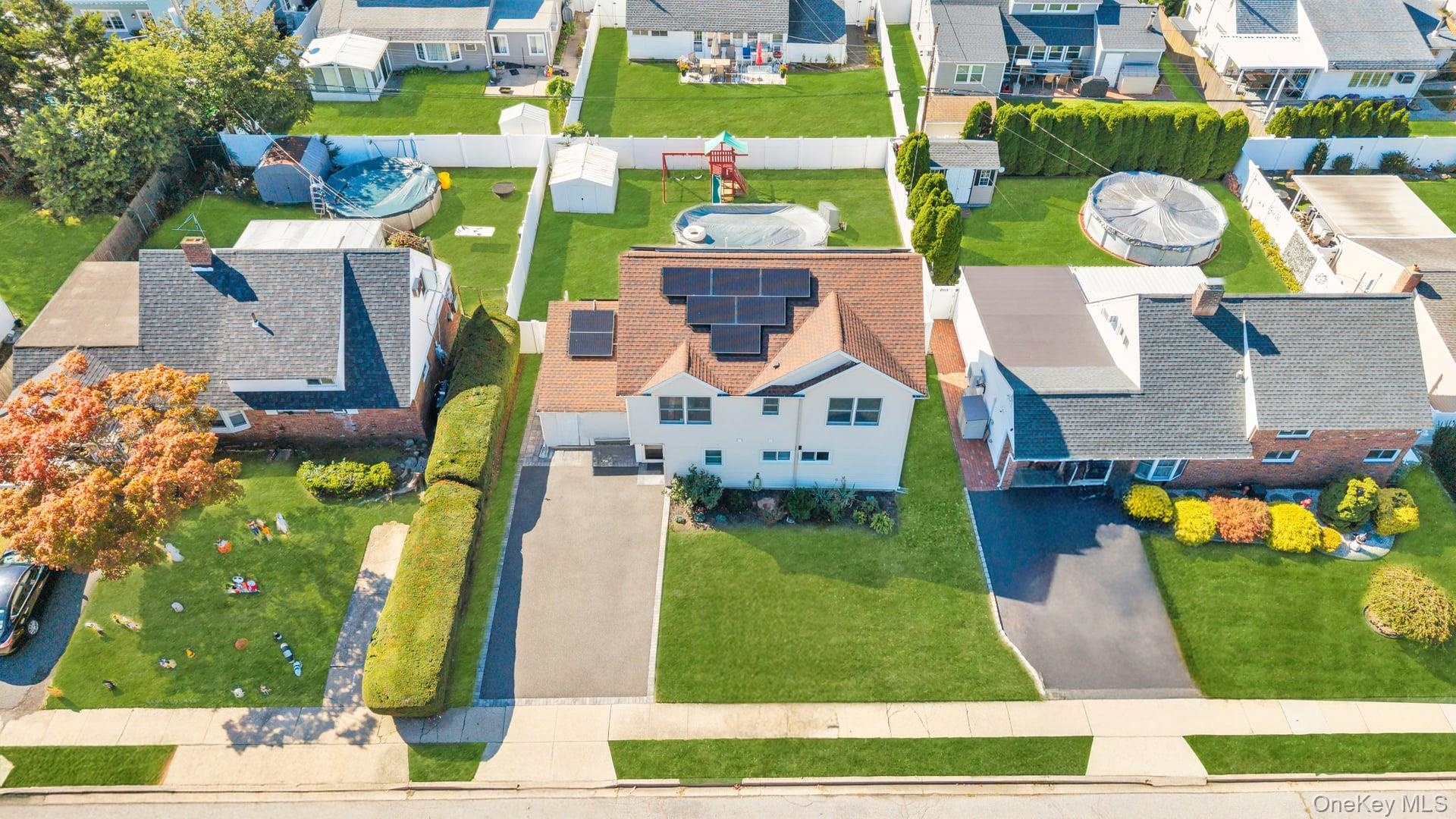 Welcome to this stunning colonial in Hicksville, which perfectly blends modern comfort with classic charm! Nestled in a quiet neighborhood, this lovely residence boasts a bright and inviting exterior, complemented by a spacious driveway and manicured lawn. Step inside to discover an open-concept living and dining area filled with natural light, highlighted by gleaming hardwood floors and elegant ceiling fans. The kitchen is a true centerpiece — showcasing sleek dark cabinetry, stainless steel appliances, and ample counter space, perfect for cooking and entertaining. This home offers multiple cozy bedrooms with warm natural tones and generous closet space, along with well-maintained bathrooms featuring modern fixtures. The finished lower level includes a clean and organized laundry and utility area for added convenience. Step outside to enjoy the expansive fenced backyard — ideal for family gatherings, barbecues, or simply relaxing in your private outdoor space. With its spacious layout, tasteful updates, and excellent location, this home is move-in ready and waiting for you to make it your own! The house also has solar panels which are fully paid-off and transferable!
