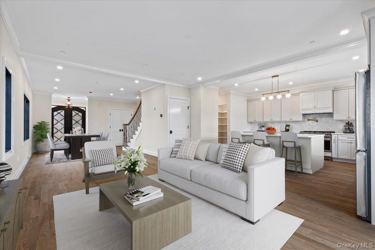 Experience Elevated Living in this brand-New 4 bed 4 bath Luxury Residence in the Heart of West Harrison! Be the first to reside in this exquisite, custom-built new construction home, impeccably crafted for modern luxury and sophisticated living. A stately double-door entry welcomes you into a sun-drenched, open-concept main level, where rich hardwood flooring flows through expansive formal and informal living spaces. The designer chef’s kitchen is a true showpiece—featuring top-of-the-line oversized appliances, a sprawling quartz center island, custom cabinetry, and a walk-in butler’s pantry for added storage and seamless meal prep—perfect for both everyday living and upscale entertaining. Step out onto the private deck with views of a well-maintained yard, offering additional space for outdoor dining or relaxation. The first floor also includes a stylish powder room, a custom mudroom, and effortless indoor-outdoor flow. Upstairs, the primary suite impresses with vaulted ceilings, an opulent spa-inspired en suite bath, and generous custom closets. Three additional, spacious bedrooms share a beautifully appointed hall bath, and the laundry room of your dreams—thoughtfully designed with premium finishes, ample cabinetry, and top-of-the-line appliances—adds both function and luxury to everyday living. The fully finished lower level offers remarkable versatility, boasting high ceilings, a custom wet bar, built-in cabinetry, a full bath, and direct walk-out access to the backyard—ideal for entertaining or casual gatherings. Additional features include separate high-efficiency gas and electric systems, central heating and cooling, garage parking, expansive storage and pristine hardwood flooring throughout. Located in the sought-after Harrison School District, this exceptional home also offers access to premium community amenities including the Harrison Meadows Country Club, town pool, pickleball courts, and convenient proximity to the White Plains Metro-North station—with express service to Grand Central. Luxury, location, and lifestyle—this home offers it all.