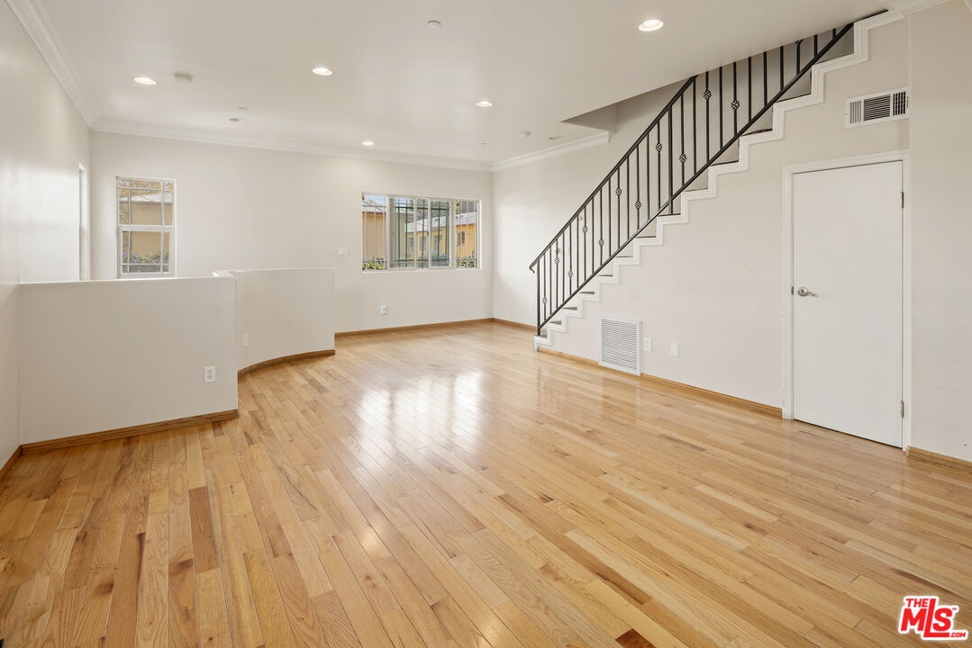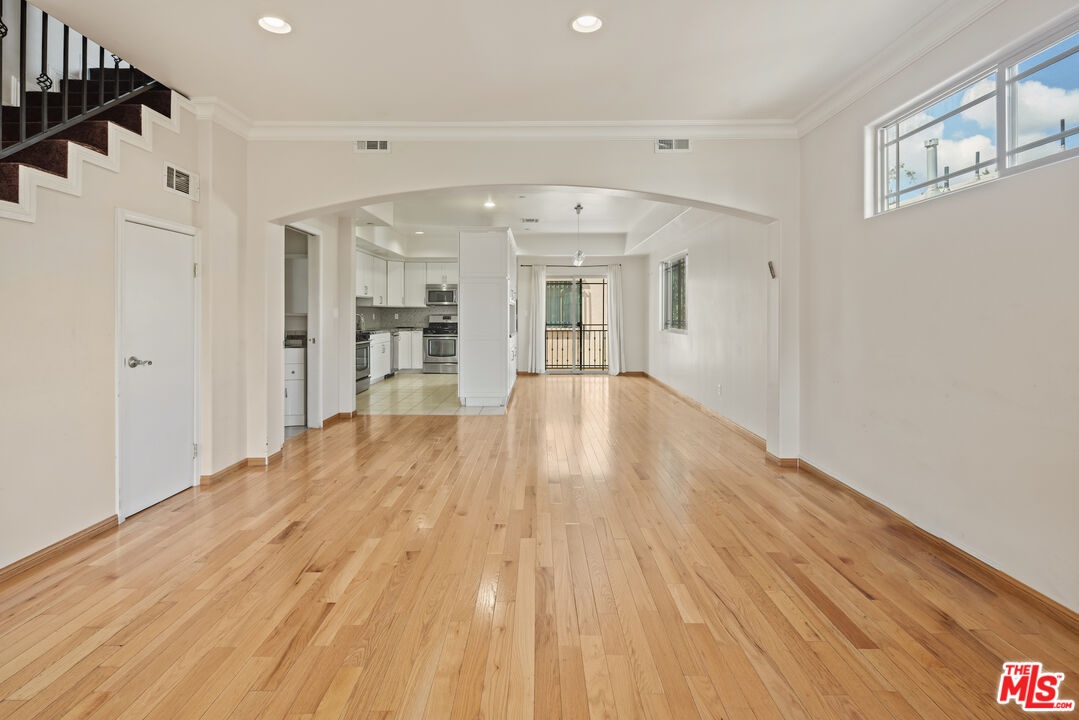 Welcome to this spacious and contemporary townhouse offering nearly 2,300 square feet of living space. Built in 2011, this 4-bedroom, 3.5-bathroom home blends modern design with practical functionality. The first floor features a large bedroom with an en-suite bathroom. The open-concept main level features a bright living area, dining space, and a large kitchen with 2 sinks and 2 stoves and a powder room. The third floor offers a large primary suite as well as 2 other spacious bedrooms with a jack and jill bathroom and a laundry room. Additional features include an attached garage, in-unit laundry, and a beautiful private outdoor yard, perfect for relaxing or entertaining. Situated in a vibrant Hollywood neighborhood, just steps from Hancock Park. Close to shops, restaurants, and major studios, this home offers convenience, comfort, and excellent value. This property will make a great home or worry free rental property.