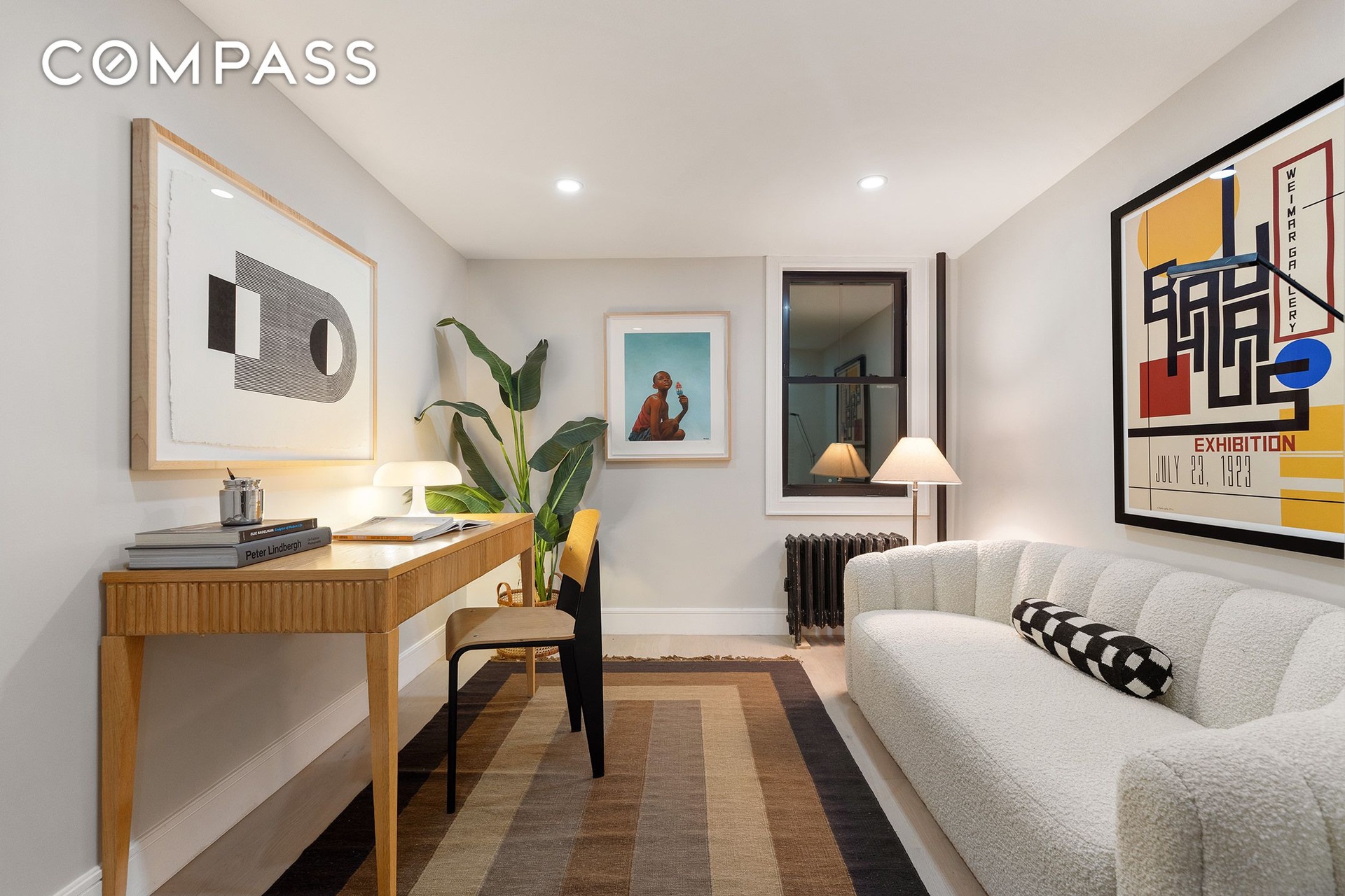 Upstairs, the king sized primary suite easily fits an additional seating area and is flooded with natural light through three oversized, Cityproof sound-treated windows. The walk-in closet leads to a spa-like ensuite with radiant heated floors, a walk-in shower with a separate soaking tub, and a floating double vanity with an LED smart mirror. The second bedroom, thoughtfully positioned at the other end of the second level for privacy, features a built-out closet and full ensuite bath. All full bathrooms are outfitted with radiant heated floors and the laundry room includes a washer, vented dryer, countertop space, and a vanity for storage. The garden level offers two additional bedrooms and a bonus living area, ideal for movie nights or a children's playroom.