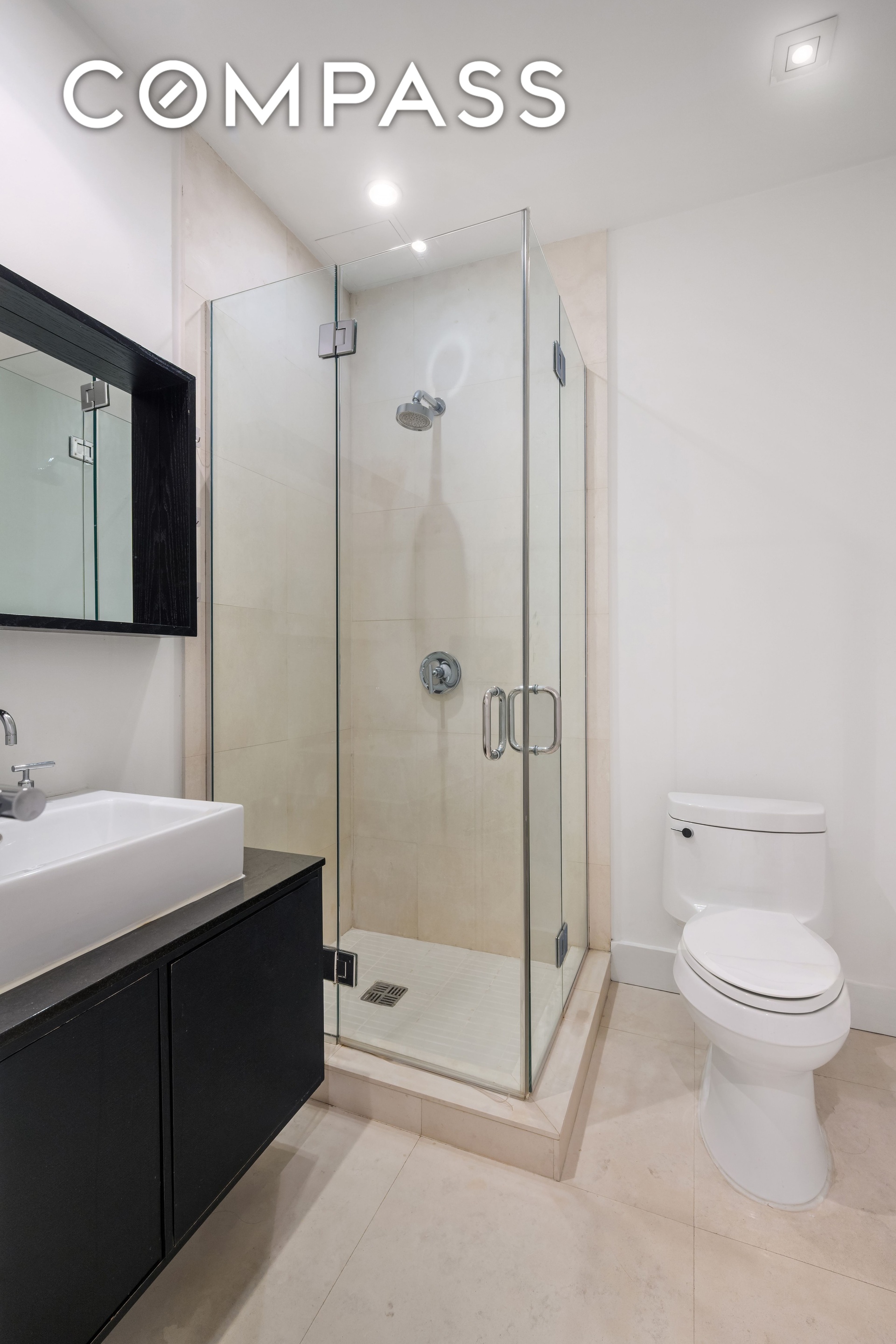 The open-concept kitchen is both stylish and functional, featuring sleek stone countertops, a Liebherr refrigerator, Bosch appliances, a vented hood, gas range, and an in-unit washer/dryer combo. The expansive primary suite spans an impressive 12' x 29', offering the feel of a private apartment within the home. It boasts a spa-like en-suite bath with a luxurious soaking tub, custom Kohler fixtures, and an enormous, custom-designed walk-in closet. If you're in need of a home office, den, or playroom, there’s plenty of space to create one—see the alternate floor plan for inspiration. The second full bathroom continues the home’s refined aesthetic, with Kohler fixtures and modern finishes.