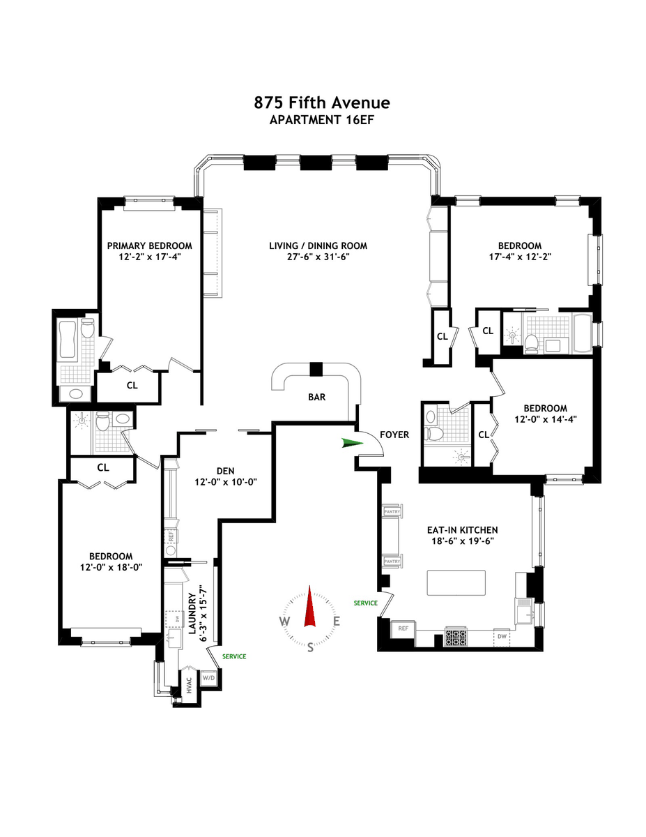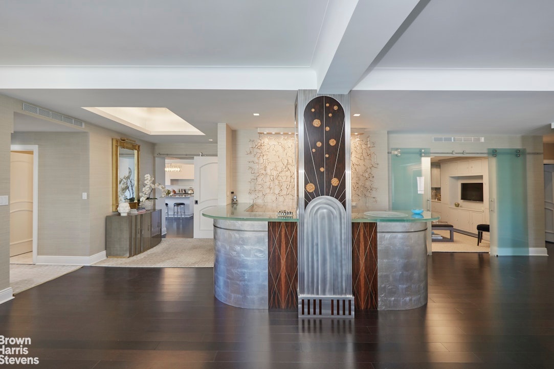 The expansive double living room and formal dining room enjoy three exposures, including views of Central Park, and are bathed in natural light throughout the day. Just off this gracious entertaining area, a den/TV room offers a warm and inviting retreat-perfect for relaxing at home. A custom built-in bar, as beautiful as it is functional, adds the perfect touch for entertaining guests.