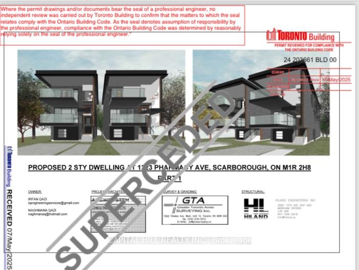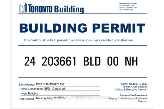 Description*** Builder Dream Ready to Build**Buy today and build tomorrow opportunity**Toronto's sought-after Wexford neighbourhood **No wait for city Approvals***1223A Pharmacy Ave - a severed parcel with dimensions of 27.5 ft x 150.0 ft must be sold together as Bundle Deal with 1223B Pharmacy Ave( can also be sold separately at an additional cost). Huge Private Backyard Backing Onto Gooderham Park.Walk To Wexford Collegiate School & Community Pool, Parkway Mall, Maryvale Parks, Transit, 401, Shopping! Currently Live-able existing 3 Bed 2 Washroom house.**Exceptional opportunity for builders and contractors to build your next project**The seller can provide a complete construction , including full project management, on request. Building permit and detailed drawings available upon request**Many Newly Built Million Dollar Homes in neighbourhood*