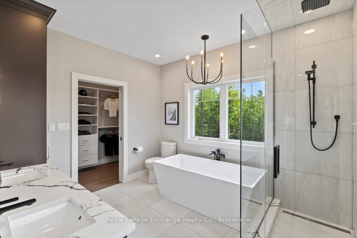 DescriptionYou've just found Grey County's best-kept secret - welcome to 150 Louise Creek Crescent, an exceptional executive bungalow in Forest Creek Estates. This prestigious country community offers a rare lifestyle of luxury and privacy featuring oversized lots, recreational lakes, swimming and fishing areas, and picturesque walking trails. Known for its tight-knit community, Forest Creek Estates brings together neighbours who value peace, nature, and elevated lifestyle living. Set on 2.8 acres with direct water frontage, this 2022 custom-built residence spans over 4,200 sq. ft. of finished living space surrounded by mature trees and panoramic views. A full-stone exterior, 10 ceilings, and expansive windows create an atmosphere of timeless elegance. At its heart lies a chef-inspired kitchen with custom cabinetry, quartz counters, walk-in pantry, and premium appliances. The open-concept living and dining area, anchored by a stone propane fireplace, flows effortlessly to the covered deck - ideal for entertaining or quiet evenings overlooking the wetlands. The primary suite offers serene views and a spa-like ensuite, while the fully finished walk-out lower level adds heated floors, extra bedrooms, a full bath, and in-law potential. Outdoor living shines with a covered deck, lower patio with hot tub potential, and a double garage with Trusscore paneling. Additional features include Ehtel Fibre internet, full water filtration (UV, iron/sulfur, RO), propane BBQ line, smart-home wiring, and a high-efficiency combi-boiler system. Located just a short drive from Hanover, this residence delivers an unmatched blend of luxury, community, and nature. Take the next step toward the lifestyle you've been dreaming of - your Forest Creek home awaits.Virtual Tour: https://www.youtube.com/embed/AssfmTmQtHgAmenities- Air Exchanger