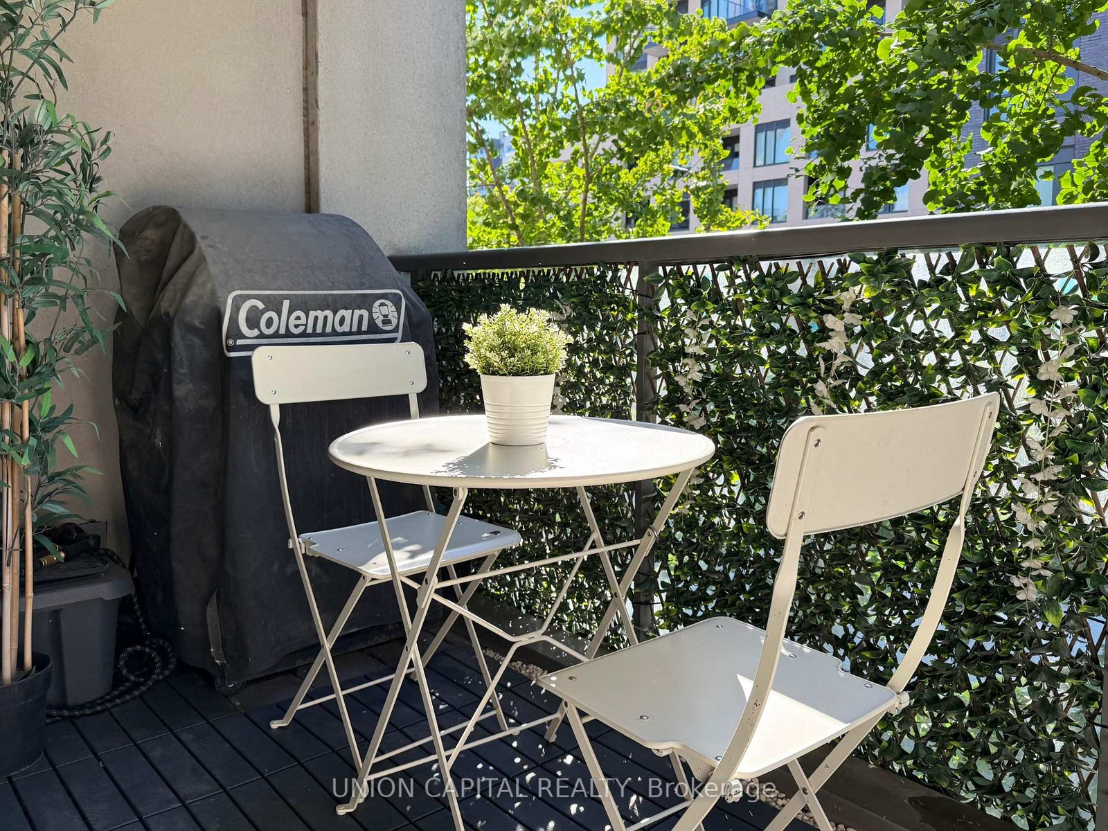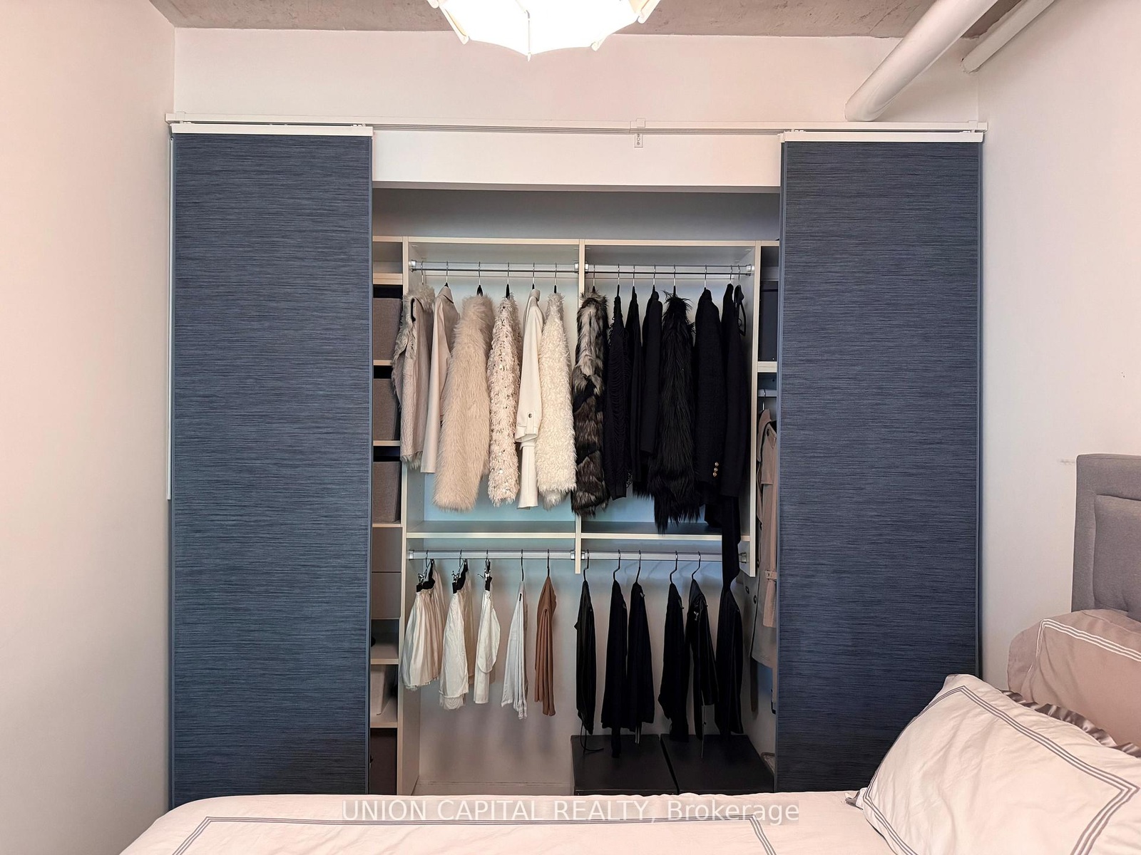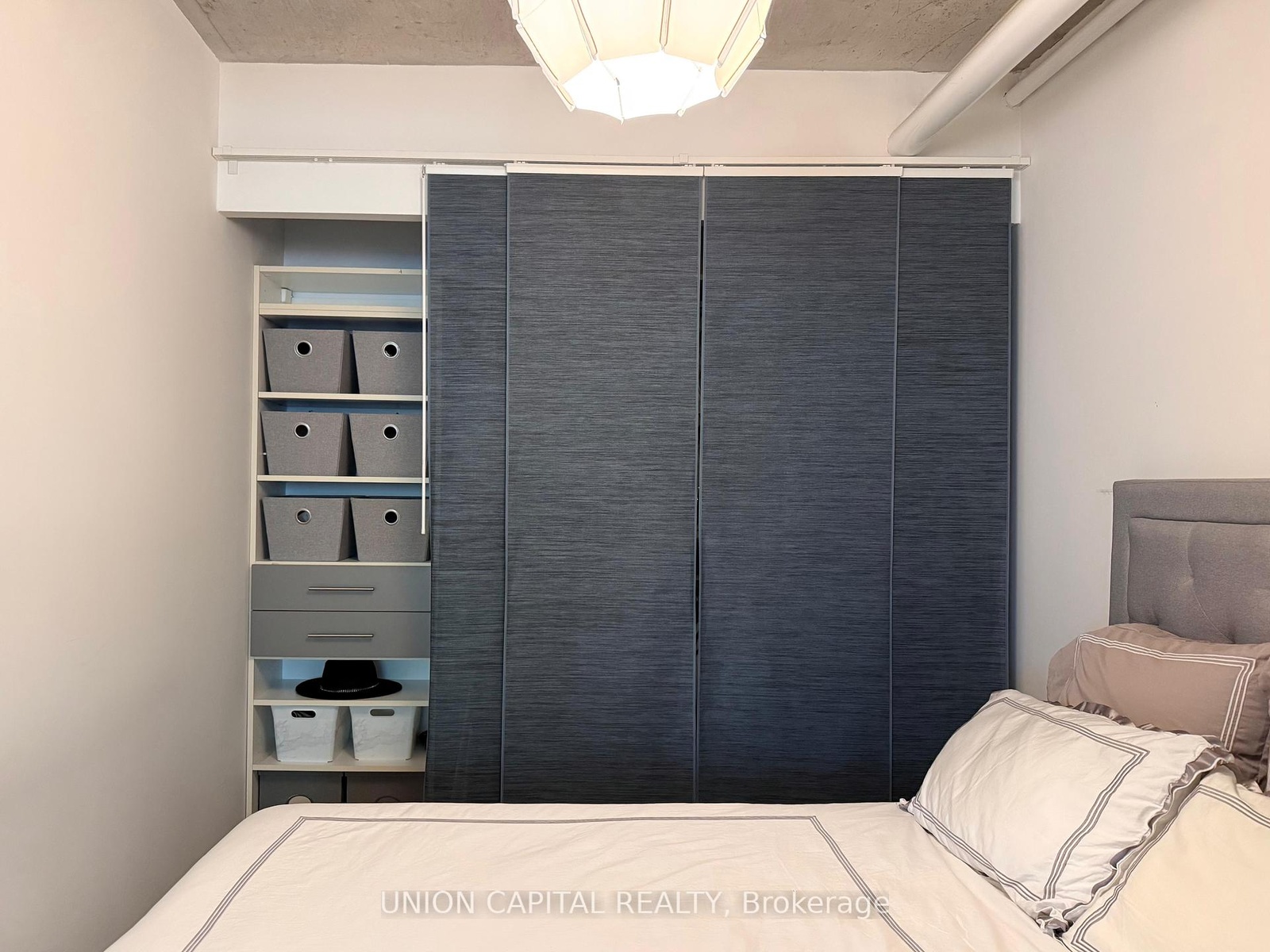 FULLY FURNISHED | Just pack your bags and enjoy this bright and stylish 1-bedroom loft that perfectly captures the best of downtown living in one of Toronto's most vibrant neighbourhoods. Step inside to discover exposed concrete ceilings and feature walls, industrial-style ductwork, and floor-to-ceiling windows that fill the space with natural light. Oversized double patio doors create a seamless connection to your spacious private terrace ideal for entertaining or relaxing. With a natural gas BBQ hookup and water connection, the terrace truly feels like an outdoor extension of your living space. Inside, you'll find gas cooking, built-in closet organizers, and an open-concept layout. Tucked away in a quiet boutique building just off Queen West, you're steps from Loblaws, Joe Fresh, Winners, LCBO, Waterworks, The Well and an endless selection of cafes, restaurants, and nightlife. Enjoy weekend strolls to Trinity Bellwood's Park, or explore nearby Ossington and King West. With a 100 Walk Score, 100 Transit Score, and 99 Bike Score, convenience truly doesn't get better than this.