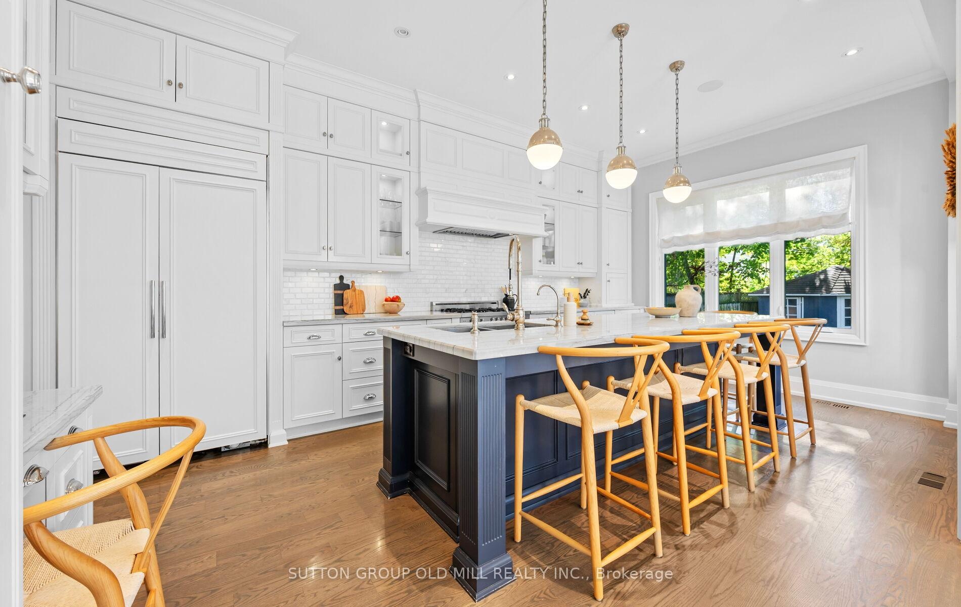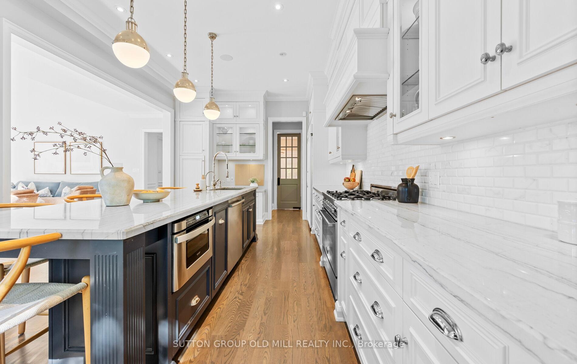 Welcome to Port Credit Village! Nestled in the heart of this vibrant community, this stunning home offers the perfect blend of elegance and convenience. Just a short stroll from the lakefront, parks, shopping restaurants and Mentor College .Downtown is easily accessible with a 10 minute walk to the GO station and close proximity to the QEW, making this an ideal location for commuters. Boasting over 5,700 square feet of elegantly finished living space, this home exudes coastal charm with bespoke upgrades throughout. Every detail has been crafted with exceptional design consultation, ensuring no expense was spared in creating a luxurious living experience.The main floor office has been thoughtfully designed to make working from home a pleasure. With ample windows, custom built-ins, and custom doors, it enhances productivity and comfort, creating a perfect space for remote work. The custom kitchen is a chefs dream, featuring a gas range, oversized fridge, and a spacious walk-in pantry equipped with extra drinks fridges and electrical outlets to accommodate all your countertop appliances.Entertaining is effortless with the Butler's Area, providing ample space and amenities for hosting gatherings. The main level impresses with 10-foot ceilings, while the upper and lower levels feature 9-foot ceilings, creating an open and airy atmosphere that enhances the sense of space.The double garage is equipped with a sleek epoxy floor, wall racking, remotes, and an entrance to the house through the oversized mudroom. With five designer bathrooms, a second-floor laundry room, and hardwood floors throughout, this residence is a must-see, offering so much more than a builder-basic home. With its unique features and prime location, this home promises a lifestyle of comfort and luxury.