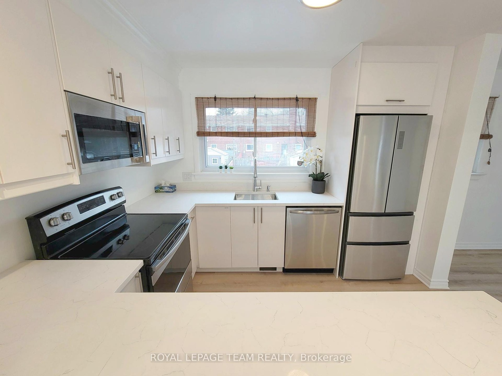 DescriptionWelcome to 852 Cummings Avenue, a spacious 3-bedroom freehold townhome in the heart of the city, fully renovated in 2022 with over $80,000 in upgrades. Perfect for homeowners or investors seeking a cash flow positive property, this home showcases brand new flooring, modern pot lights, updated light fixtures, and elegant zebra blind window treatments throughout. The main level features a bright and open living and dining area leading to a modern kitchen with a stunning quartz waterfall island, stainless steel appliances, and plenty of cabinets and storage. Step outside to your private backyard with a large deck, shed, and back access to parking, ideal for entertaining or relaxing. The second floor offers three spacious and sun-filled bedrooms, a 4-piece full bathroom, and a large linen closet, while the fully finished basement includes a large family room, 3-piece bathroom, and laundry/storage area, providing endless possibilities for recreation or extra living space. Centrally located in the Manor Park School District, close to parks, St. Laurent Shopping Centre, recreational complexes, groceries, and with easy access to Highway 417, only 12 minutes to downtown. Association fee of $94.88/month. Parking spot 163. Thoughtfully updated and move-in ready, this home combines modern design, quality finishes, and a prime location, truly a must-see for both buyers and investors! Currently tenanted on a month-to-month basis, offering immediate rental income. Pictures were taken prior to the current tenancy.Amenities- Carpet Free