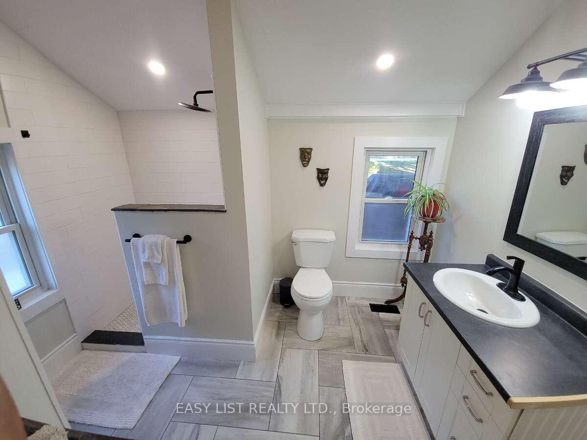 For more info on this property, please click the Brochure button. Beautifully renovated yellow-brick bungalow on a corner lot in the heart of town - just a short walk to the grocery store, LCBO, banks, and the downtown core. At the end of the street you'll find the arena, sports fields, tennis court, elementary and high schools, a skate park, and walking trails. The property is framed by six mature trees for shade and privacy, with perimeter gardens finished in black chip and a 7'8' steel garden shed. A freshly re-sealed deck extends your living space outdoors, offering plenty of room for dining and lounging. Inside, the home was fully gutted in 2021 and professionally finished, marrying warm classic details with modern touches. High ceilings, wainscoting, wood beams, and an exposed chimney highlight the home's original charm, while all-new matching Samsung black stainless steel appliances - counter-depth fridge, gas range, and dishwasher - anchor the kitchen. Main-floor laundry adds convenience. Layout: 2+1 bedrooms, 2 full bathrooms, open living/dining/kitchen, and a functional mudroom. Beautiful home!