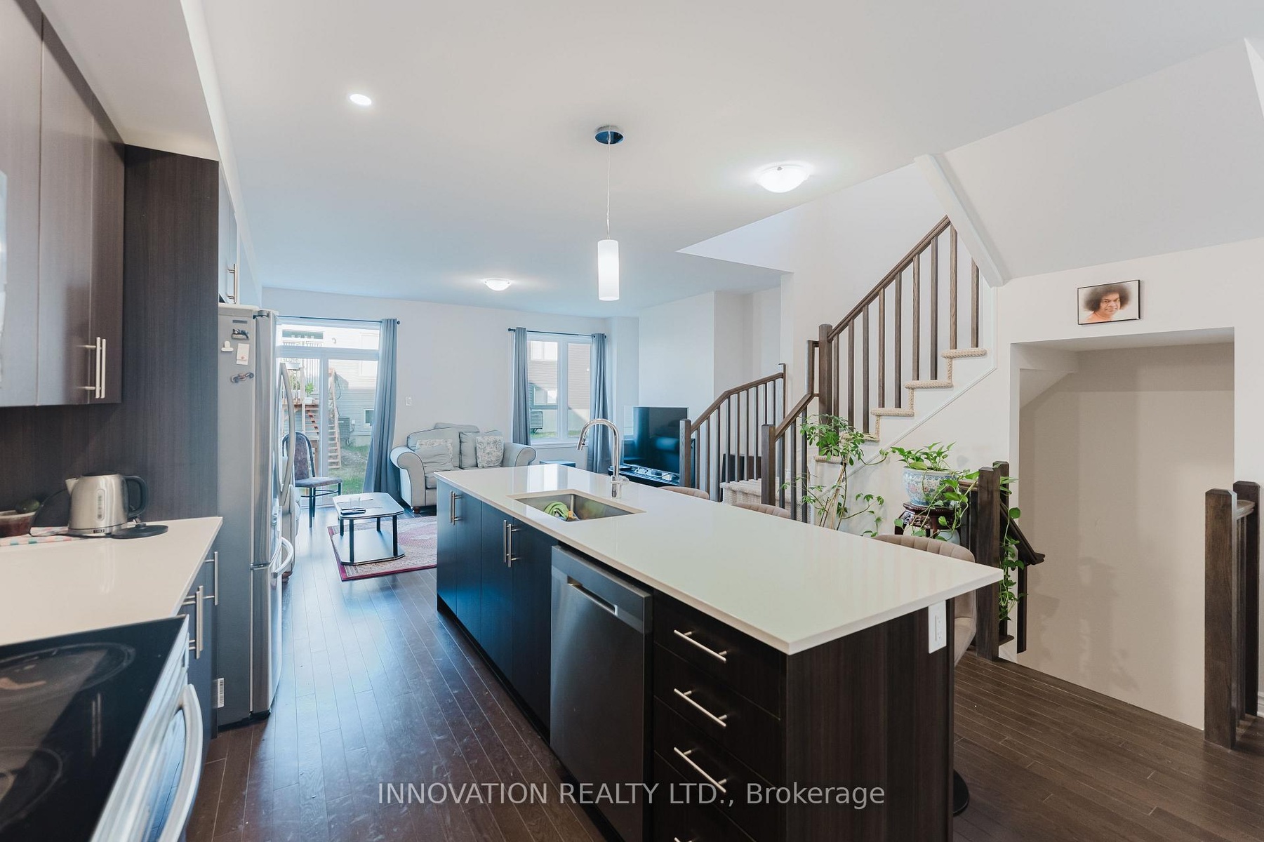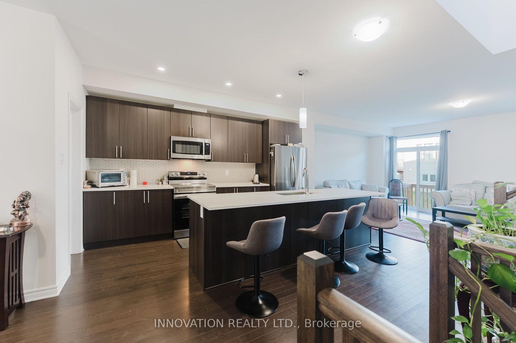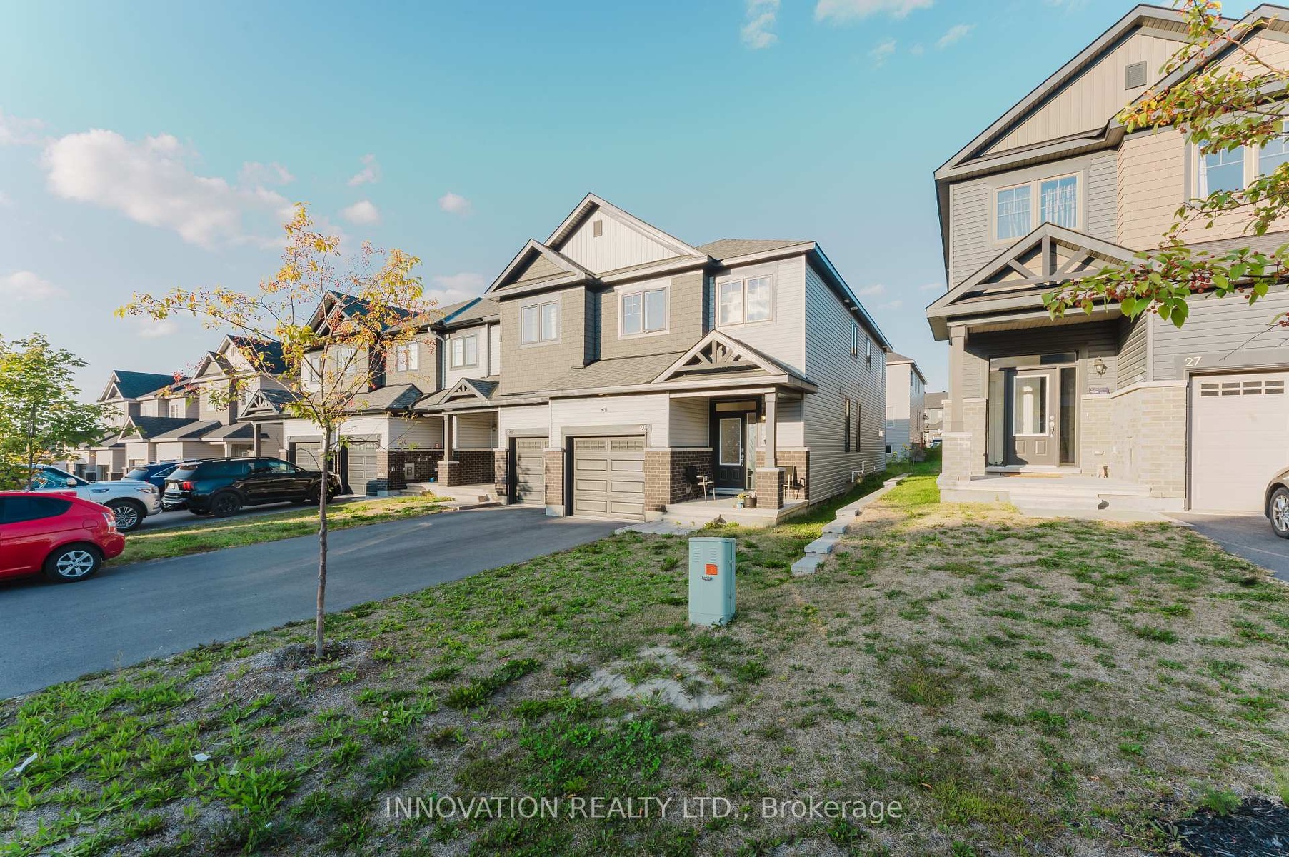 Welcome to this 2023-built brand new upgraded end-unit townhouse with approximately 2,228 sqft. This bright home offers an open-concept main level with a spacious living room featuring hardwood throughout, a gorgeous upgraded kitchen with walk-in pantry, fireplace, breakfast bar, quartz countertops with backsplash, a separate dining area, and many more upgrades. The foyer includes an entryway bench and a large closet.The home features a spacious one-car garage with additional storage space (5' x 4'5") plus two outside parking spaces. The second level includes a large primary suite with an upgraded en-suite bath and walk-in closet, along with three additional spacious bedrooms, a laundry room, and another full bathroom.The lower level offers a finished recreation room, a rough-in for a future bathroom, and plenty of extra space. The house is ideal size for a growing family or first-time buyers.