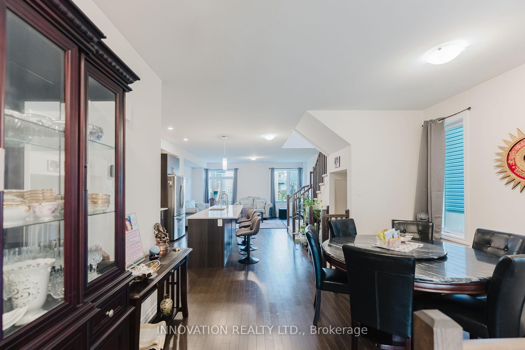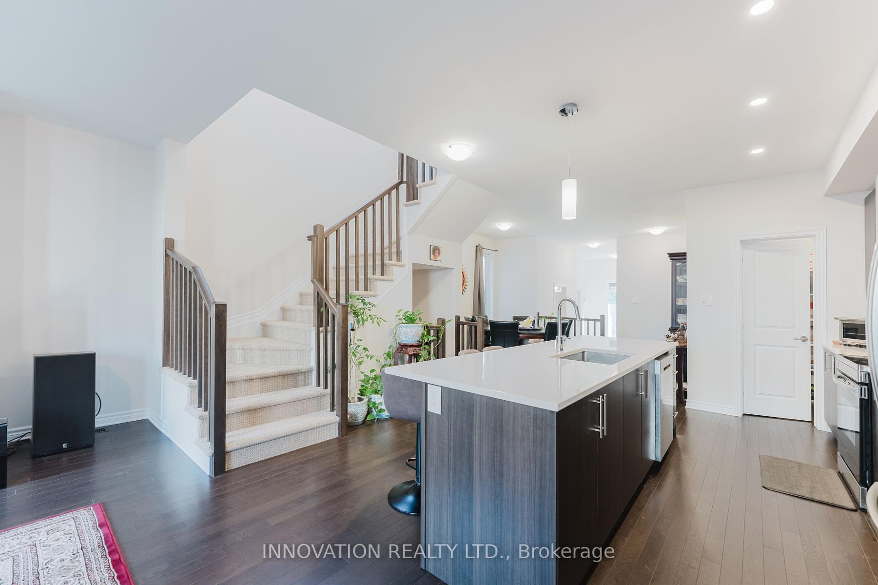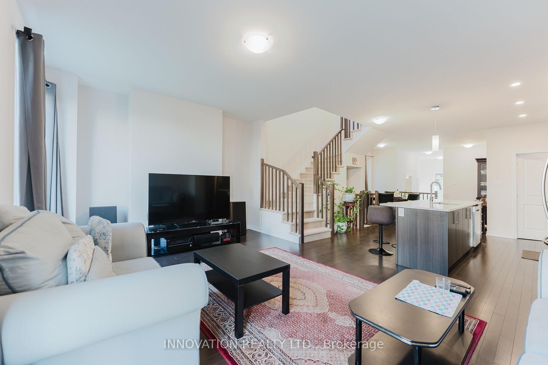 Welcome to this 2023-built brand new upgraded end-unit townhouse with approximately 2,228 sqft. This bright home offers an open-concept main level with a spacious living room featuring hardwood throughout, a gorgeous upgraded kitchen with walk-in pantry, fireplace, breakfast bar, quartz countertops with backsplash, a separate dining area, and many more upgrades. The foyer includes an entryway bench and a large closet.The home features a spacious one-car garage with additional storage space (5' x 4'5") plus two outside parking spaces. The second level includes a large primary suite with an upgraded en-suite bath and walk-in closet, along with three additional spacious bedrooms, a laundry room, and another full bathroom.The lower level offers a finished recreation room, a rough-in for a future bathroom, and plenty of extra space. The house is ideal size for a growing family or first-time buyers.