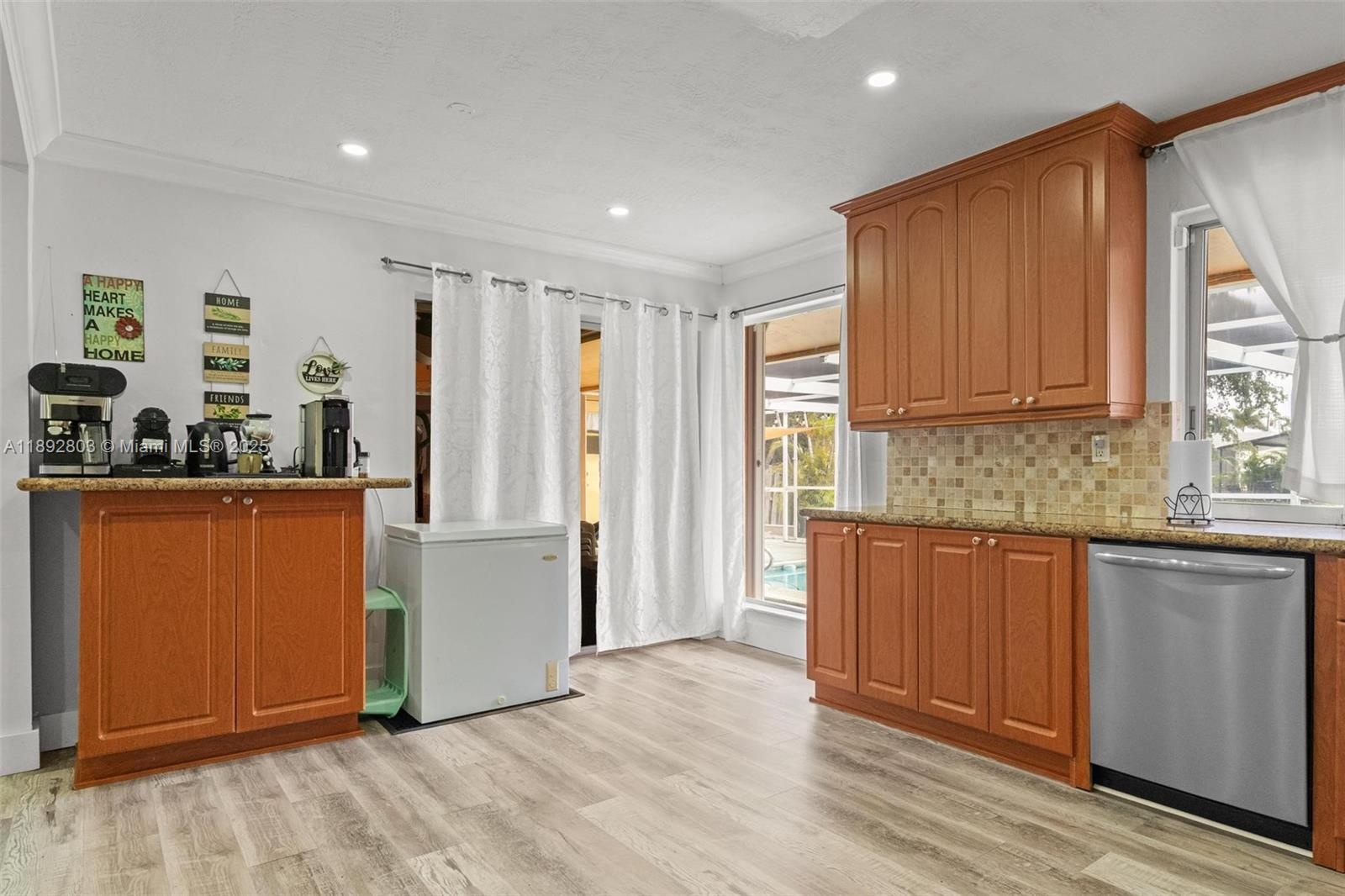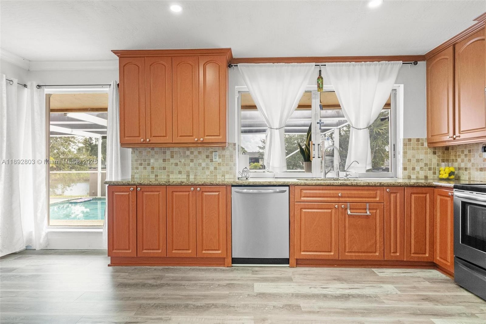 Welcome to your waterfront oasis in Sunrise Golf Village.Do not this opportunity sellers are willing to credit $6,000 towards closings costs beautifully maintained 3-bedroom, 2 bathrooms with skylights. Enjoy a private pool, spacious deck & patio ...perfect for entertaining or relaxing by the water. Interior features include a bright, open layout with ceramic tile flooring throughout, updated kitchen appliances, and a converted garage for extra living space, GAME ROOM, or for your lovely guest . Accordion shutters, located in a quiet neighborhood with a circular driveway, just a minute from schools, parks, shopping, and dining. Newer roof, A/C, floor, and water heater offer peace of mind. OK to lease . the potencial of this house is unbelievable. NO HOA ..WOW!