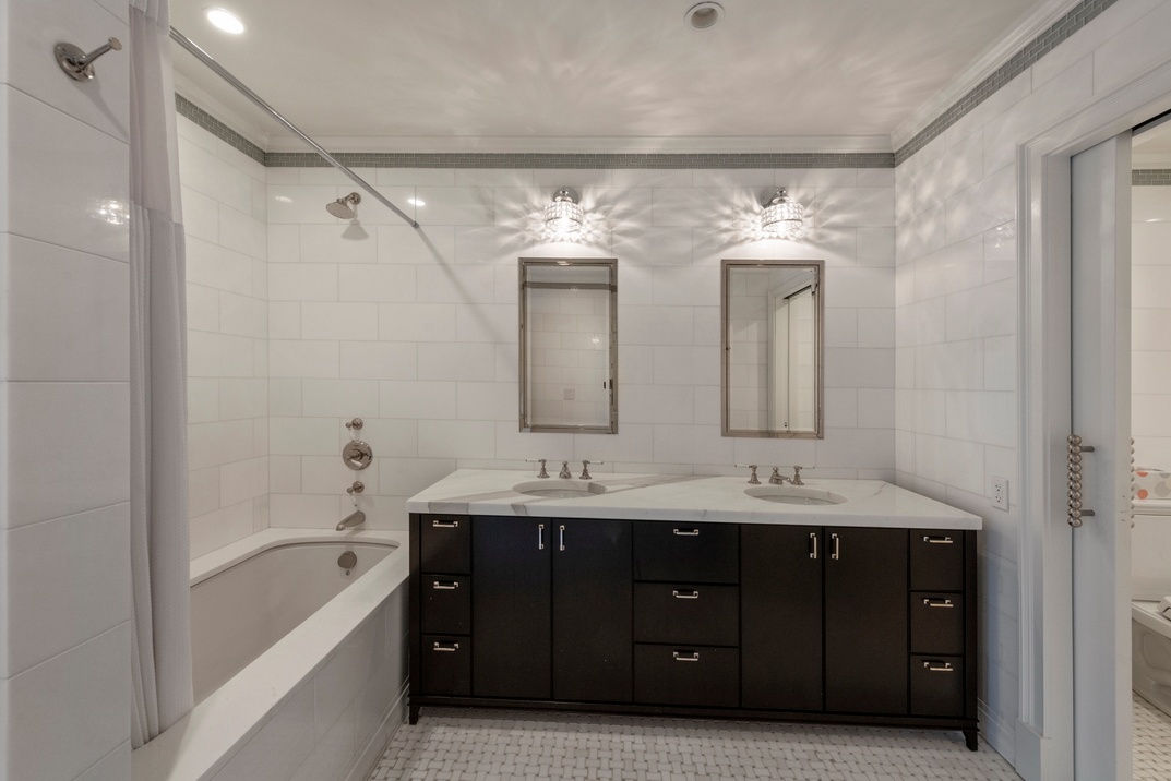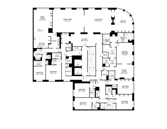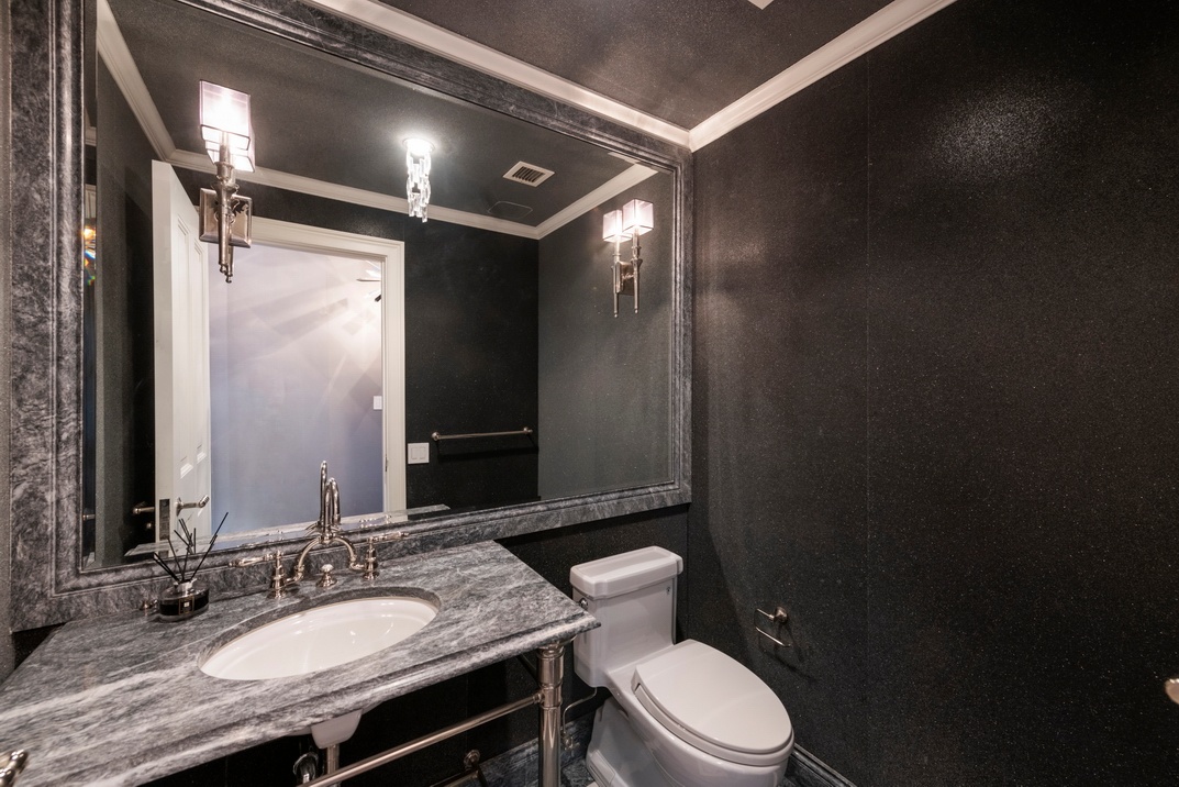 The master suite is nearly an apartment unto itself. It boasts a spacious sitting room, a cavernous walk-through closet with built-in shelving, and his-and-hers en-suite bathrooms. Each of the remaining six bedrooms has private closet space and easy access to an immaculate full bathroom.