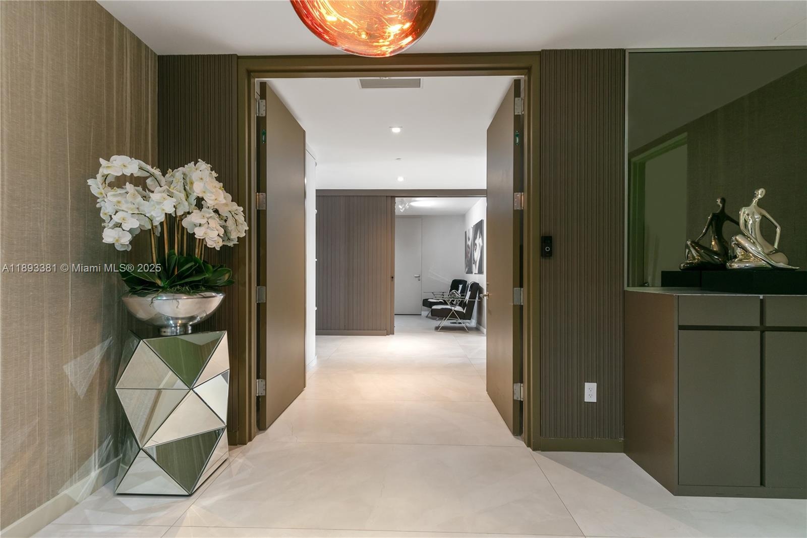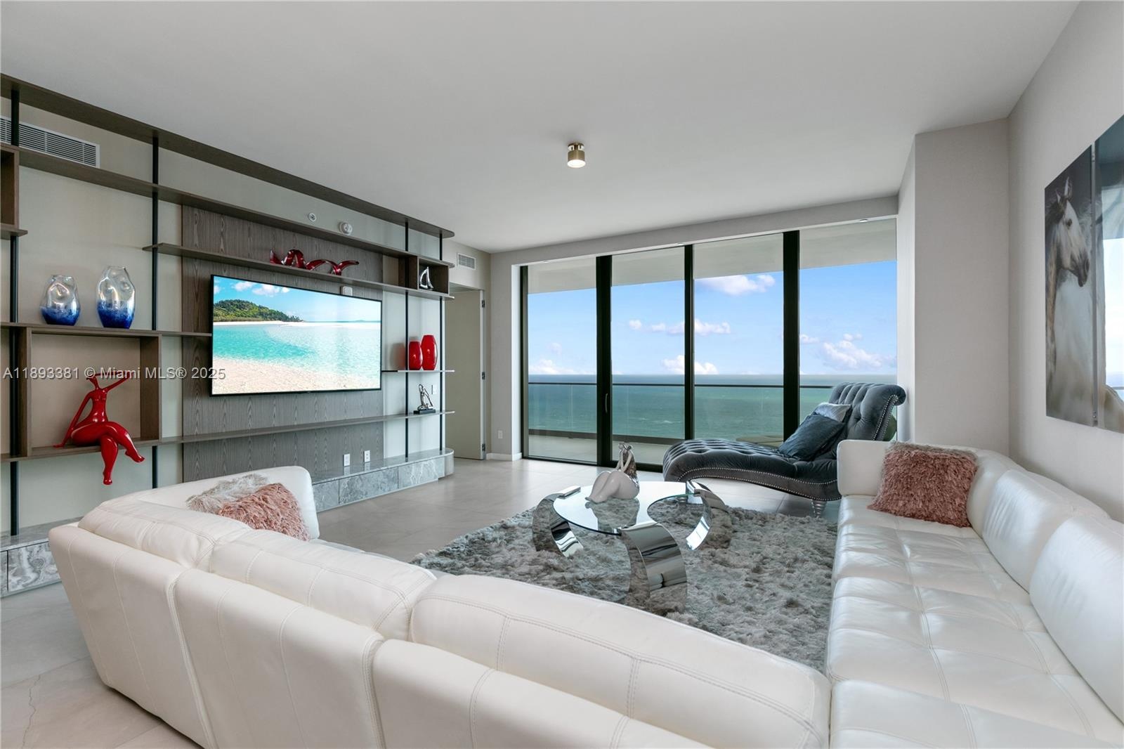 Experience the pinnacle of luxury in this 4-bd 5.5-bth plus Den masterpiece on the 34th floor at the Armani Casa! This impeccably immaculate and professionally decorated flow-through residence with custom millwork and quality finished designer closets offers the ultimate in luxury. Breathtaking intracoastal and ocean views from an expansive balcony and city skyline views from the second equally expansive private balcony. Elegant floor-to-ceiling glass windows and a private high-speed elevator provide luxury and convenience. The gourmet kitchen boasts custom European cabinetry with an island, Sub-Zero refrigerator, Wolf oven, wine cooler; all state-of-the-art appliances. Enjoy an amenity-rich lifestyle with over 35,000 sq ft of premier features: private oceanfront restaurant, bar, cigar room, game room, fitness center, spa, heated pool, jacuzzi, dog park, beach service, cinema & 24-hour valet/concierge & security. Interior SF 3176 SF Balconies 886 SF Total SF 4062, per Developer Floor Plan.