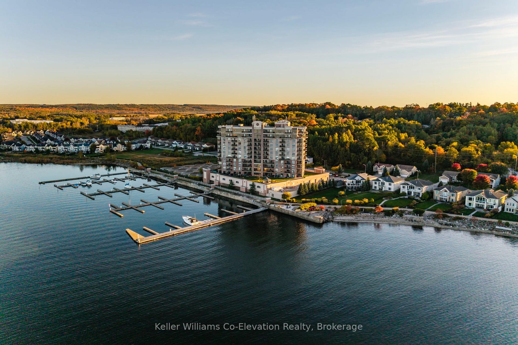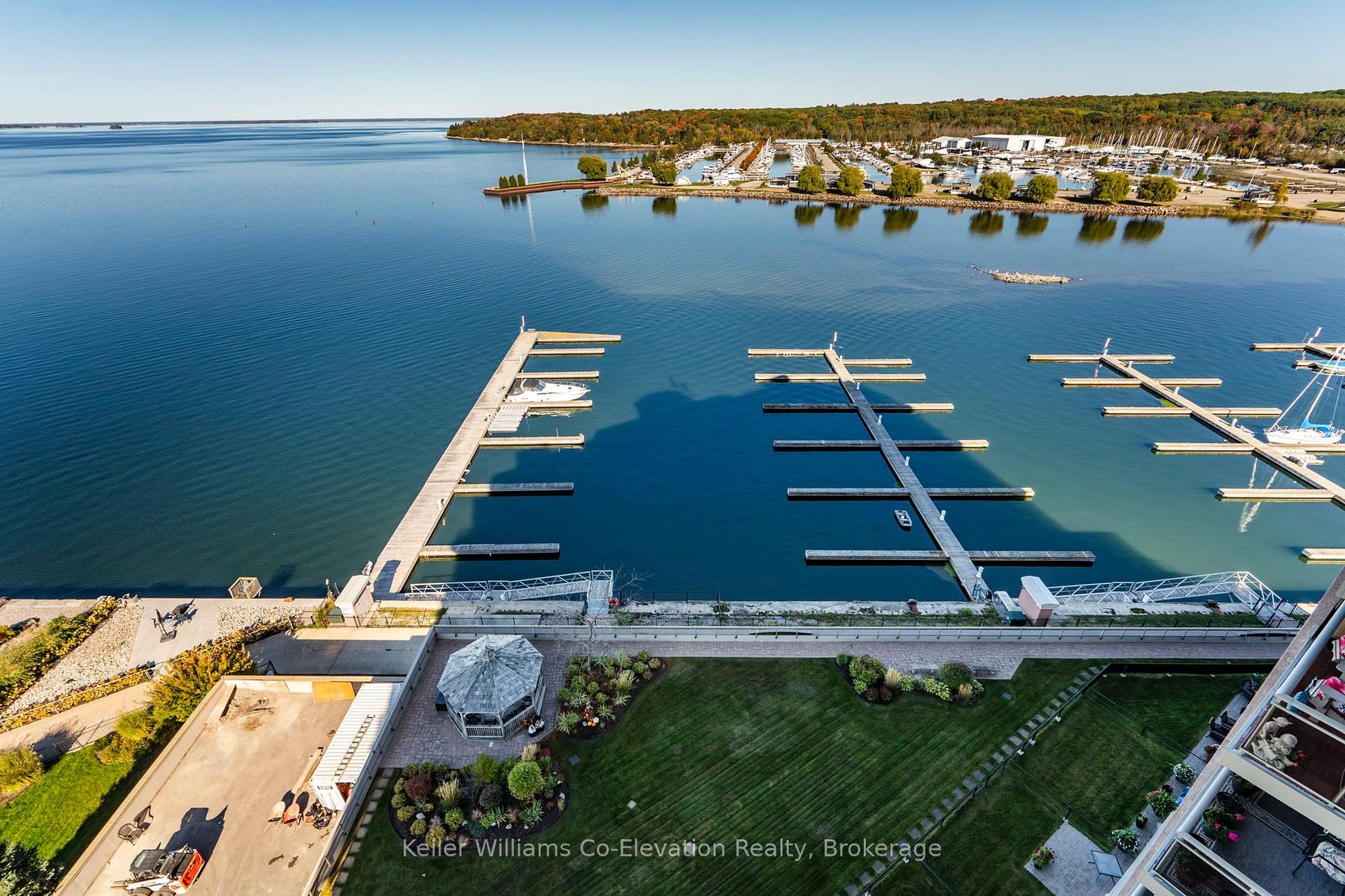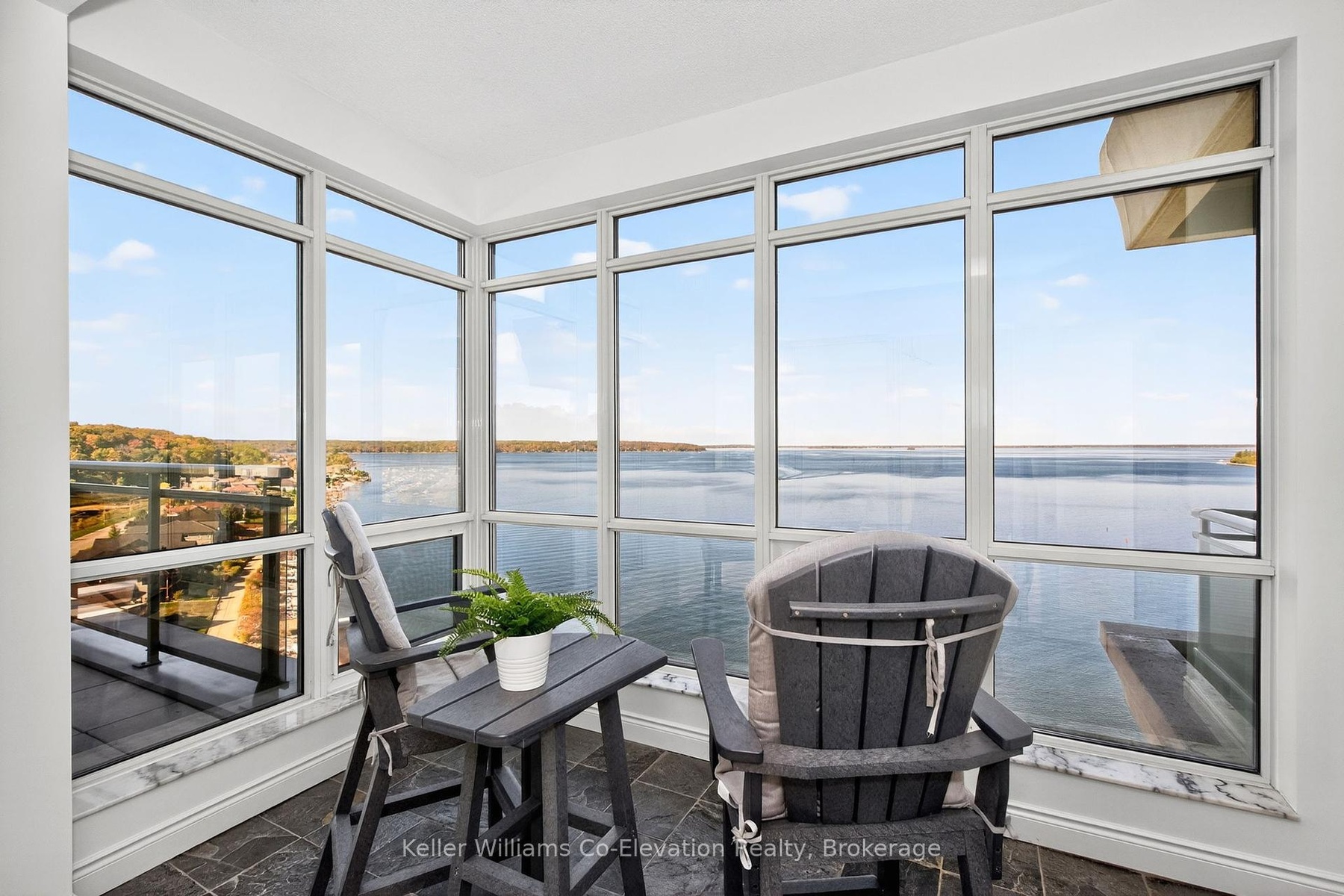 Stunningly Beautiful Panoramic Views of Midland Harbour can be Yours 365 Days of the Year! This Corner Unit has 10' High Ceilings which Combined with Multiple Walkouts & Floor to Ceiling Windows take Full Advantage of the Breathtaking Water Views, right out to the Channel, from all Bedrooms & Living Areas of this Home or Walk Out to one of the Balconies which total over 600 Sq.Ft. for Outdoor Living Space or Summer Parties with a Large # of Guests. This Spectacular Condo Features: 3 Bedrooms, all with Ensuite Baths; Open Concept Living w Ample Space to Accommodate Multiple Living Areas, Dining Room, & Custom Kitchen + a Convenient Laundry Room tucked behind the Kitchen and Heated Sunroom when it is a bit too Chilly to go outside. For those who love to Cook, the Expansive Granite Counters & Cabinets + Professional Grade Stainless Steel Appliances offer Plenty of Room to Create Your Own Gourmet Dinners for Get-Togethers w/ Friends & Family. Retreat to your 532 Sq.Ft. Primary Suite where you will still enjoy Fabulous Views while relaxing in your own Personal Space and taking full advantage of your own Jet Tub or Spacious Shower. The Built-in Organization of the Walk-in Closet is just one more bonus you will not want to live without as well as Numerous Other Storage Opportunities within the Unit and 2 Extremely Large Storage Lockers on Level A of the Building as well as your own Private Double Garage. Tiffin Pier also offers an Abundance of Amenities to take advantage of including: a Lovely Gazebo & Garden Area; a Gym, Endless Pool, Sauna, Hot Tub, a Guest Suite Visitors can Rent for up to 1 Week; & Boat Slips are also available for lease. The Rotary Trail passes right out front where you can Bike and Walk for Miles - If you would like to Boost your Social Life, Join in with a Curated List of Monthly Activities or Enjoy Peace & Relaxation within your own Space. If this sounds like the Lifestyle for you, don't wait or you might miss this Incredible Opportunity..