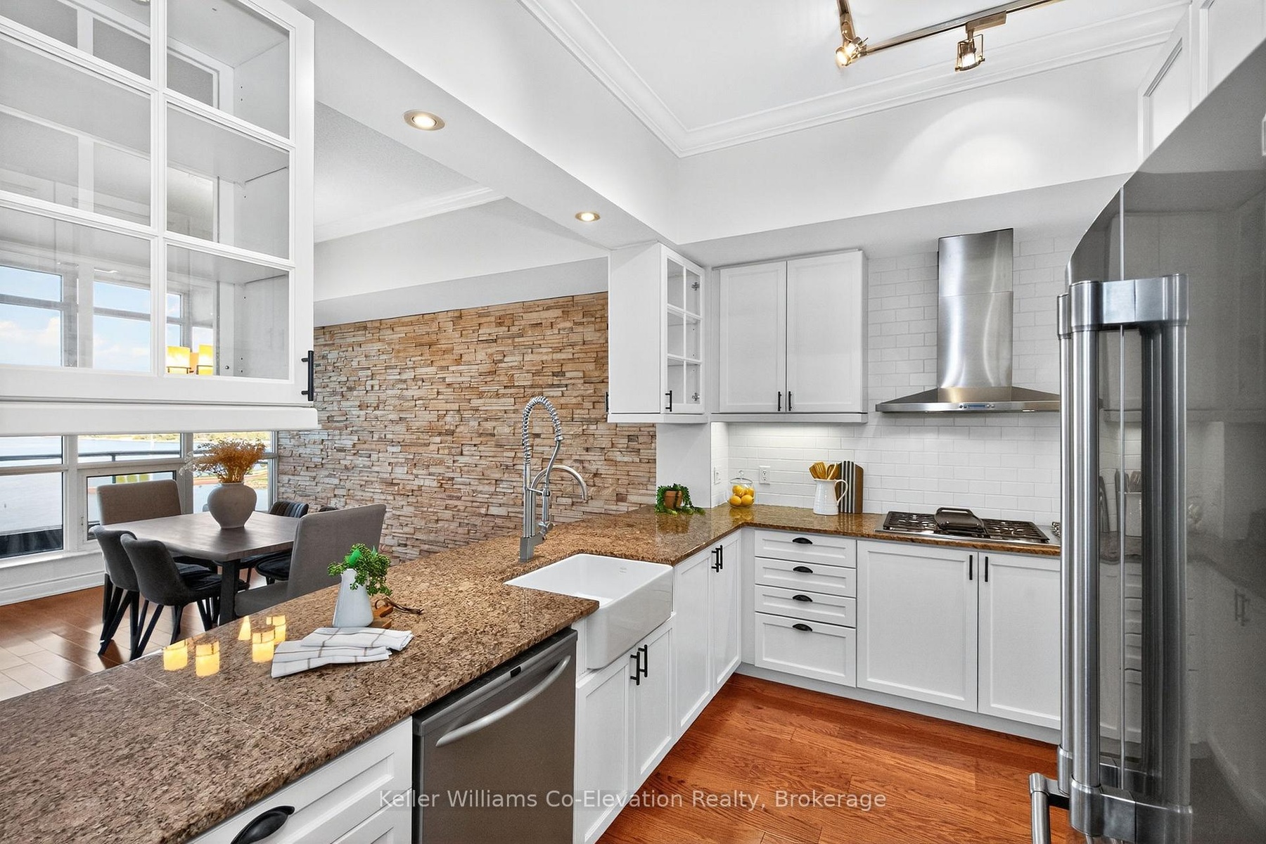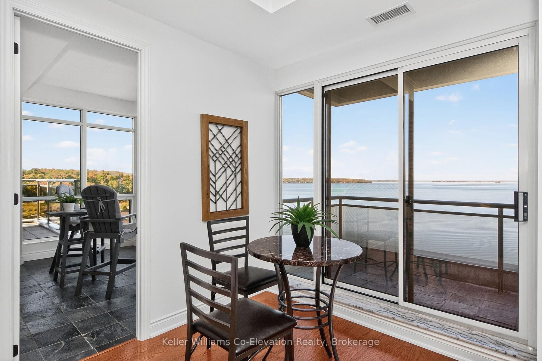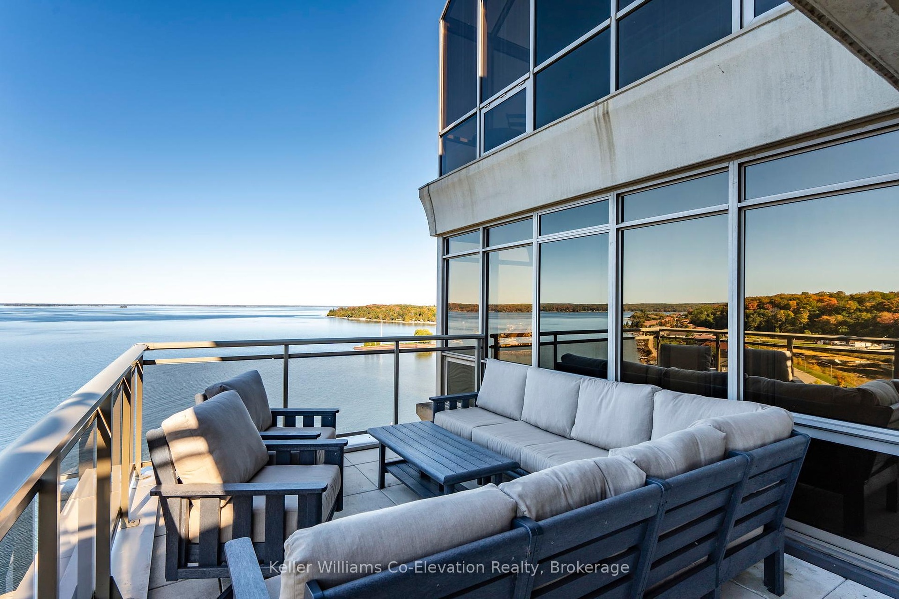 Stunningly Beautiful Panoramic Views of Midland Harbour can be Yours 365 Days of the Year! This Corner Unit has 10' High Ceilings which Combined with Multiple Walkouts & Floor to Ceiling Windows take Full Advantage of the Breathtaking Water Views, right out to the Channel, from all Bedrooms & Living Areas of this Home or Walk Out to one of the Balconies which total over 600 Sq.Ft. for Outdoor Living Space or Summer Parties with a Large # of Guests. This Spectacular Condo Features: 3 Bedrooms, all with Ensuite Baths; Open Concept Living w Ample Space to Accommodate Multiple Living Areas, Dining Room, & Custom Kitchen + a Convenient Laundry Room tucked behind the Kitchen and Heated Sunroom when it is a bit too Chilly to go outside. For those who love to Cook, the Expansive Granite Counters & Cabinets + Professional Grade Stainless Steel Appliances offer Plenty of Room to Create Your Own Gourmet Dinners for Get-Togethers w/ Friends & Family. Retreat to your 532 Sq.Ft. Primary Suite where you will still enjoy Fabulous Views while relaxing in your own Personal Space and taking full advantage of your own Jet Tub or Spacious Shower. The Built-in Organization of the Walk-in Closet is just one more bonus you will not want to live without as well as Numerous Other Storage Opportunities within the Unit and 2 Extremely Large Storage Lockers on Level A of the Building as well as your own Private Double Garage. Tiffin Pier also offers an Abundance of Amenities to take advantage of including: a Lovely Gazebo & Garden Area; a Gym, Endless Pool, Sauna, Hot Tub, a Guest Suite Visitors can Rent for up to 1 Week; & Boat Slips are also available for lease. The Rotary Trail passes right out front where you can Bike and Walk for Miles - If you would like to Boost your Social Life, Join in with a Curated List of Monthly Activities or Enjoy Peace & Relaxation within your own Space. If this sounds like the Lifestyle for you, don't wait or you might miss this Incredible Opportunity..