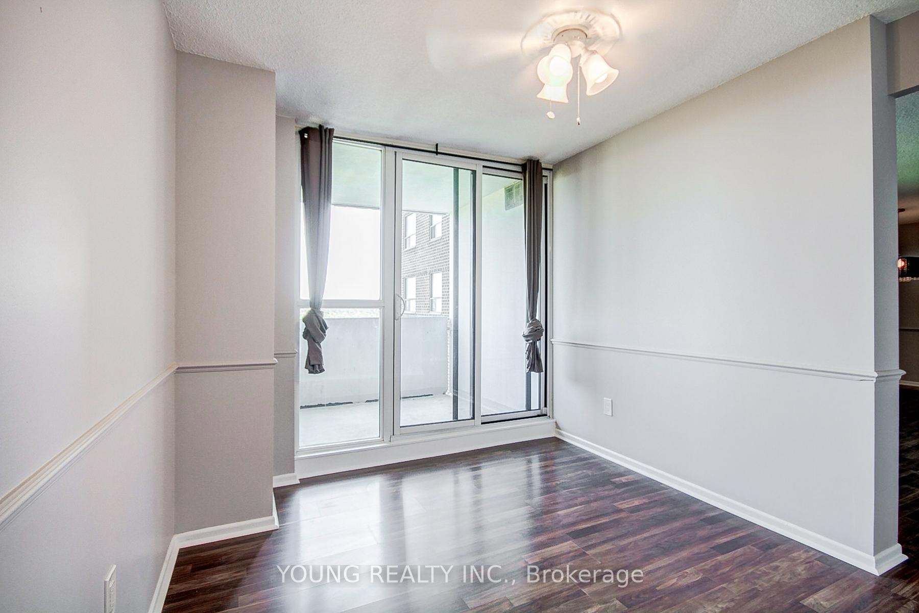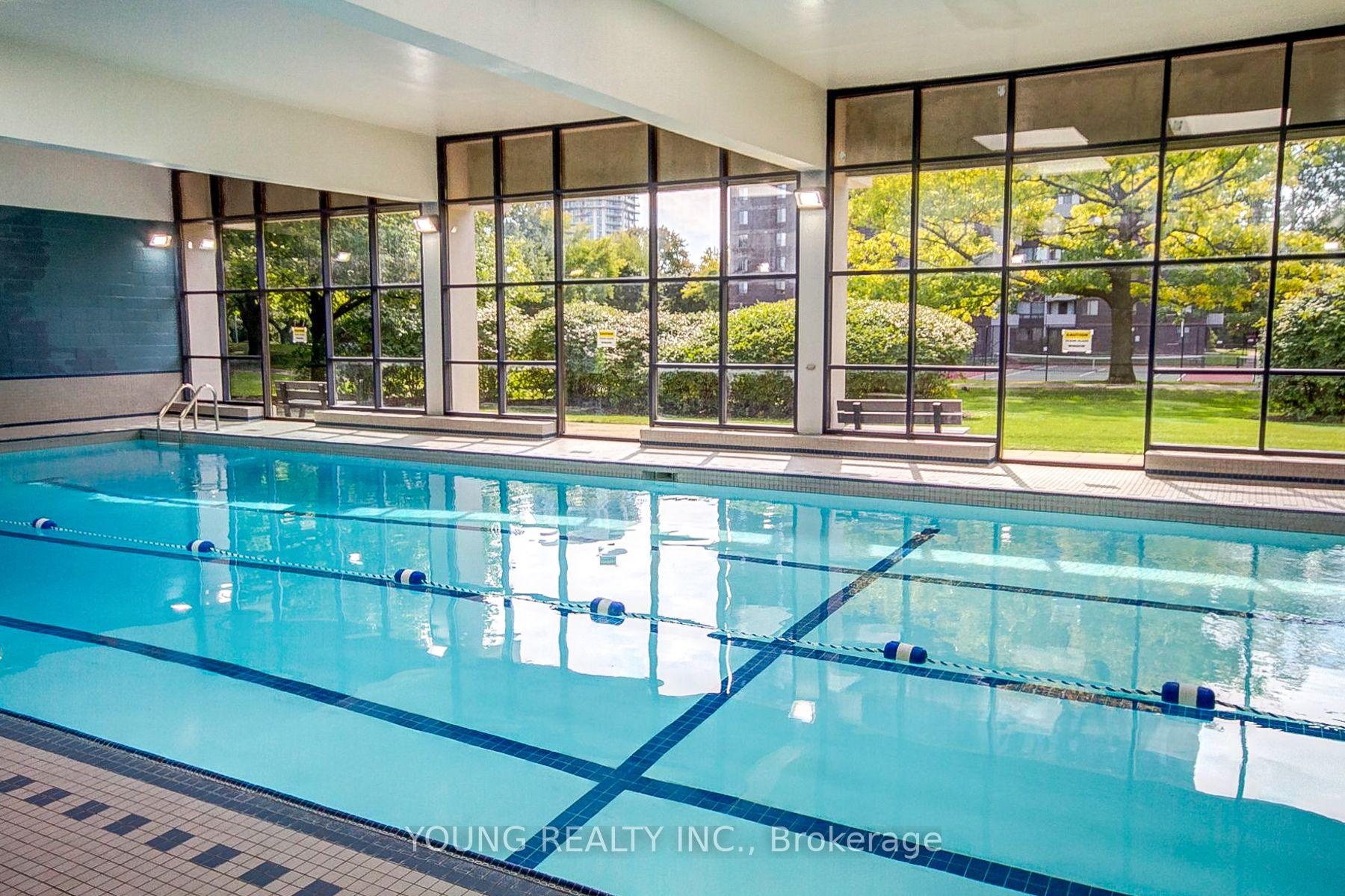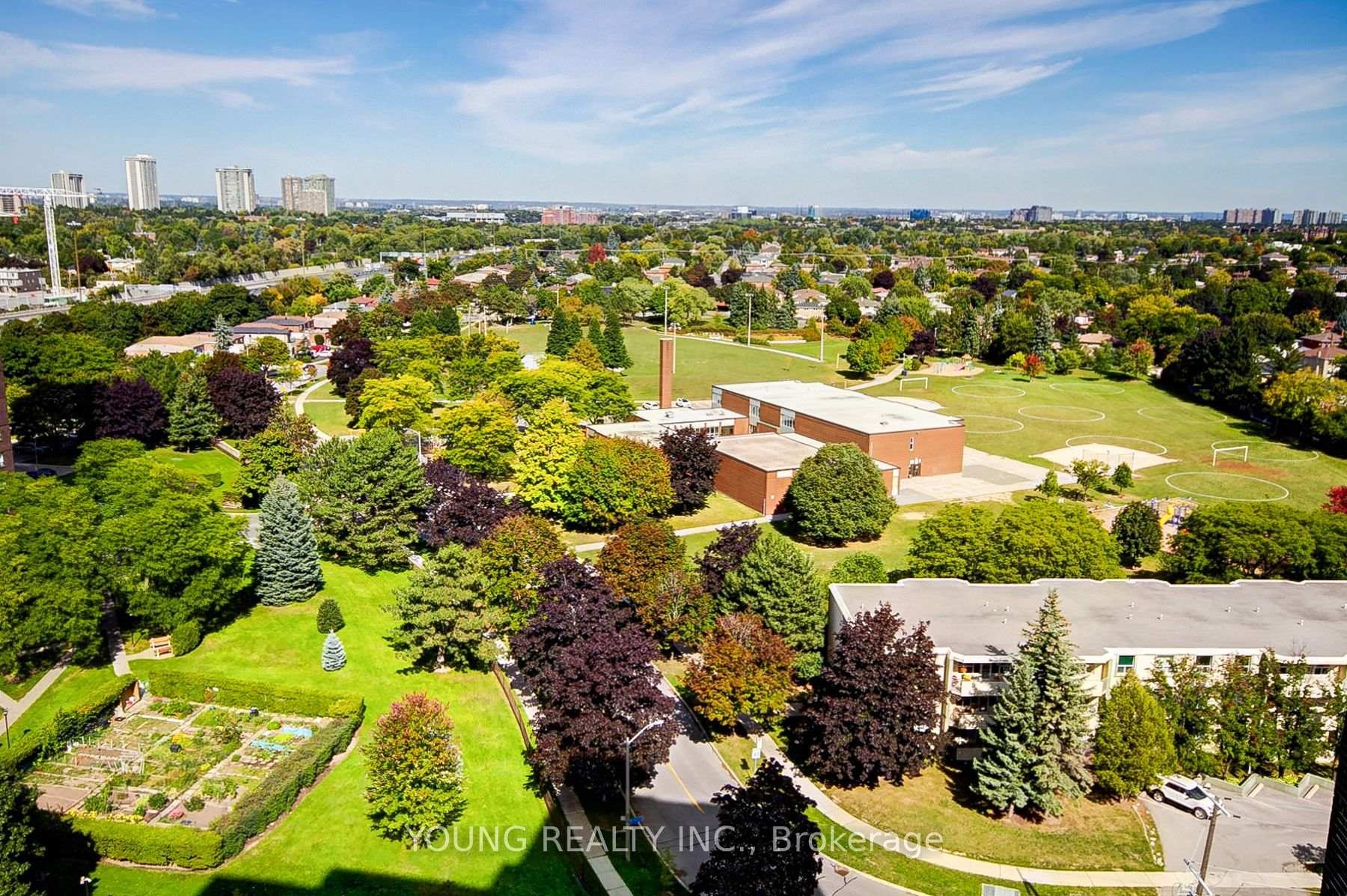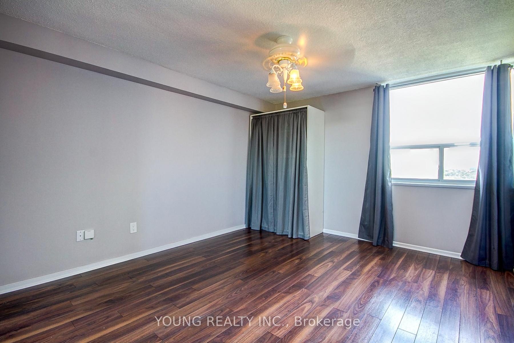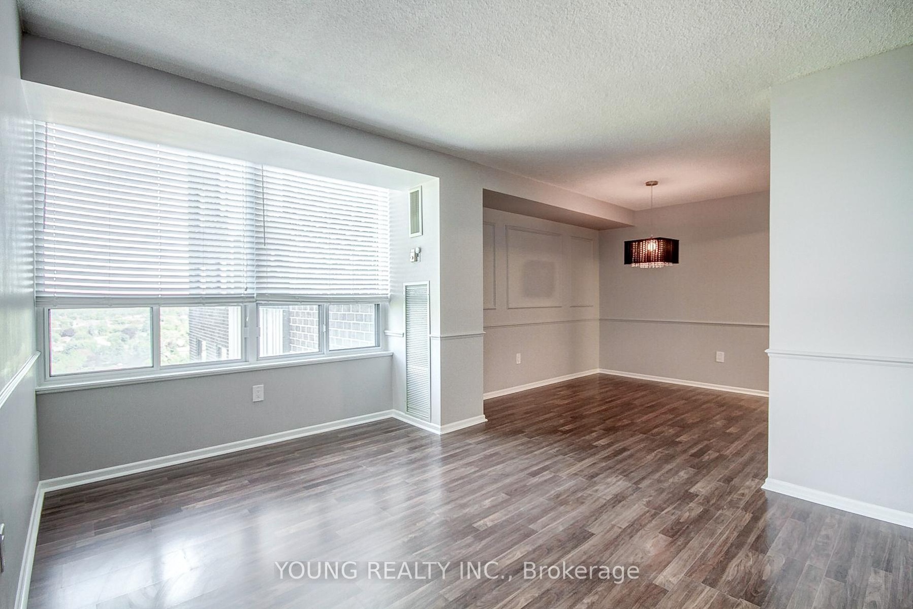 Spacious and bright suite in a highly sought-after building surrounded by lush, park-like grounds. Enjoy expansive city and green views from this open-concept layout featuring newer laminate flooring throughout and generous storage space. Unbeatable location just steps to shopping, local transit, and the subway, with every amenity close at hand. Two indoor (tandem) parking spots and all utilities (except internet) included!