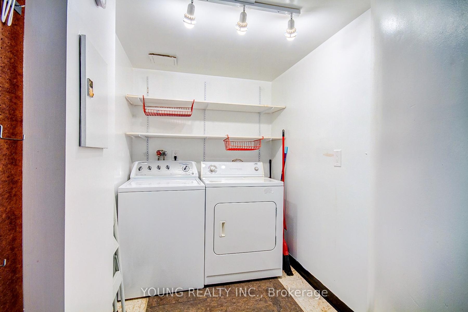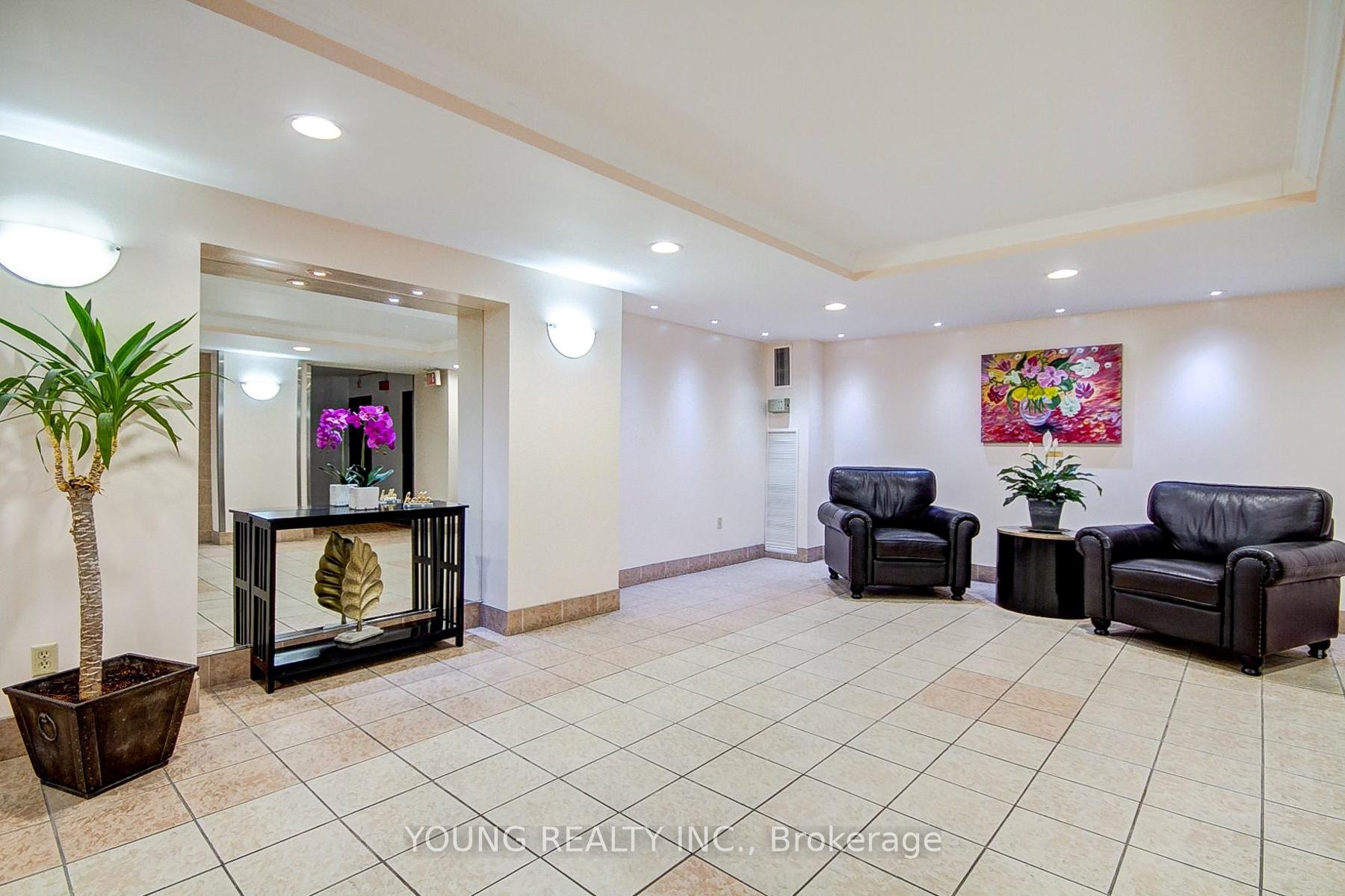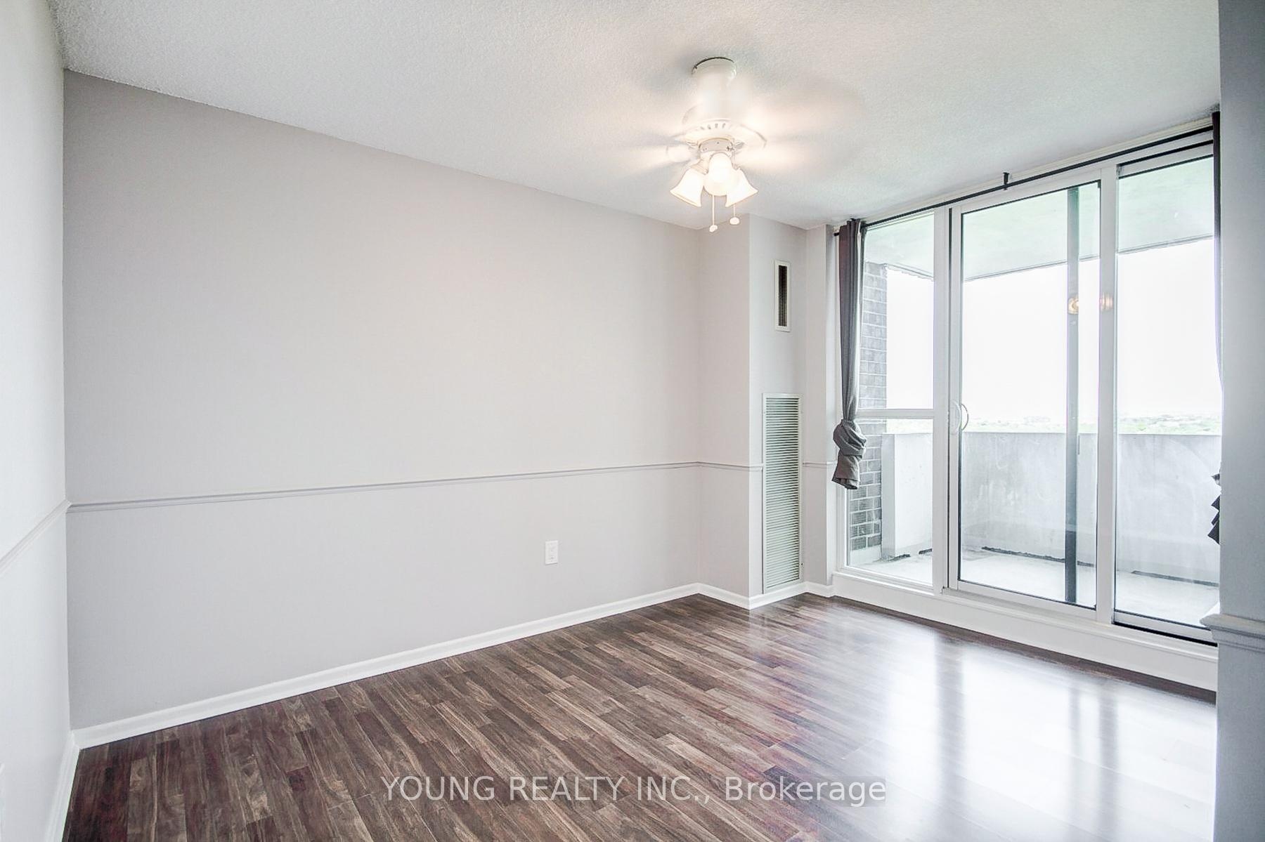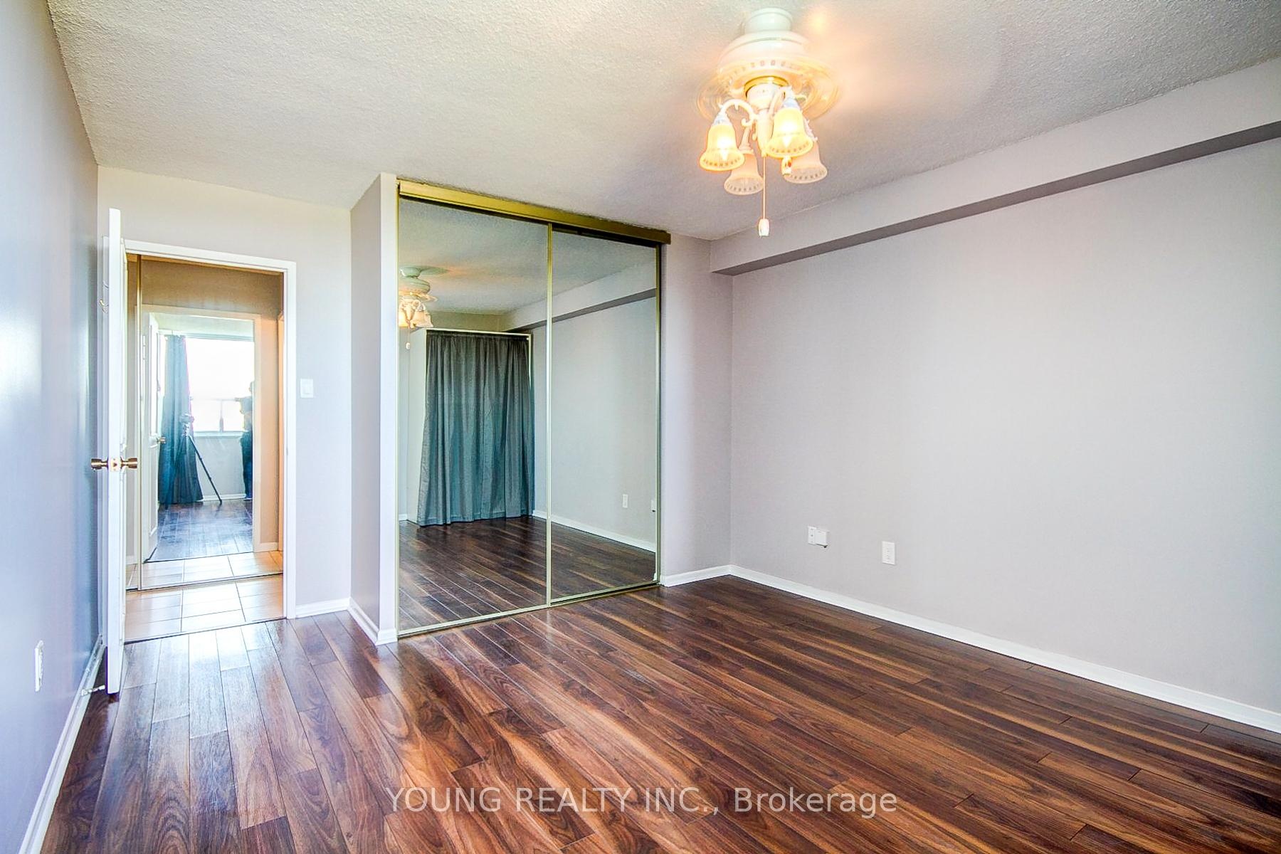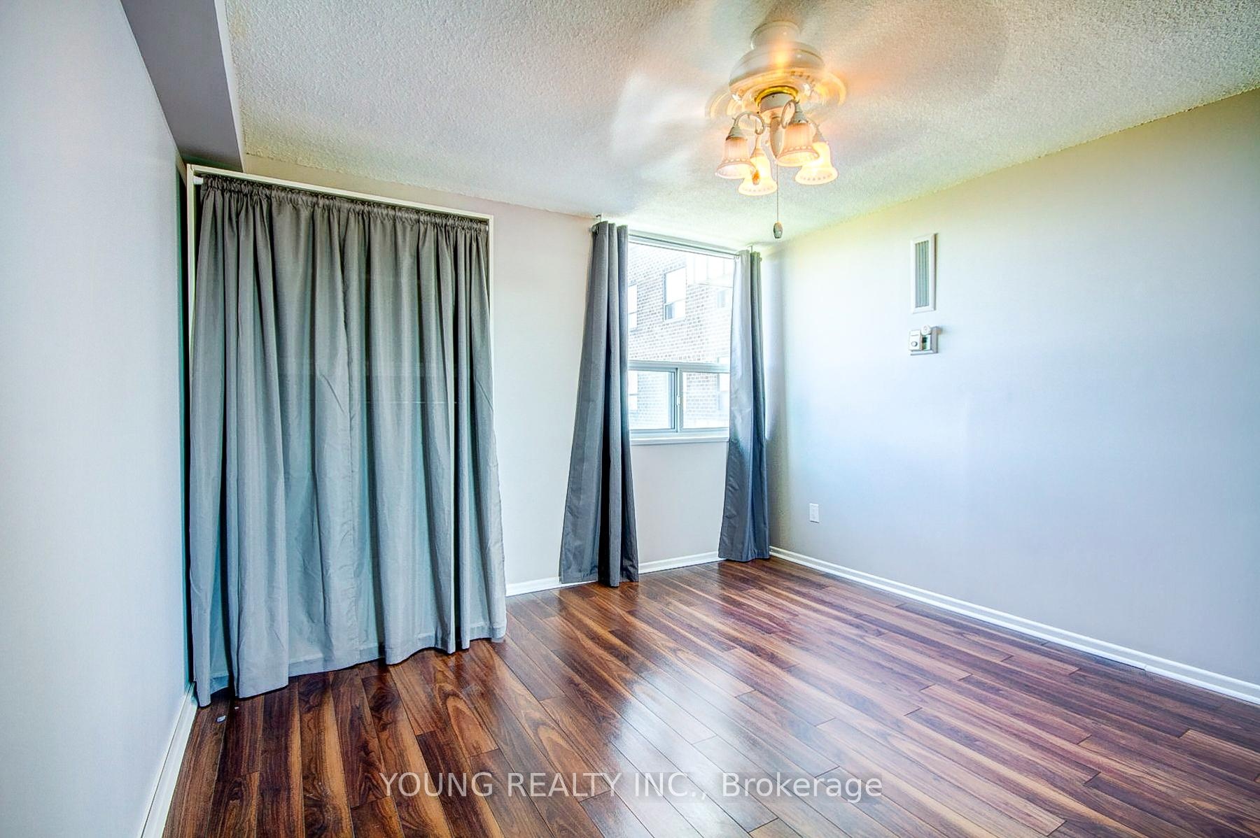 Spacious and bright suite in a highly sought-after building surrounded by lush, park-like grounds. Enjoy expansive city and green views from this open-concept layout featuring newer laminate flooring throughout and generous storage space. Unbeatable location just steps to shopping, local transit, and the subway, with every amenity close at hand. Two indoor (tandem) parking spots and all utilities (except internet) included!