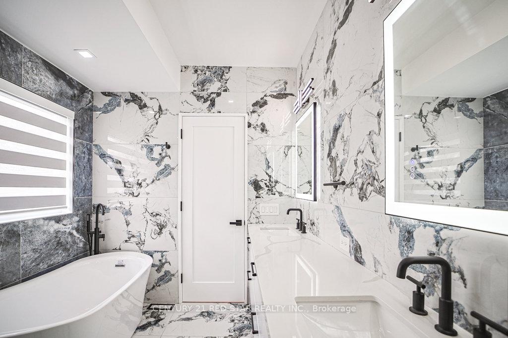 Welcome to 1 Frankwood Rd, completed late 2024- a brand new custom modern luxury home redefining elegant living in South Etobicokes most coveted setting, steps from Royal York & The Queensway. With over 3,900 sq. ft. on a premium 42' x 100' lot, this residence impresses with soaring ceilings (12' main, 9' upper, 9.5' lower), expansive glazing, and seamless open living anchored by a gas fireplace.The chefs kitchen boasts custom cabinetry, quartz counters & backsplash, oversized island, and Thermador built-ins including a coffee system and bar-fridge, plus walkout to a covered glass-railed patio. Upstairs: four ensuite bedrooms with custom closets, a glass-door office, and balconies front and back. The primary suite offers a walk-in, spa-inspired 6-piece bath, and sunrise views. The legal 2-bedroom lower suite features a private entrance, quartz kitchen, smart stainless appliances, in-suite laundry, and oversized windows ideal for family, guests, or staff quarters. Smart luxury throughout: heated, self-cleaning, touch-free spa-style toilets in every bath, hardwired data ports, app/voice lighting, motorized blinds, smart locks, video doorbells, Wi-Fi garage opener, two Level-2 EV chargers, central vac, BBQ line, and hot-tub-ready pad. Lifestyle perfection: walk to top-rated schools, parks, TTC, and minutes to Gardiner/QEW, Royal York & Islington stations, Mimico GO (15 min to Union). Shopping at IKEA, Costco, Home Depot, and RONA just around the corner. 1 Frankwood Rd is where design, technology, and convenience converge. More than a home its a statement.