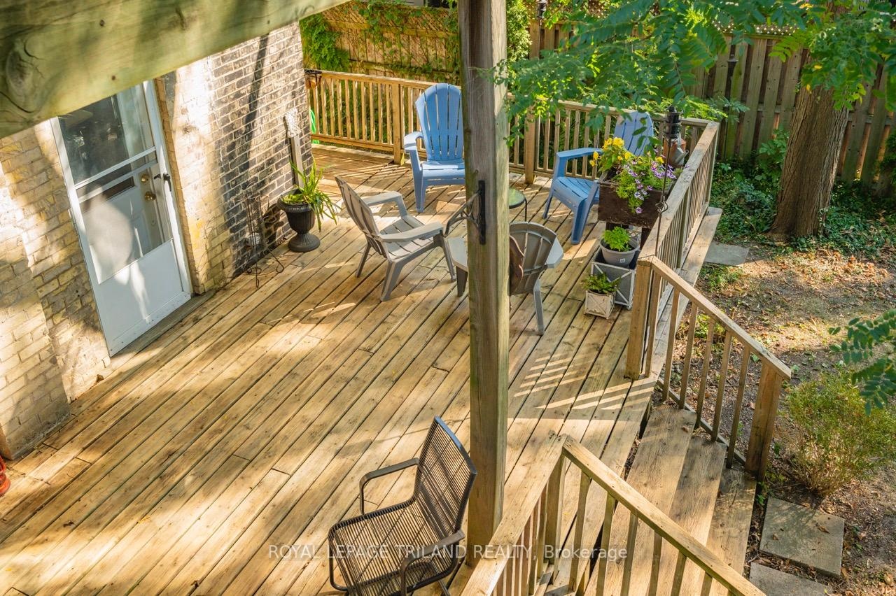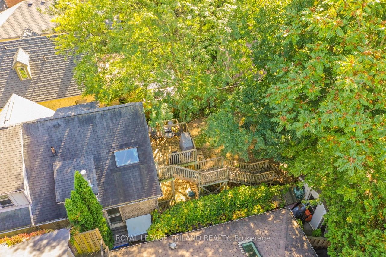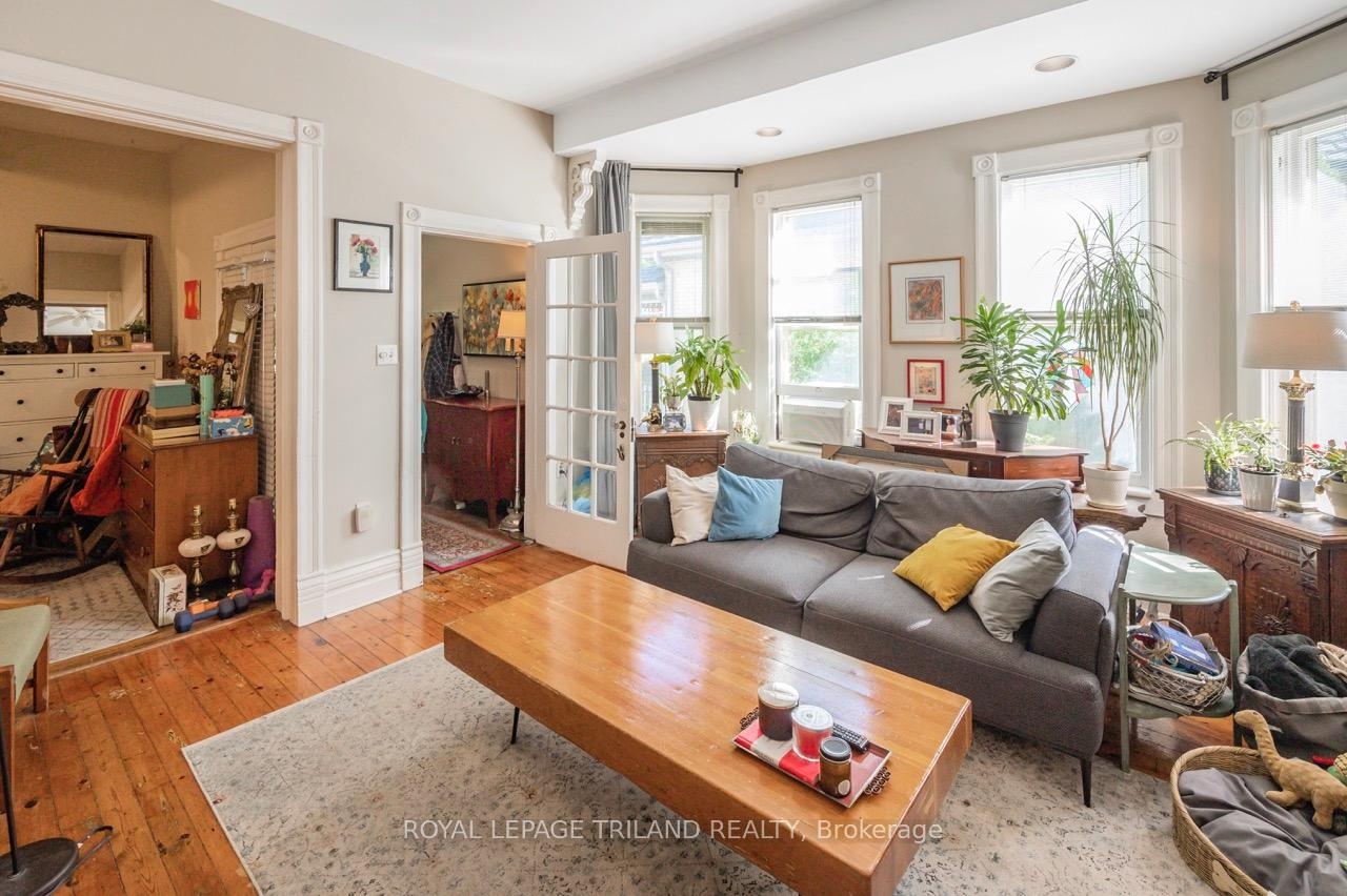 DescriptionWelcome to 737 William Street, a beautiful legal duplex that could also serve as an incredible single-family home, offering timeless character and modern versatility. On a private, mature treed lot, nestled between between historical Woodfield and Old North, this property combines charm, function, and flexibility. It's perfect and ready to go for multi-generational families, anyone seeking a home with income potential and makes a phenomenal long term investment. With parking for five vehicles, two in the front driveway and three more off the rear laneway, this home offers convenience and space rarely found in the center city. The main floor unit features two spacious bedrooms and showcases the homes character with original wood trim, high ceilings, and an abundance of natural light. The inviting layout includes access to a full basement, providing excellent storage. Step outside to enjoy the incredible covered front porch for morning coffees, or the expansive deck that stretches across the whole back of the house and wraps around the side. An ideal spot to relax, entertain, and listen to the birds in the peaceful tranquility. The upper one-bedroom apartment is bright and charming, highlighted by a gas fireplace, large windows, and a skylight that fills the space with natural light. It offers a private deck overlooking the trees and gardens, a separate dining area, a cozy living room, and an office workstation nook, perfect for todays work from home lifestyle. Additional features include two fridges, two stoves, one dishwasher, two washers, two dryers, and a garden shed for extra storage. From the moment you step through the solid wood front door, you'll be captivated by the warmth, detail, and character that make this property truly special. With its versatility, great location, and undeniable charm, 737 William Street is a rare opportunity to own a home that fits your lifestyle, whether as a stunning single-family residence or perhaps an income-generating duplex.Virtual Tour: https://tinyurl.com/737WilliamStTour-MainUnitAmenities- Other