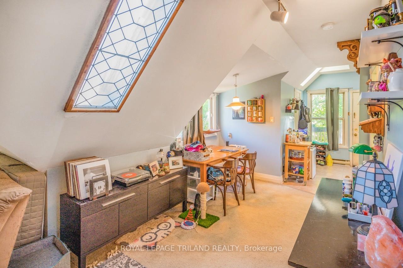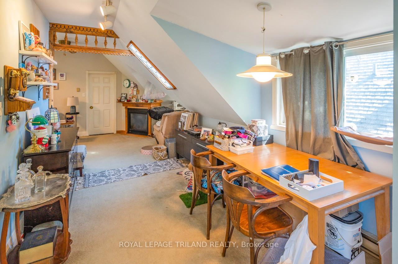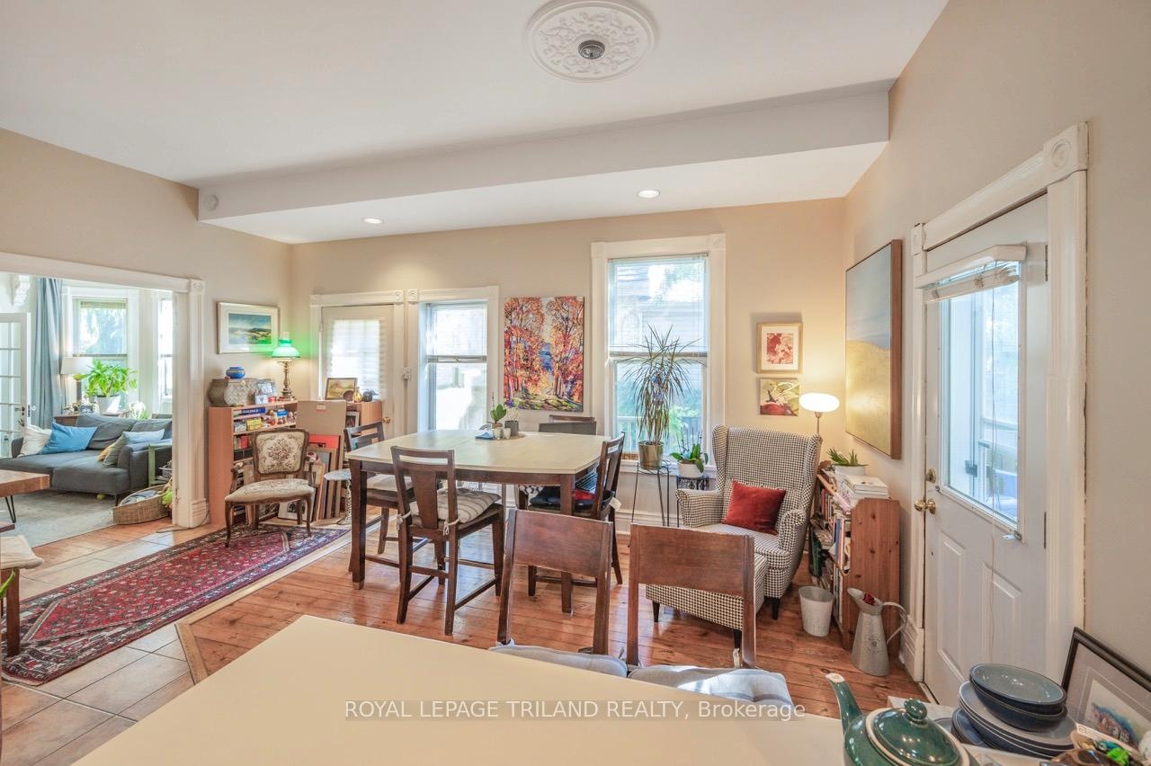 DescriptionWelcome to 737 William Street, a beautiful legal duplex that could also serve as an incredible single-family home, offering timeless character and modern versatility. On a private, mature treed lot, nestled between between historical Woodfield and Old North, this property combines charm, function, and flexibility. It's perfect and ready to go for multi-generational families, anyone seeking a home with income potential and makes a phenomenal long term investment. With parking for five vehicles, two in the front driveway and three more off the rear laneway, this home offers convenience and space rarely found in the center city. The main floor unit features two spacious bedrooms and showcases the homes character with original wood trim, high ceilings, and an abundance of natural light. The inviting layout includes access to a full basement, providing excellent storage. Step outside to enjoy the incredible covered front porch for morning coffees, or the expansive deck that stretches across the whole back of the house and wraps around the side. An ideal spot to relax, entertain, and listen to the birds in the peaceful tranquility. The upper one-bedroom apartment is bright and charming, highlighted by a gas fireplace, large windows, and a skylight that fills the space with natural light. It offers a private deck overlooking the trees and gardens, a separate dining area, a cozy living room, and an office workstation nook, perfect for todays work from home lifestyle. Additional features include two fridges, two stoves, one dishwasher, two washers, two dryers, and a garden shed for extra storage. From the moment you step through the solid wood front door, you'll be captivated by the warmth, detail, and character that make this property truly special. With its versatility, great location, and undeniable charm, 737 William Street is a rare opportunity to own a home that fits your lifestyle, whether as a stunning single-family residence or perhaps an income-generating duplex.Virtual Tour: https://tinyurl.com/737WilliamStTour-MainUnitAmenities- Other