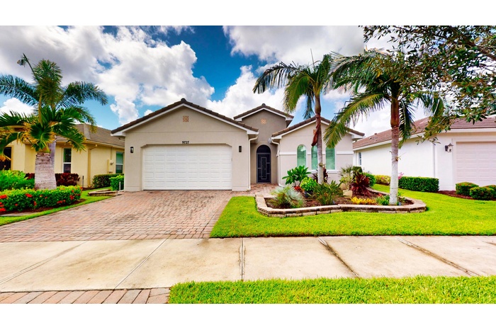 DescriptionThis beautifully appointed 2-bedroom, 2-bath home with a den offers over 2100 sq. ft. of luxurious living space and impeccable design throughout. The open floor plan features a spacious great room that flows seamlessly into the dining area and gourmet kitchen, complete with quartz countertops, 42-inch cabinets, and an upgraded gas range. Unique double glass French doors lead to an extended, covered lanai where you can enjoy stunning lake views and lush, upgraded landscaping, the perfect setting for entertaining or quiet relaxation. The home showcases elegant details such as crown molding, custom cabinetry, a barrel tile roof, and impact windows for peace of mind. The den includes built-in dual desks and cabinets, ideal for a home office or creative space.