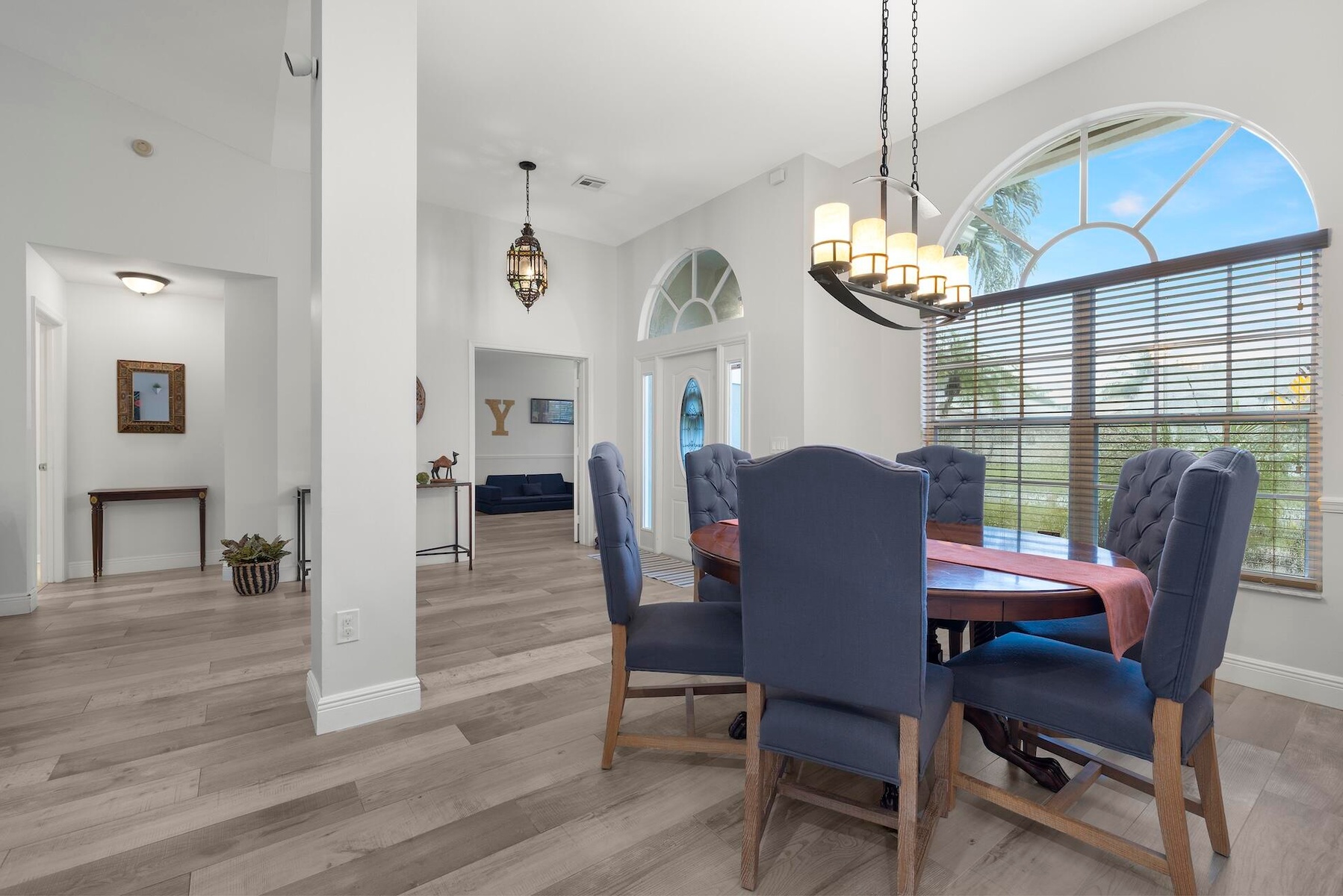 DescriptionBeautiful 4 bedroom pool home w/ huge bonus room or 5th bedroom in gated Meadowland Cove. Gorgeous wood look tile in living areas, separate dining plus breakfast nook. Kitchen features granite counters tops, pantry, new dishwasher, & wood cabinets. Primary bedroom retreat has walk in closet, soaking tub, walk in shower, plus dual sinks. Other features include cabana bath, newer water heater (large capacity) with heat pump to primary bedroom, & hurricane impact garage doors. Beautiful screened in pool w/privacy fence & lush landscaping. Decorative concrete decking around pool patio & tiled front walkway on a quiet cul de sac lot. The community features a clubhouse w/heated community pool & boat ramp. Perfect location in the heart of Wellington & Equestrian Venues. ''A'' rated school