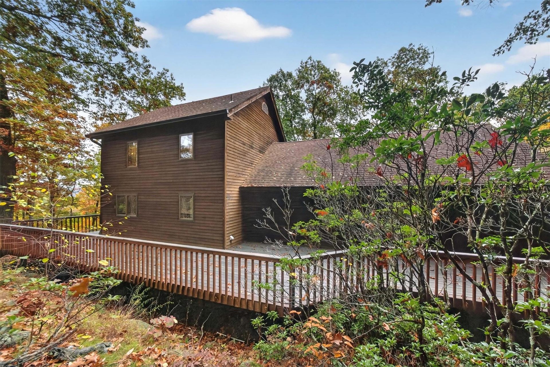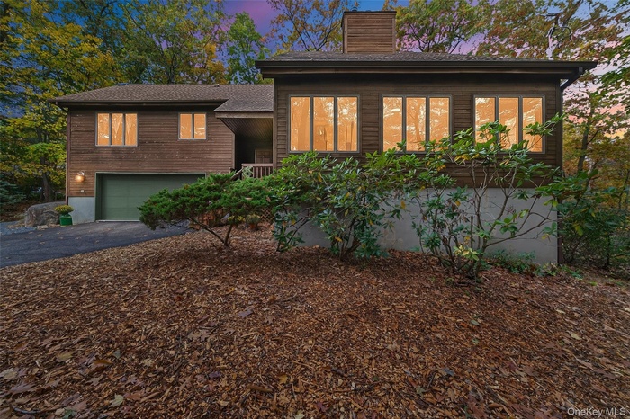 Custom-built Post & Beam Contemporary located on a quiet cul-de-sac. This 3-bedroom, 2-bath home features an oversized living room with soaring cathedral ceilings, a two-story fireplace with heatilator , and hardwood floors throughout. The updated kitchen includes stainless steel appliances, ceramic tile flooring, and stone countertops. Formal dining room with French doors opens to a private wraparound deck. The first floor primary suite offers a whirlpool tub and ample privacy. Additional features include central air conditioning, a 2-car attached garage, two attics for storage, and a full, usable basement. 4 Zone Oil above-ground heating system. Owned propane cooking for the stove. Enjoy seasonal views of the Hudson River and proximity to West Point, Palisades Parkway, Bear Mountain Bridge, and Bear Mountain State Park. Commuters dream... Major bus lines, Metro North and Stuart Airport all within a short drive...