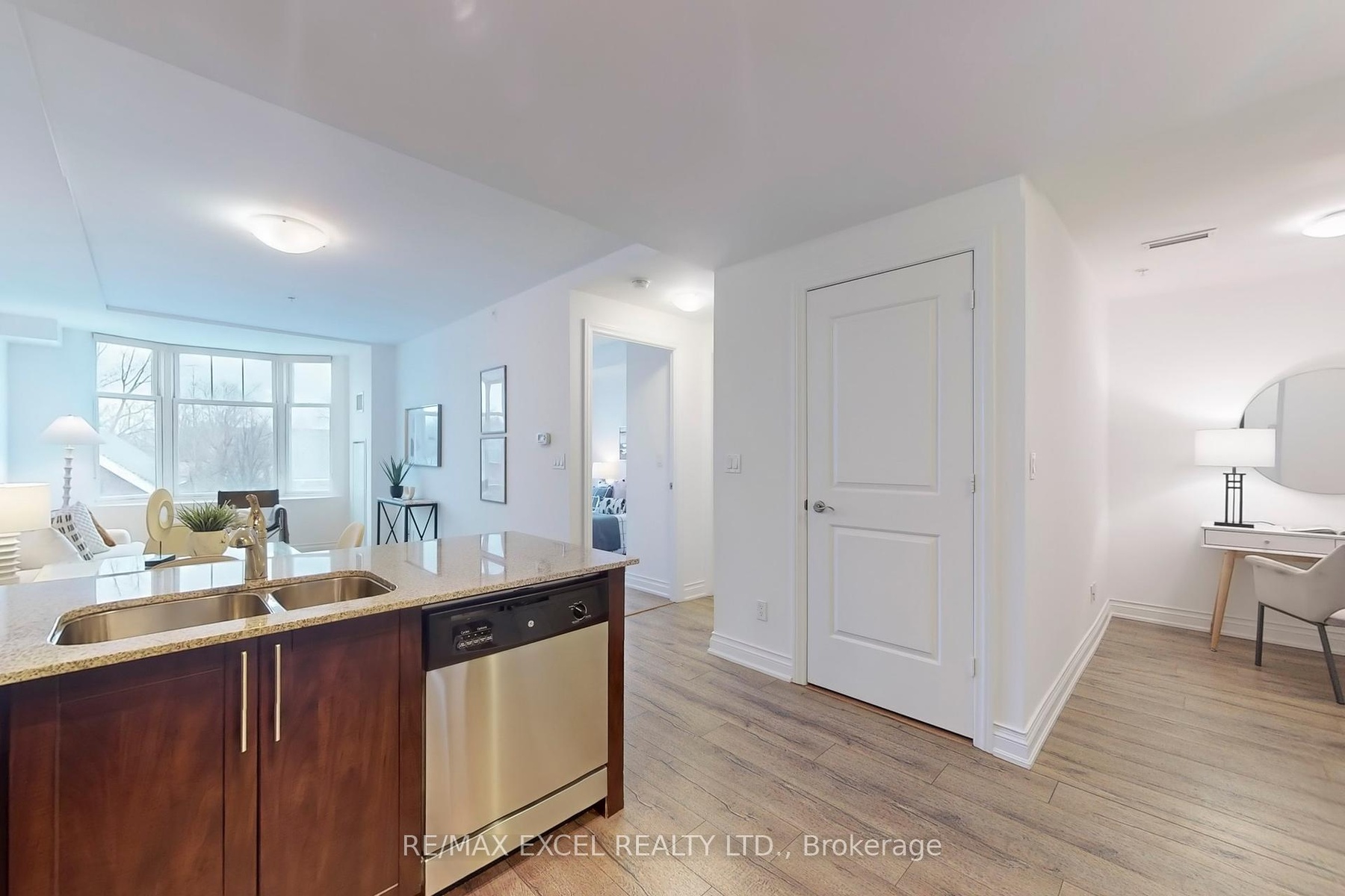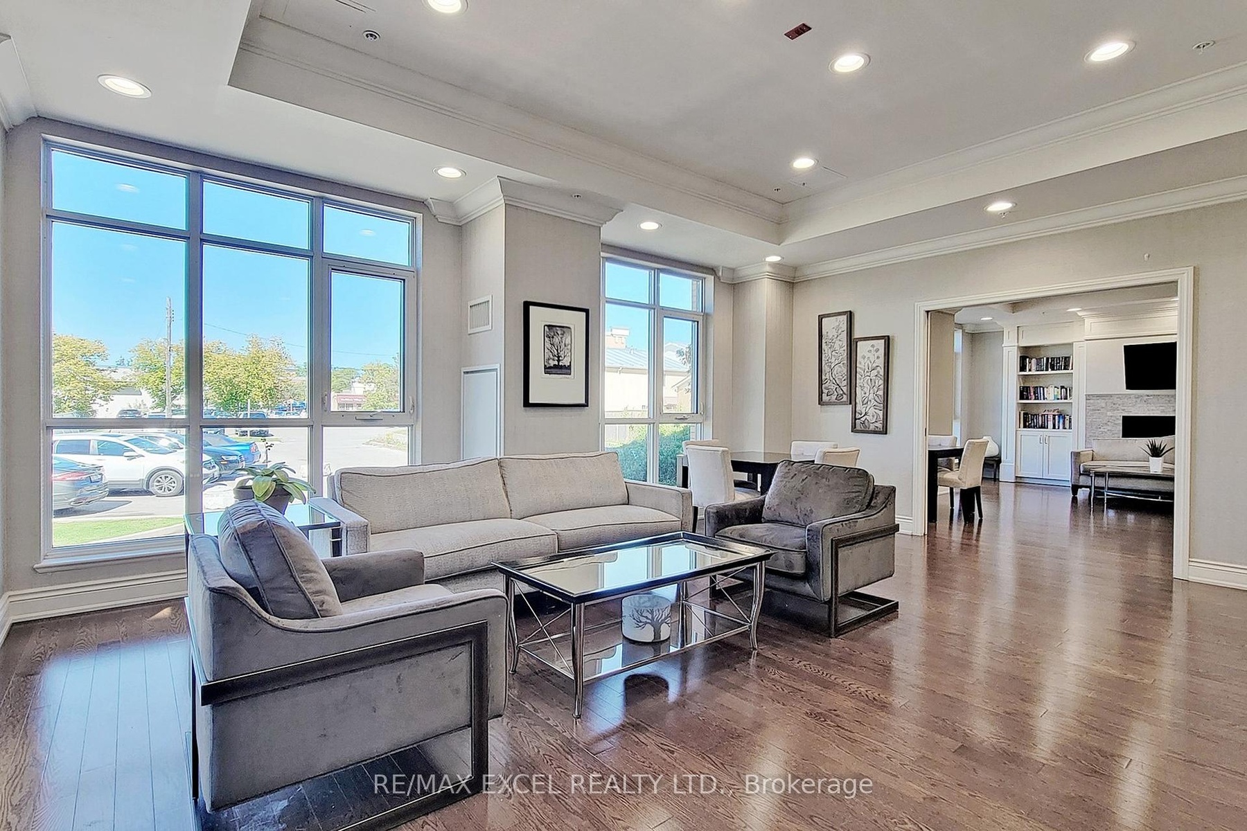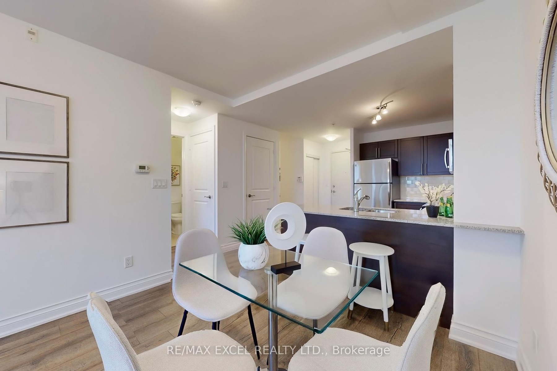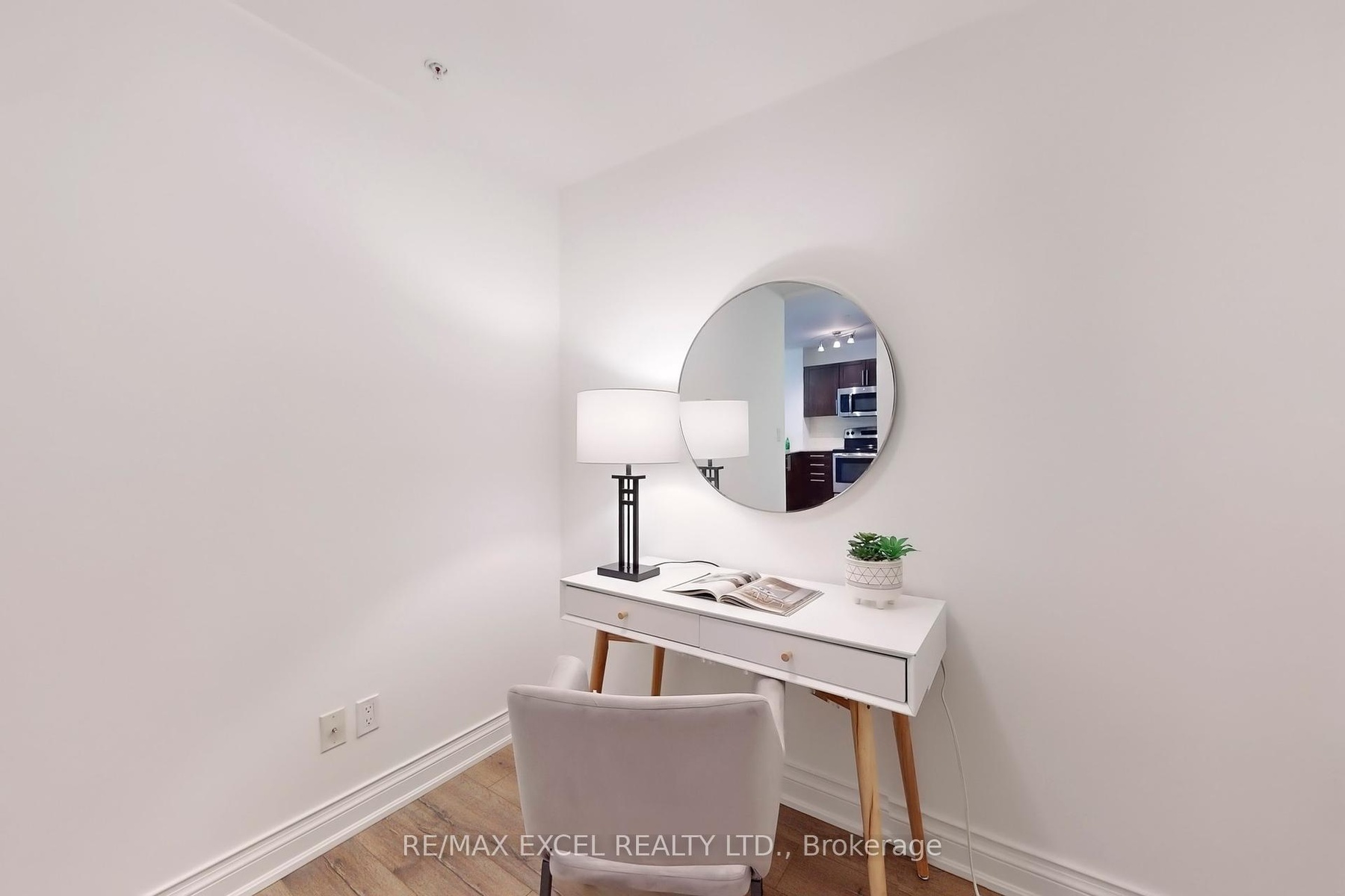 Elegant Urban Living in Markham Village | 699 sq ft residence featuring 1 Bedroom + Separate Den and Underground Parking. Sophisticated Interiors: Expansive bay windows in both living & primary bedroom | Sleek laminate flooring and soaring 9-ft ceilings | Gourmet kitchen with stainless steel appliances, granite counters & breakfast bar | Versatile den, ideal for a home office or guest space. Freshly painted. Coveted Location: Just steps to boutique dining, charming cafes, shops & banks. Quick access to Markham GO, Hwy 407, and public transit. First-Class Amenities: Concierge | Rooftop Patio Oasis | Exercise Room | Media Lounge | Party Room | Guest Suites| Game Room | Visitor Parking.