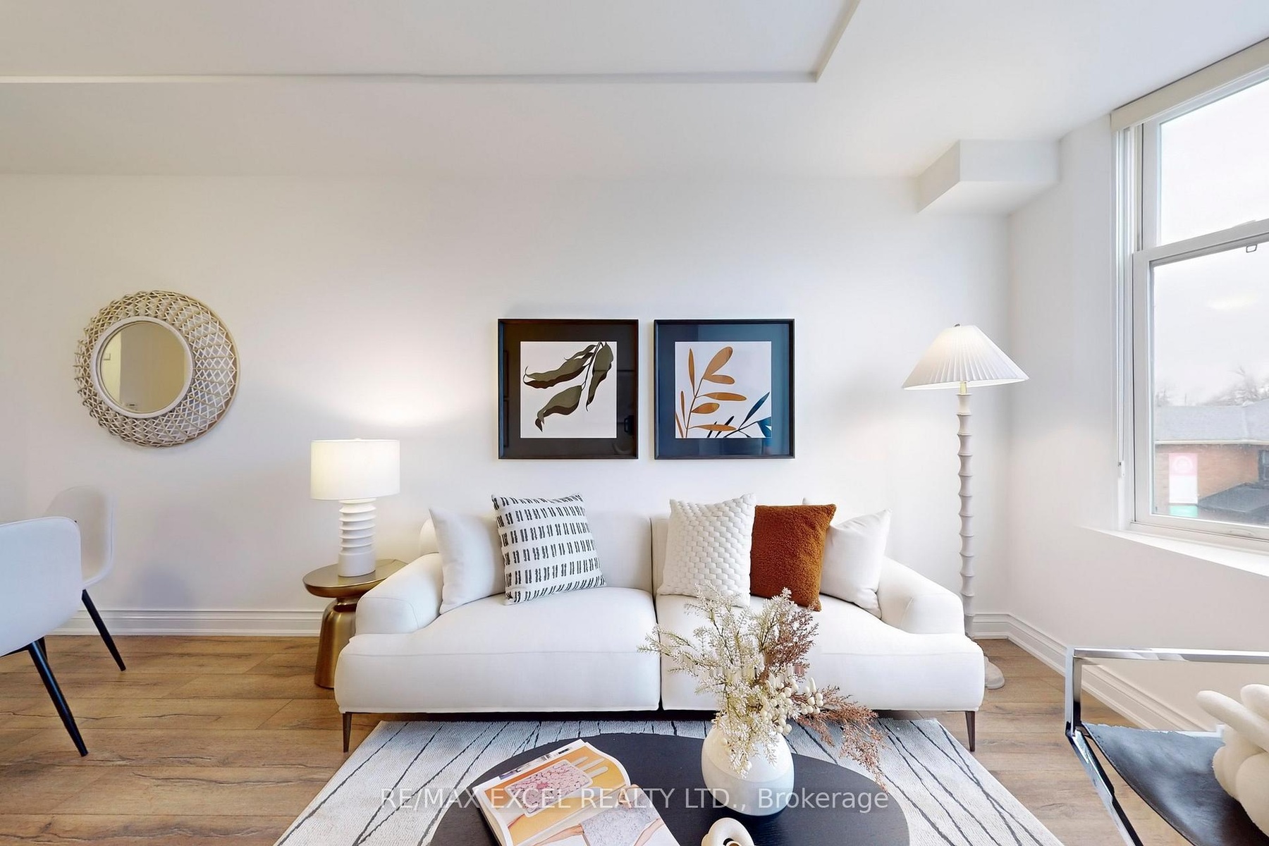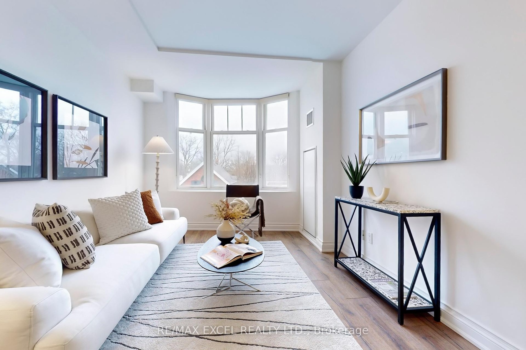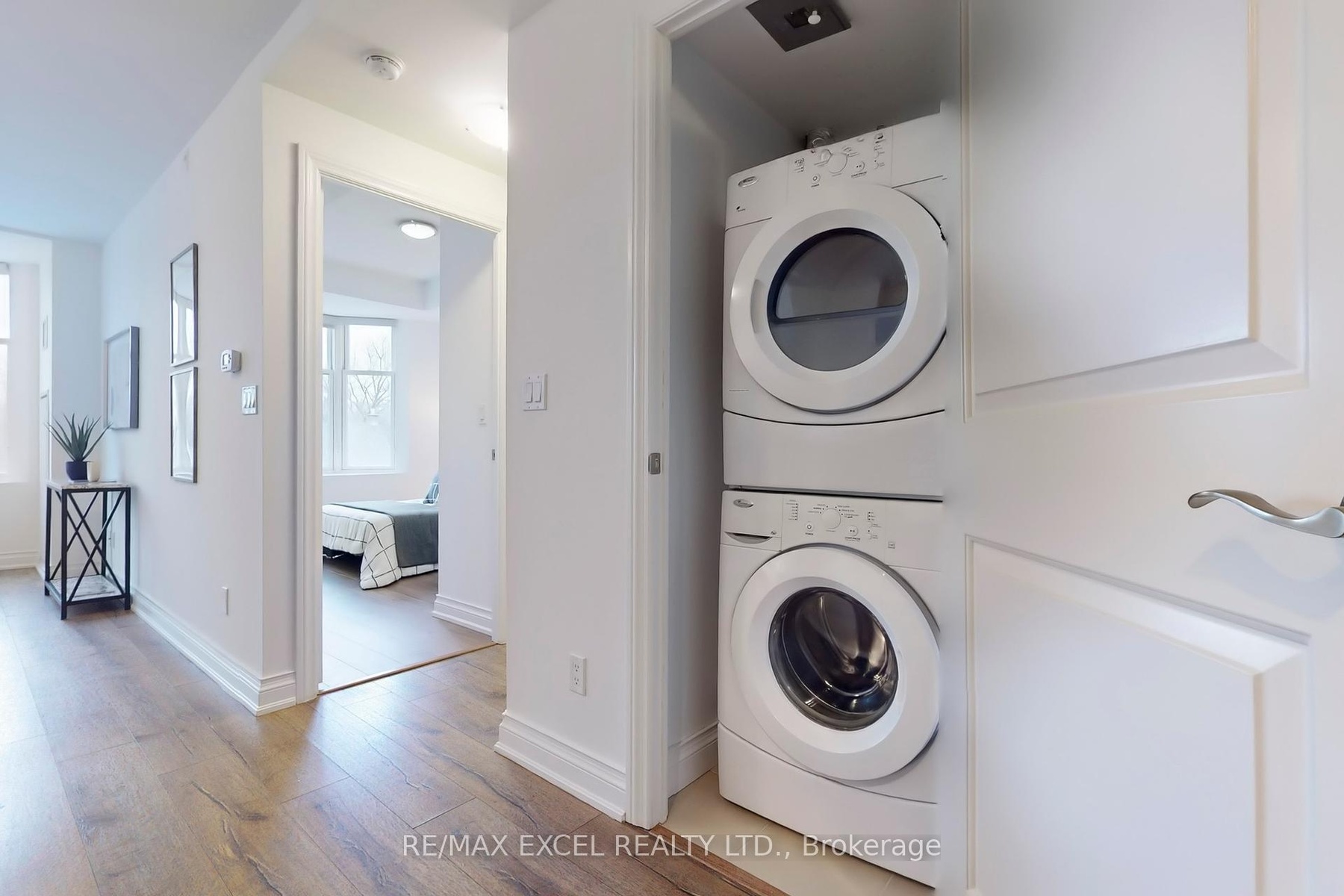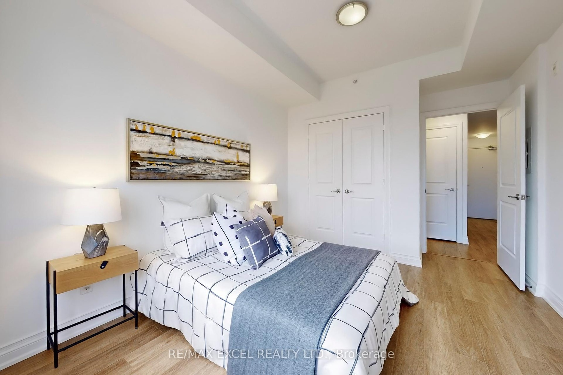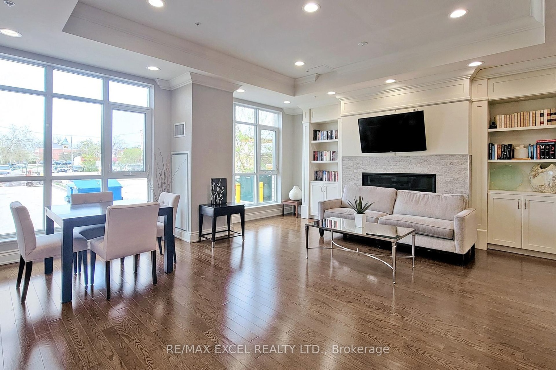 Elegant Urban Living in Markham Village | 699 sq ft residence featuring 1 Bedroom + Separate Den and Underground Parking. Sophisticated Interiors: Expansive bay windows in both living & primary bedroom | Sleek laminate flooring and soaring 9-ft ceilings | Gourmet kitchen with stainless steel appliances, granite counters & breakfast bar | Versatile den, ideal for a home office or guest space. Freshly painted. Coveted Location: Just steps to boutique dining, charming cafes, shops & banks. Quick access to Markham GO, Hwy 407, and public transit. First-Class Amenities: Concierge | Rooftop Patio Oasis | Exercise Room | Media Lounge | Party Room | Guest Suites| Game Room | Visitor Parking.