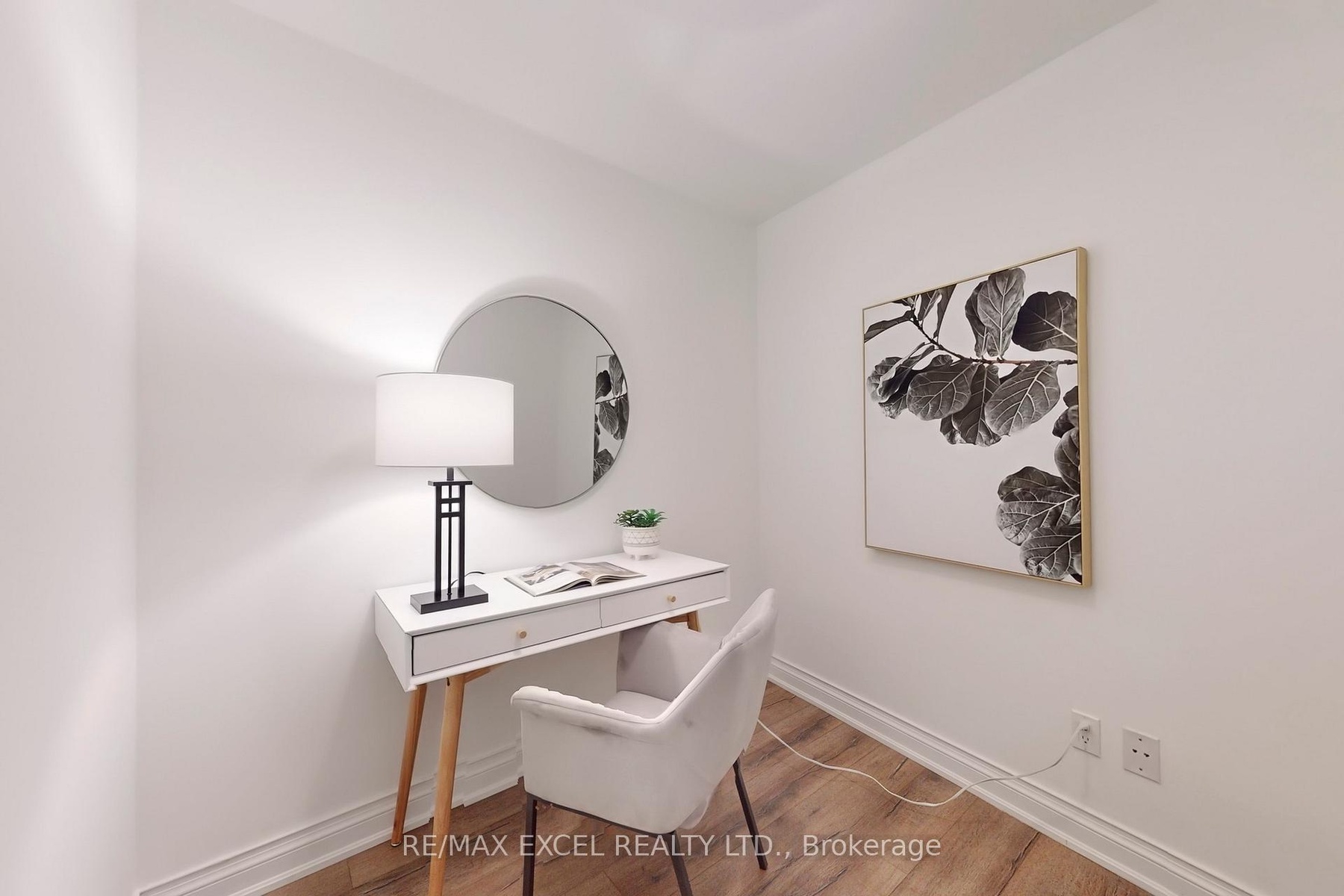 DescriptionElegant Urban Living in Markham Village | 699 sq ft residence featuring 1 Bedroom + Separate Den and Underground Parking. Sophisticated Interiors: Expansive bay windows in both living & primary bedroom | Sleek laminate flooring and soaring 9-ft ceilings | Gourmet kitchen with stainless steel appliances, granite counters & breakfast bar | Versatile den, ideal for a home office or guest space. Freshly painted. Coveted Location: Just steps to boutique dining, charming cafes, shops & banks. Quick access to Markham GO, Hwy 407, and public transit. First-Class Amenities: Concierge | Rooftop Patio Oasis | Exercise Room | Media Lounge | Party Room | Guest Suites| Game Room | Visitor Parking.Amenities- Alarm system